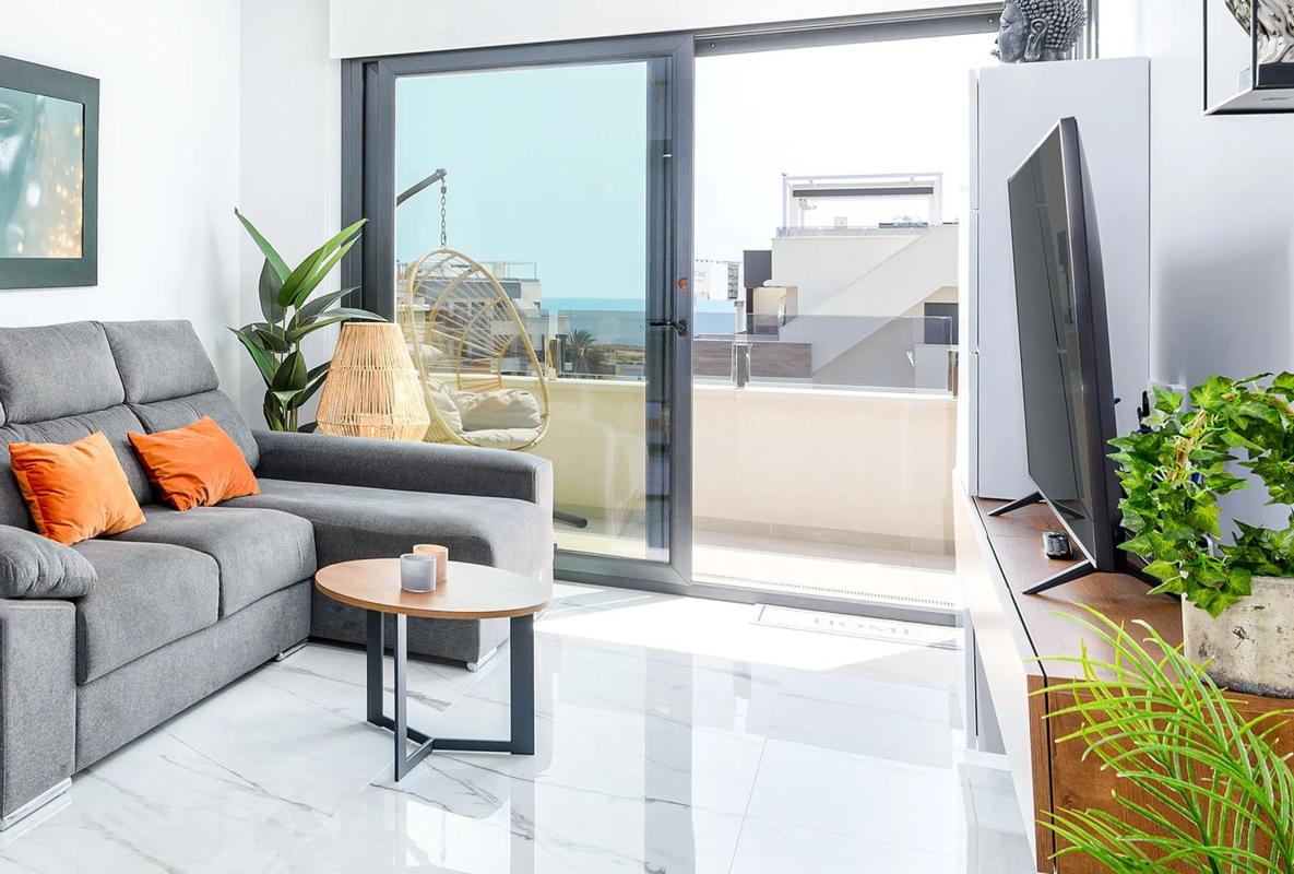 Ático con vistas al mar – Amanecer de Lux III, Playa Flamenca Noir Properties presenta en exclusiva este moderno ático en el prestigioso complejo residencial Amanecer de Lux III, Playa Flamenca (Orihuela Costa). Características de la propiedad 2 dormitorios y 2 baños Luminoso salón con cocina americana Vistas al mar desde el salón, la cocina y las terrazas Solárium privado en la azotea de 80 m² – ideal para tomar el sol, comer y entretenerse Acabados de alta calidad, totalmente amueblado y equipado Aire acondicionado (frío/calor), armarios empotrados y diseño moderno Comunidad y Servicios Exclusivo complejo cerrado con piscina, gimnasio, sauna, zona de juegos para niños y jardines paisajísticos Plaza de aparcamiento subterráneo y trastero incluidos A poca distancia de playas, el centro comercial Zenia Boulevard, restaurantes y todos los servicios Ubicación Playa Flamenca es una de las zonas más solicitadas de la Costa Blanca, que ofrece una mezcla perfecta de playas, golf, gastronomía y servicios durante todo el año. Excelentes conexiones por carretera con los aeropuertos de Alicante y Murcia. ? Ubicación: Playa Flamenca, Orihuela Costa? Tipo: Ático – Amanecer de Lux III? Dormitorios: 2? Baños: 2 ☀️ Solárium: terraza privada en la azotea de 80 m²? Extras: Piscina, gimnasio, sauna, garaje y trastero? Póngase en contacto con Noir Properties hoy mismo para obtener más detalles y concertar una visita.