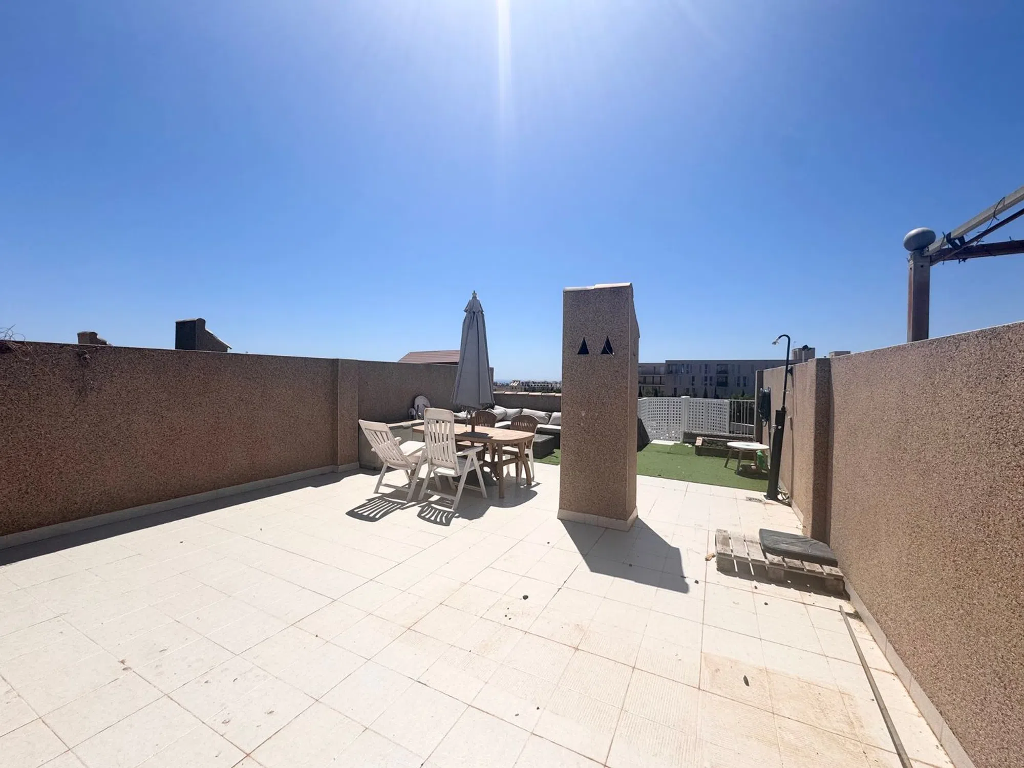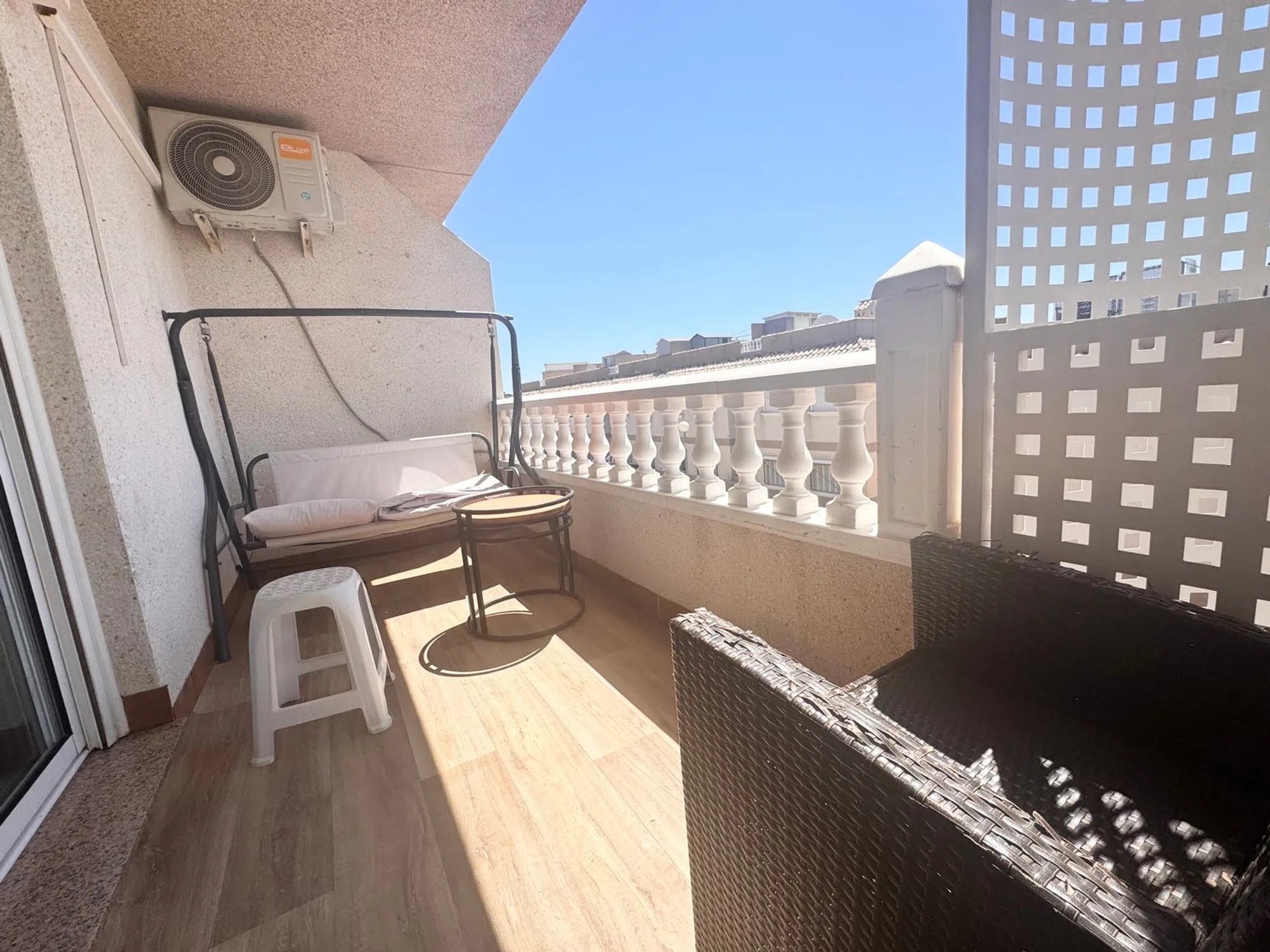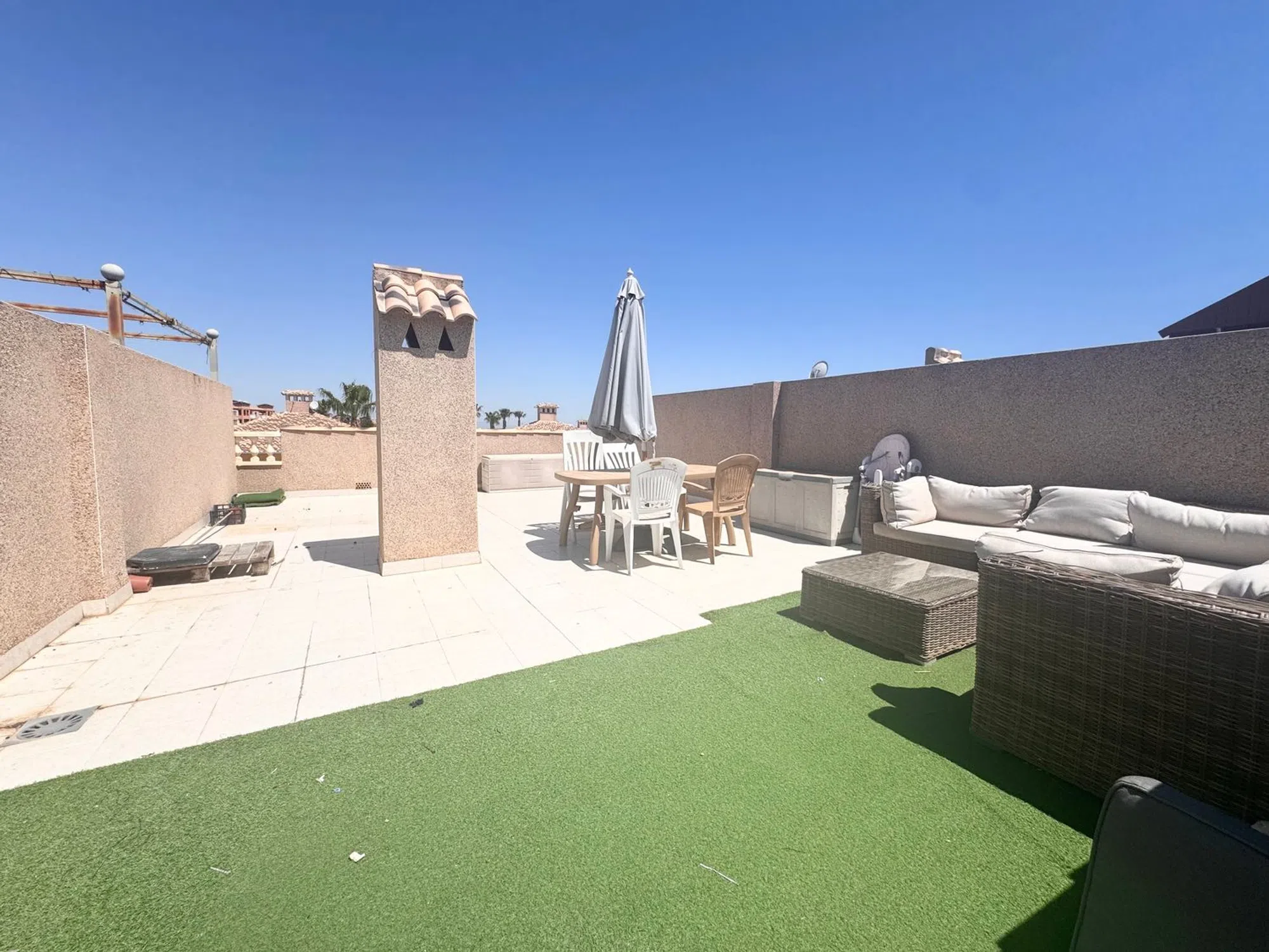 Bungalow en planta alta de 2 dormitorios en Villamartín. Este soleado apartamento con 2 amplias habitaciones y 1 baño disfruta de una terraza con acceso a un espacioso solárium privado. Además se vende totalmente amueblado y equipado y con una plaza de aparcamiento incluida en el precio. Disfruta de jardines y piscina comunitaria. Se ubica en la urbanización PAU-8, una zona tranquila residencial no lejos de los servicios. A 15 minutos a pie se encuentra la plaza de Villamartín y el campo y club de golf. Las playas de Orihuela Costa se encuentran a pocos minutos en coche, así como el gran centro comercial Zenia Boulevard. La ciudad de Torrevieja está a 15 minutos en coche.
