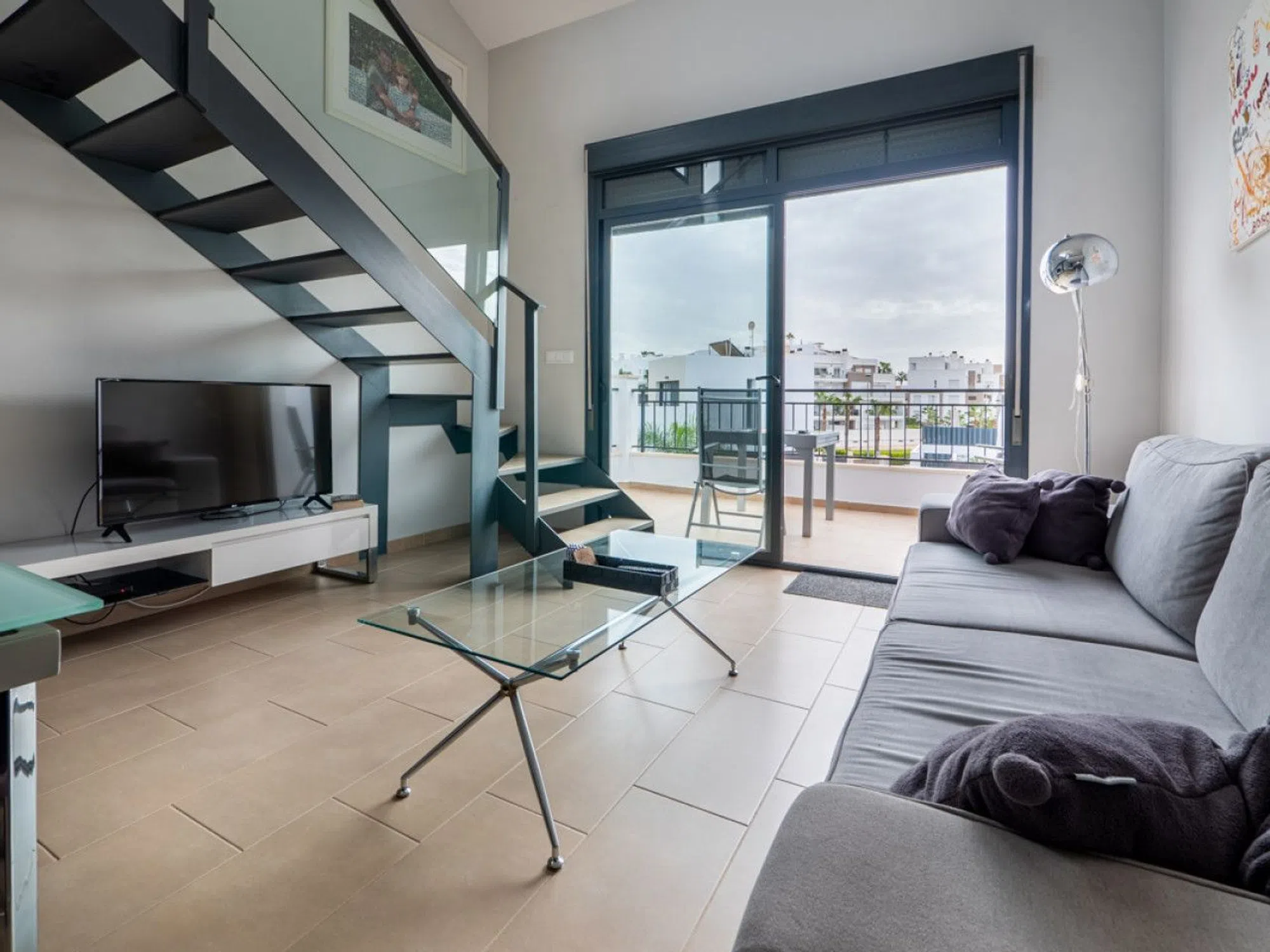 La propiedad cuenta con una amplia sala de estar de planta abierta con muebles de alta calidad, que ofrece un ambiente luminoso y aireado. La sala de estar se extiende hasta un altillo que conduce a un impresionante solárium, perfecto para relajarse o entretenerse, con mucha luz natural y vistas panorámicas. Las dos habitaciones son amplias y cuentan con armarios empotrados, y los dos modernos cuartos de baño tienen acabados de alta calidad, cada uno con elegantes duchas a ras de suelo. La cocina está totalmente equipada con electrodomésticos modernos y mucho espacio de almacenamiento, combinando a la perfección estilo y funcionalidad. Situado en una ubicación privilegiada cerca de los animados servicios de Villamartín, encontrará una gran variedad de tiendas, bares y restaurantes a pocos pasos. Para los amantes del golf, el famoso Club de Golf Villamartín está cerca, lo que hace que este apartamento sea ideal tanto para el ocio como para un estilo de vida activo. Esta propiedad ofrece una combinación de comodidad, estilo y conveniencia en una de las zonas más codiciadas de la región.
