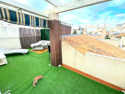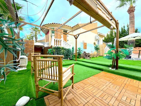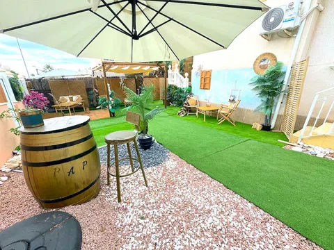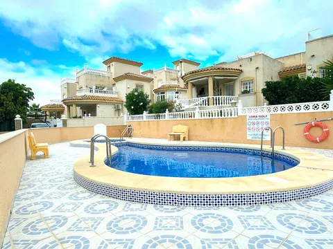 Aquí tenemos un fabuloso chalet pareado con orientación sur a la venta en la consolidada zona residencial de Las Filipinas, Villamartín. Esta encantadora propiedad está idealmente situada a poca distancia de los servicios y a un corto trayecto en coche de varios campos de golf, algunas playas maravillosas, junto con una serie de centros comerciales y comerciales, incluyendo La Fuente y el icónico Zenia Boulevard! La propiedad forma parte del desarrollo de LOMA GOLF, que es multinacional y está compuesto por una mezcla de residentes a tiempo completo y veraneantes por igual. Los propietarios pueden disfrutar del uso de una gran piscina comunitaria que se encuentra a un corto paseo. La propiedad ocupa una parcela más grande que la media que tiene espacio más que suficiente para incorporar su piscina privada (el permiso de la comunidad está en su lugar) que se puede construir a su gusto. Imagínese sumergiéndose en su propio oasis privado en los calurosos días de verano! El espacio exterior está dispuesto de forma atractiva con varias características, incluyendo un bar, barbacoa, aparcamiento fuera de la carretera y una cómoda zona de descanso bajo una pérgola recién añadida. También hay un cenador equipado con un jacuzzi para momentos relajantes. Una escalera exterior conduce al solárium, un lugar perfecto para tomar el sol durante todo el año, completo con césped artificial, junto con un montón de asientos y espacio para tomar el sol. La propiedad en sí ofrece alojamiento de una sola planta (una verdadera propiedad de estilo bungalow). Una terraza cubierta proporciona acceso a la casa. Al entrar, se le recibe con un luminoso y espacioso salón-comedor. A la izquierda se encuentra una cocina de buen tamaño con mucho espacio de trabajo y almacenamiento, junto con acceso directo a la zona del jardín. Ambos dormitorios son dobles y están servidos por un maravilloso baño familiar. Se ofrece a la venta parcialmente amueblado (sujeto a oferta) incluyendo aire acondicionado, triple acristalamiento mejorado y puertas de seguridad junto con persianas mosquiteras. Gastos anuales de comunidad aprox. 350 euros. Dado su tamaño y su proximidad a la costa, esta encantadora propiedad en venta en Villamartín sería el hogar familiar perfecto bajo el sol! Villamartín es una popular zona residencial situada en la Costa Blanca Sur (Provincia de Alicante). La zona ha experimentado un gran desarrollo en los últimos 10-15 años y ahora cuenta con una comunidad multinacional. Villamartín cuenta con una amplia selección de servicios y comodidades a mano, junto con los maravillosos campos de golf de Las Ramblas, Las Colinas, Campoamor y el mundialmente famoso campo de Campo De Golf Villamartín, que fue sede del Open Mediterráneo de 1994. A poca distancia en coche se encuentra el centro comercial Zenia Boulevard, donde podrá encontrar una amplia selección de tiendas de moda, como Zara, Primark, Massimo Dutti, H&M, Bershka, Mango, Dectahlon y muchas más. También hay un barrio gastronómico en el nivel superior donde podrá elegir entre una variedad de restaurantes españoles e internacionales. Hay varias playas cercanas: Playa Flamenca y La Zenia son dos de las más cercanas. El mercadillo semanal de Playa Flamenca también está situado cerca, aquí puede comprar algunos productos frescos maravillosos junto con una gama de productos locales.