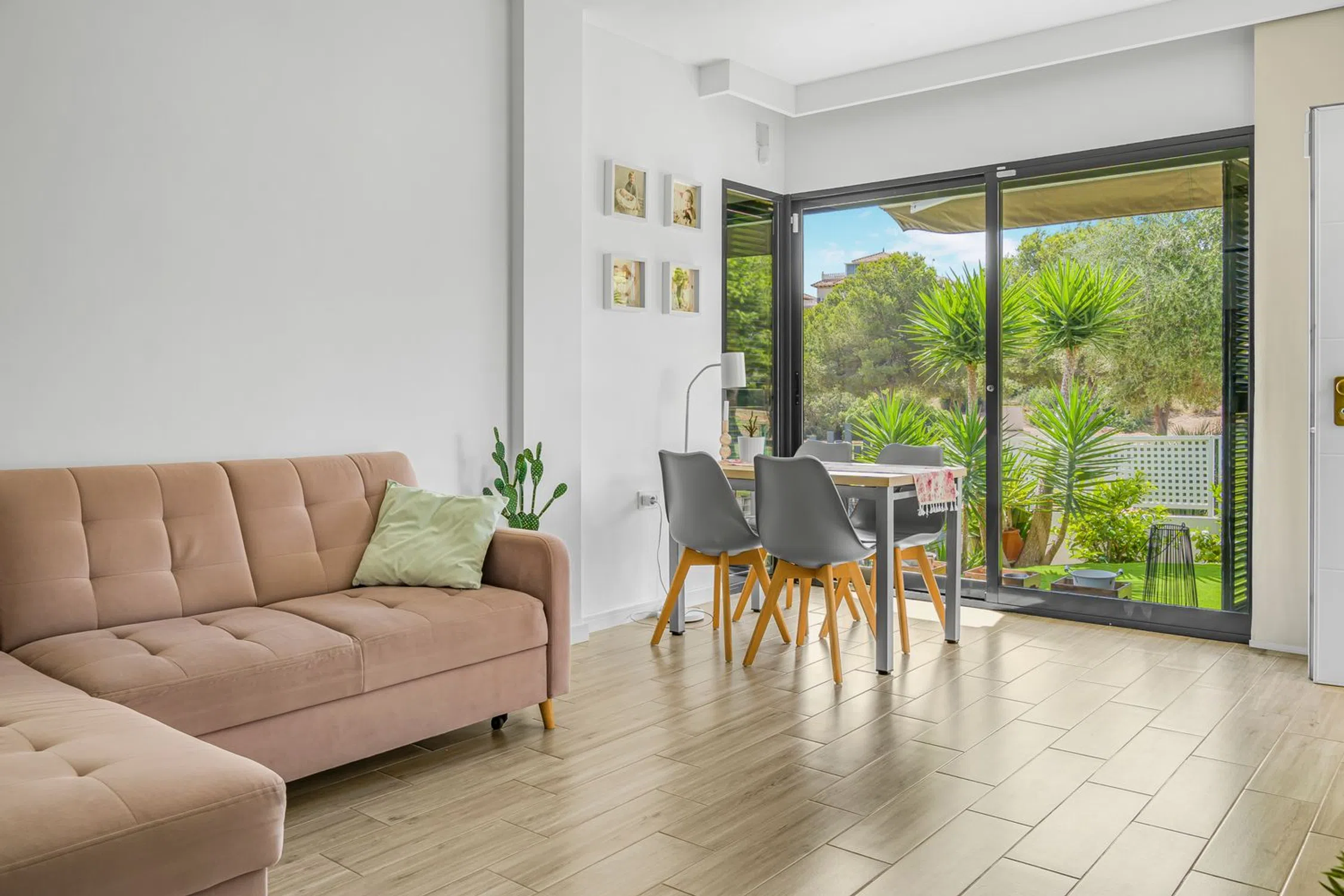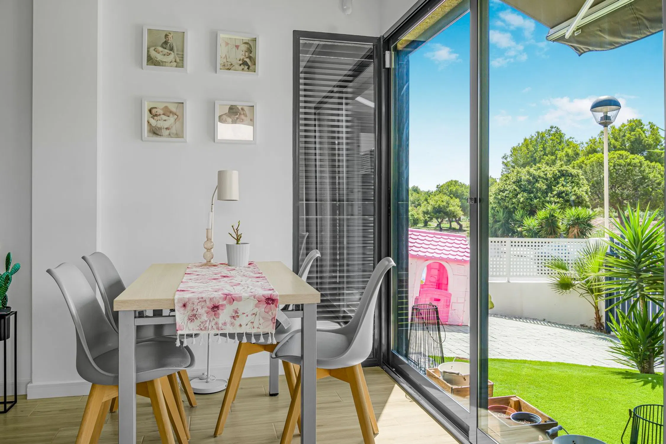 This modern single-plan villa in sought after La Zenia is a perfect accommodation for those who want to combine comfort with an attractive location. The villa, built in 2014, is carefully designed with a focus on functionality and stylish detail. There are three spacious bedrooms that provide plenty of room for family and guests, as well as two tastefully decorated bathrooms for high comfort. The heart of the home is the open and bright living room that floats with the kitchen and dining room, creating an inviting area for social interaction. From the living room, you directly reach the private patio with a lovely pool where you can cool during hot summer days or enjoy quiet evenings in a noisy environment. The villa’s location is very beneficial – within easy walking distance there is a wide range of restaurants and the popular shopping center La Zenia Boulevard, giving you all the opportunities for shopping, entertainment and good food just around the corner. For those who love staying outdoors there is also a generous roof terrace with space for both lounge and dinner under the bar skies, perfect for enjoying sunsets and the Spanish evening heat. With its combination of modern amenities, private pool and central location, this single-plan villa in La Zenia is a home that offers both quality of life and a sense of holiday all year round.