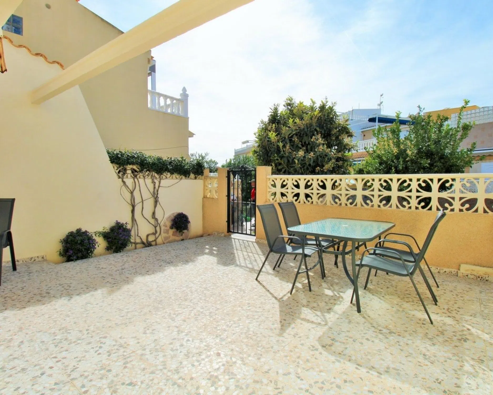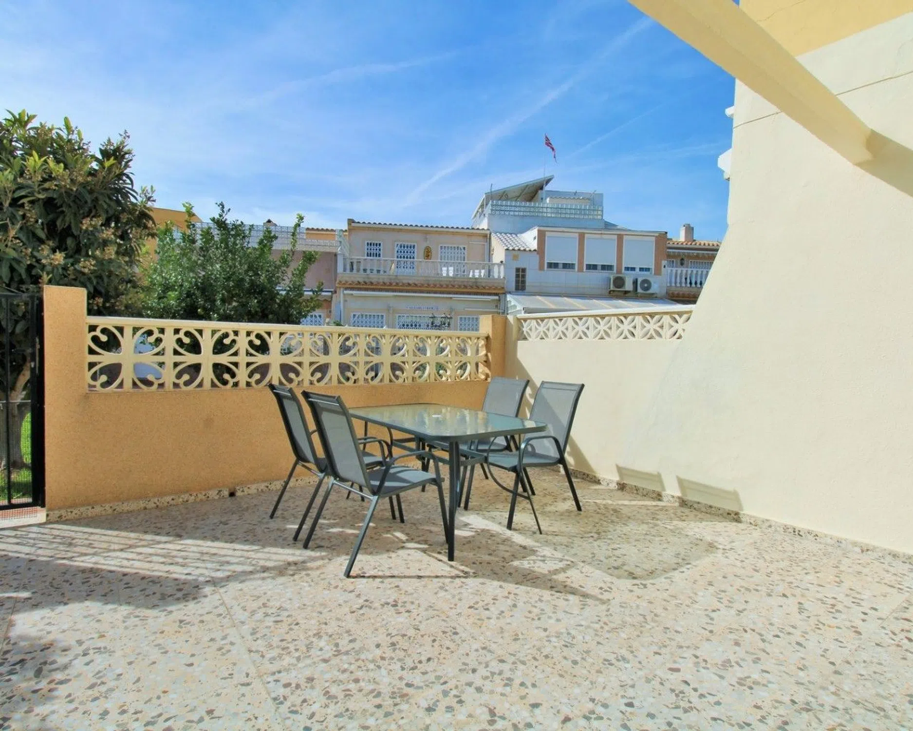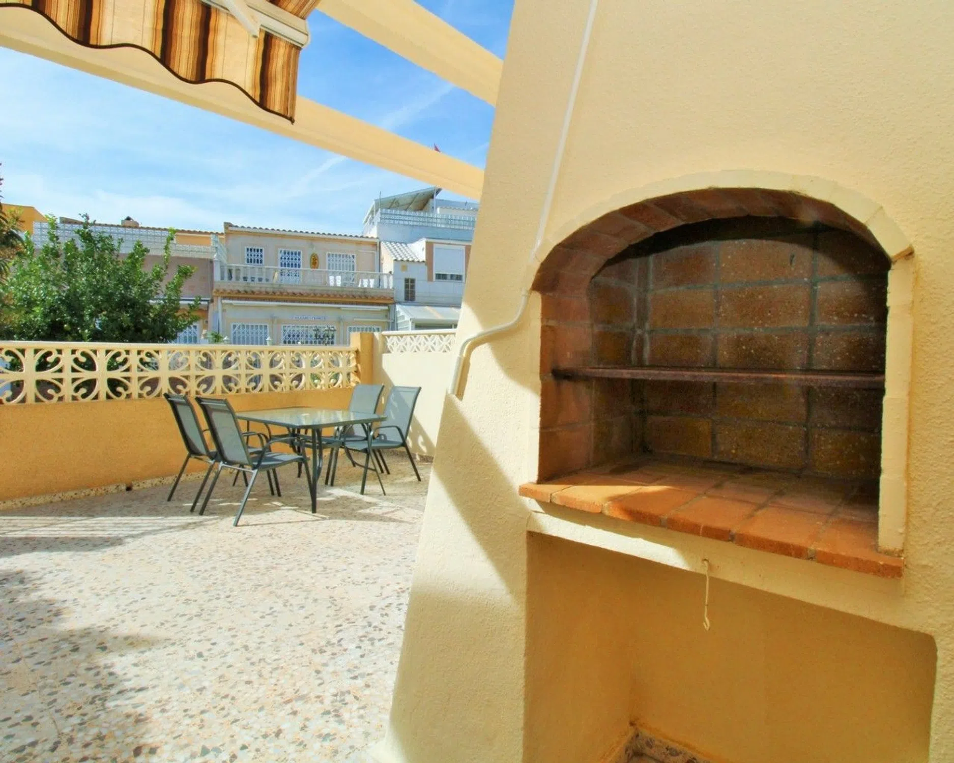 ⭐ Descripción Completa en Español — Bungalow Esquinero en Manzana 7, La Chismosa (Playa Flamenca) Presentado por Bognar Estates Bognar Estates presenta este excepcional bungalow esquinero que ofrece una relación calidad-precio inmejorable dentro de la comunidad cerrada de Manzana 7, ubicada en la tranquila y apreciada zona de La Chismosa, en Playa Flamenca (Orihuela Costa). Con una codiciada orientación suroeste, la vivienda disfruta de sol durante todo el día, creando un ambiente luminoso, cálido y perfecto para aprovechar el clima mediterráneo. � Vivienda en una sola planta — Cómoda, práctica y luminosa Toda la distribución se encuentra en un solo nivel, lo que hace que esta propiedad sea ideal tanto para residencia habitual como para vacaciones: Amplio salón muy luminoso con chimenea decorativa, perfecto para relajarse o recibir invitados. Cocina abierta totalmente equipada, situada en la parte trasera y con acceso a una práctica área exterior de lavandería. Dormitorio doble con armarios empotrados y excelente entrada de luz natural. Baño con ducha de obra, renovado y funcional. La vivienda se vende totalmente amueblada e incluye aire acondicionado, por lo que está lista para entrar a vivir. ☀️ Espacios exteriores y entorno comunitario El exterior es uno de los grandes atractivos de esta propiedad: Amplia terraza delantera orientada al suroeste Barbacoa de obra Toldos retráctiles, ideales para crear sombra y confort en las horas más soleadas Espacio perfecto para cenas al aire libre, tomar el sol o disfrutar de momentos con familia y amigos Los residentes de la comunidad también disfrutan de áreas verdes comunes, perfectamente cuidadas y con un ambiente tranquilo. � Ubicación privilegiada — Todo al alcance La propiedad se encuentra a pocos pasos de bares, restaurantes y servicios locales situados en La Chismosa y La Florida. Además, está a una corta distancia en coche de: Las playas con bandera azul de Orihuela Costa Zenia Boulevard, el centro comercial más grande de la zona Varios campos de golf de primera categoría, como Villamartín, Las Ramblas y Campoamor Una zona ideal tanto para vivir todo el año como para escapadas o inversión en alquiler. � Una oportunidad fantástica presentada por Bognar Estates Un acogedor bungalow esquinero en una comunidad tranquila, con orientación perfecta, terraza amplia y todo accesible a pie. ¡Las visitas tempranas son muy recomendadas!
