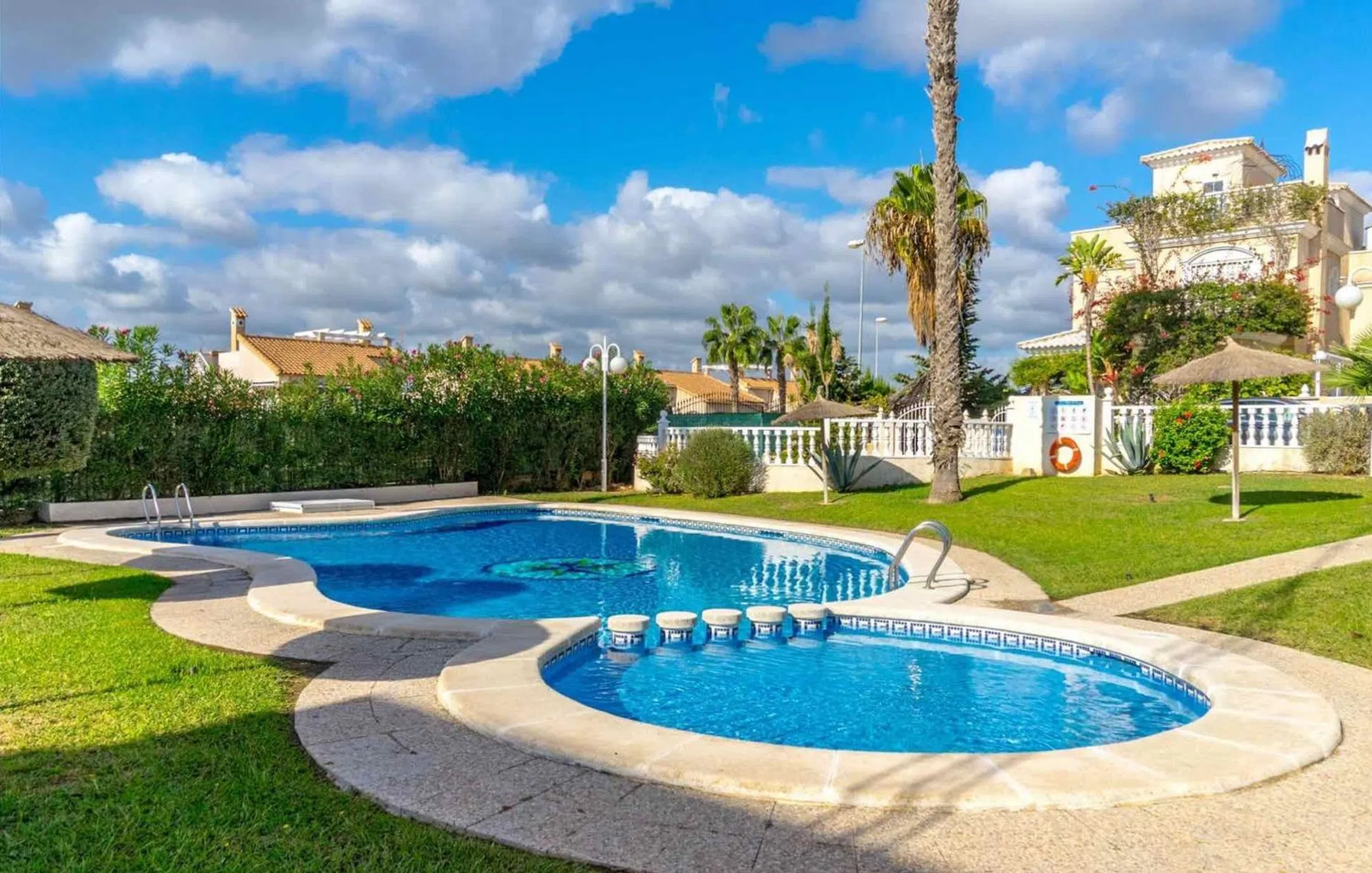 ¡OFERTA! Villa Independiente en Área Cerrada dentro de Los Altos 3 dormitorios 2 baños Piscina Comunitaria Comunidad Cerrada Amueblado Solárium Terraza A/C Hermosa casa en una exclusiva urbanización residencial con bonita zona de piscina, tres dormitorios, dos baños, jardín, terrazas, solárium, trastero, lavadero independiente y derecho de uso de zona comunitaria para el aparcamiento de un coche, bien comunicada con rápido acceso a la autovía, cerca de la playa, hospital y centros comerciales.