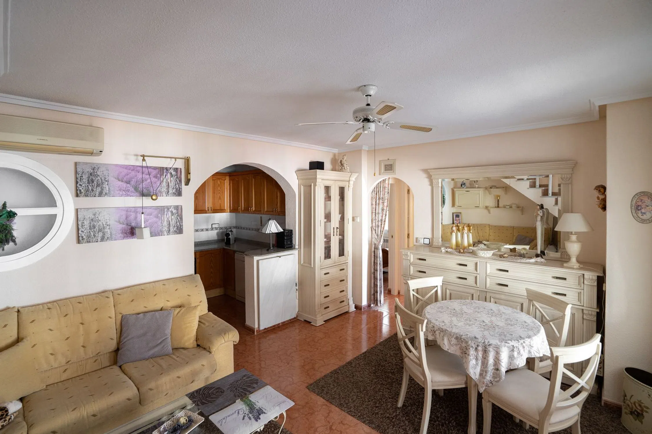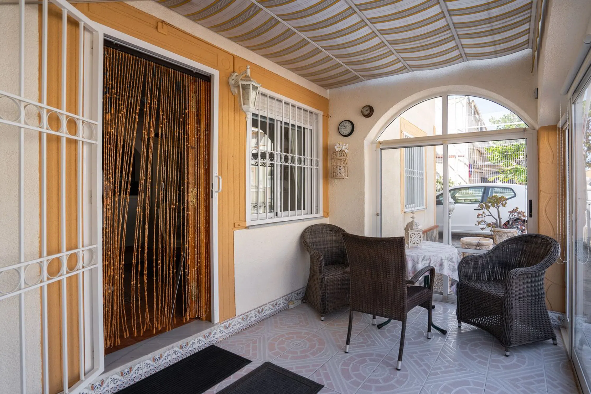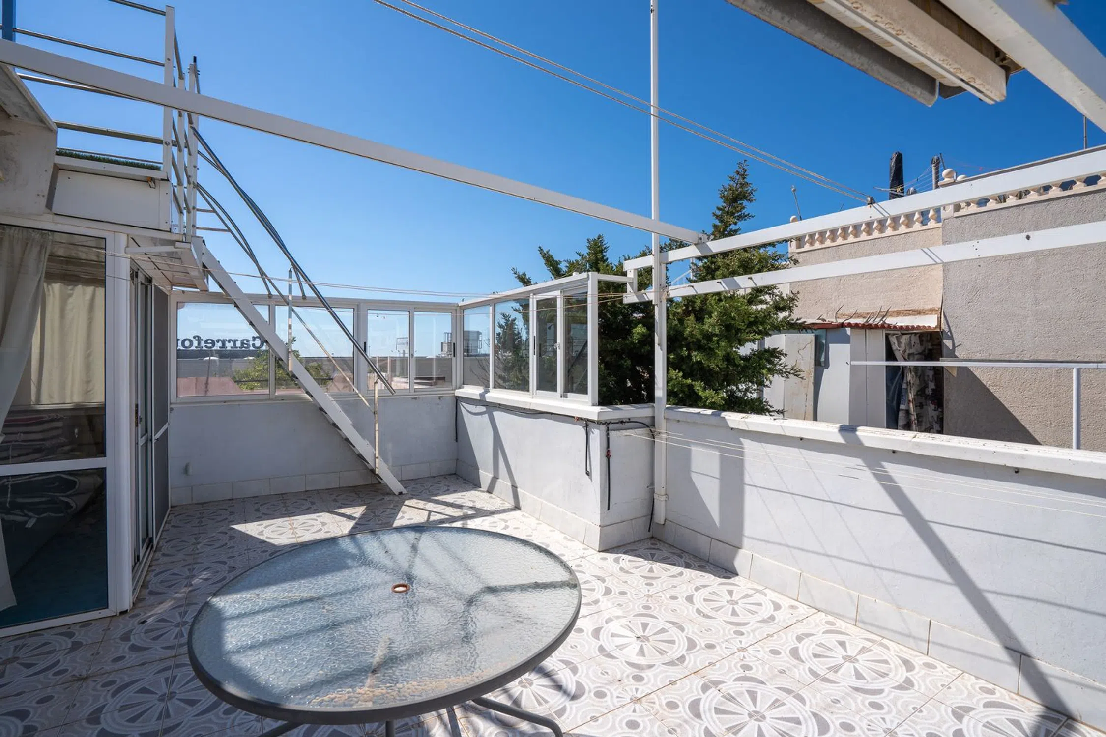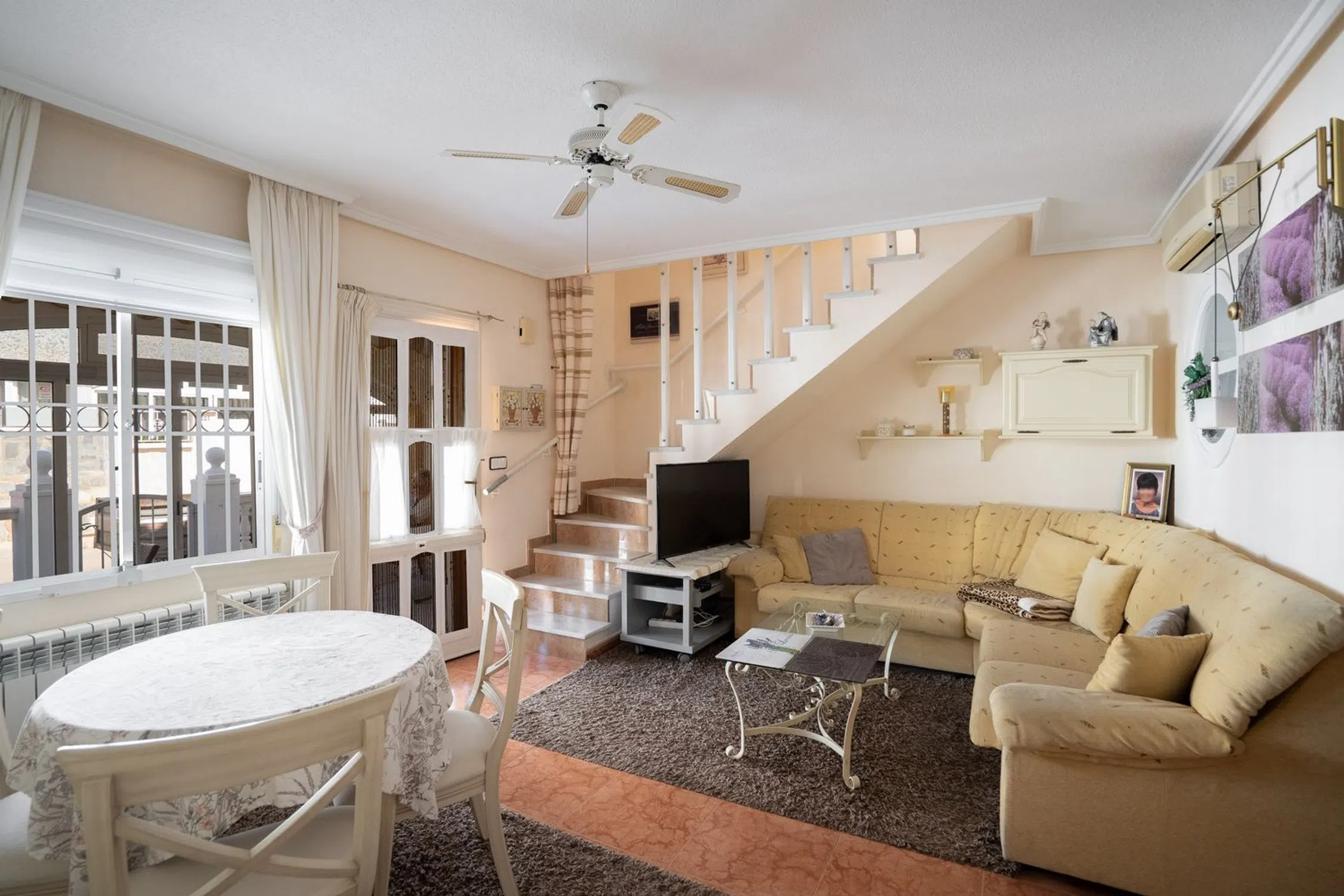 En SkandiaMäklarna en Torrevieja estamos encantados de poder mostrarle esta encantadora casa en una de las zonas más populares de Orihuela Costa, Playa Flamenca. La casa consta de dos plantas. En la planta baja hay un terreno y una terraza acristalada. También puedes aparcar tu coche en la propiedad. La terraza acristalada conduce a la sala de estar con la cocina abierta y el lavadero asociado. Esta planta dispone de dos dormitorios y un baño. En la planta superior hay un dormitorio, un invernadero acristalado y una amplia terraza. Desde esa terraza también se puede subir a una torre mirador con una bonita vista del mar Mediterráneo y sus alrededores. La casa está bien mantenida y pertenece a una bonita comunidad que tiene dos áreas de piscina compartidas. La casa está situada en una zona animada todo el año y hay una amplia oferta de restaurantes, bares, tiendas y todos los servicios necesarios para su estancia en la zona, ya sea permanente o vacacional. La playa más cercana se encuentra a unos 5-7 minutos en bicicleta y a poca distancia a pie o en bicicleta se encuentra el centro comercial más grande de la costa, Zenia Boulevard, así como el mercado de los sábados, que se celebra todas las semanas durante todo el año. Además de las tiendas de lujo, la zona también ofrece karts, bolos, un casino, parques acuáticos o puede jugar 18 hoyos en uno de los 4 campos de golf cercanos. Para aquellos que quieran estar cerca de todo y poder disfrutar del sol en preciosas terrazas. Bienvenido a casa.