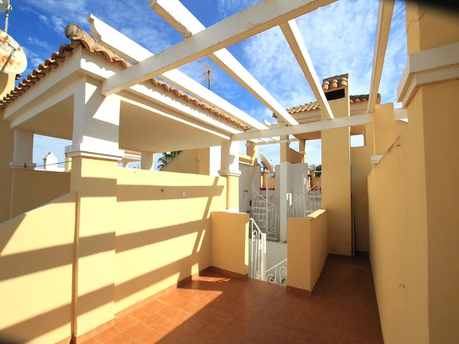 Este encantador adosado de tres dormitorios y dos baños muestra un diseño popular y está ubicado en la codiciada zona de Los Altos, en Orihuela Costa, en la parte sur de la Costa Blanca. Forma parte de la atractiva comunidad de La Pinada, que cuenta con una encantadora piscina comunitaria cerrada y una zona para tomar el sol. La comodidad de esta propiedad se ve reforzada por su proximidad a supermercados, tiendas, restaurantes, bares y centros comerciales, todo a poca distancia. A poca distancia en coche, encontrará el espléndido centro comercial Zenia Boulevard, hermosas playas de arena a lo largo de la costa de Orihuela Costa y excelentes campos de golf, incluyendo Villamartín, Campoamor y Las Ramblas. Además, el principal hospital de Torrevieja está a poca distancia de la propiedad. Uno de los aspectos más destacados de este adosado de 3 dormitorios es el generoso espacio exterior disponible. Cuenta con una amplia terraza delantera privada, un jardín lateral con aparcamiento fuera de la carretera, otra gran terraza en el primer piso y un fabuloso solárium en la azotea bañado por el sol. Hay amplios espacios para relajarse, disfrutar de comidas al aire libre y entretener a familiares y amigos, permitiéndole disfrutar del famoso sol español durante todo el año. Internamente, la propiedad se extiende en dos plantas. La planta principal comprende una espaciosa sala de estar y comedor de planta abierta, una cocina de planta abierta equipada con un lavadero independiente y una barra de desayuno, un dormitorio doble con armarios empotrados y un baño en la planta baja con ducha. En la planta superior, encontrará dos dormitorios adicionales, ambos con armarios empotrados, así como un baño familiar con bañera. Esta planta tiene dos puertas: una se abre a la terraza superior delantera, mientras que la otra conduce a una escalera de caracol que sube al solárium de la azotea. En general, se trata de una casa familiar de buen tamaño situada en un lugar soleado con un entorno tranquilo, cerca de impresionantes playas y campos de golf. Las propiedades como esta en la zona tienden a venderse rápidamente, por lo que se recomiendan visitas anticipadas. La propiedad se ofrece a la venta parcialmente amueblada (sujeto a oferta). Gastos comunitarios anuales Aprox. 260 Euros. Los Altos, ubicado en Orihuela Costa, es una zona residencial consolidada que presenta una opción atractiva para la propiedad en España. Conocido por su comunidad bien planificada y su variedad de servicios, Los Altos atrae tanto a familias como a jubilados, ofreciendo un estilo de vida tranquilo pero vibrante. La zona cuenta con una gran cantidad de servicios locales que mejoran la vida diaria. Los residentes pueden encontrar una variedad de supermercados, restaurantes y cafeterías al alcance de la mano. Los entusiastas de las compras apreciarán los centros comerciales cercanos, que ofrecen desde ropa y electrónica hasta productos frescos y artículos especiales. Los servicios de salud, las escuelas y las instalaciones recreativas también están convenientemente ubicados, lo que lo convierte en una opción ideal para las familias. Una de las características más atractivas de Los Altos es su proximidad a las impresionantes playas. A poca distancia en coche, le esperan las arenas doradas y las aguas cristalinas del Mediterráneo. Los residentes pueden disfrutar de una variedad de deportes acuáticos o simplemente relajarse bajo el sol. La pintoresca costa ofrece amplias oportunidades para actividades al aire libre, paseos por la orilla y vibrantes bares de playa locales. Los entusiastas del golf encontrarán Los Altos particularmente atractivo. La zona está rodeada de varios campos de golf de primera categoría, incluyendo Villamartín, Las Ramblas, Campoamor y Las Colinas, que se adaptan a todos los niveles de habilidad. Tanto si es un golfista experimentado como un principiante, los exuberantes campos verdes y los hermosos paisaj