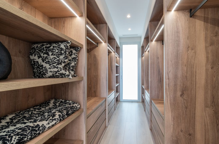 - Armarios empotrados con interior acabado, iluminación LED y sensor de movimiento.