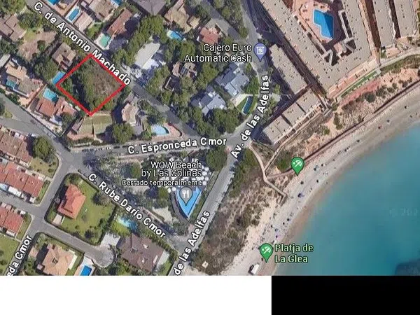 Parcela en la dehesa de Campoamor de 1.240 m2, situada a 100 metros de la playa de la Glea. Inmejorable ubicación en calle tranquila, para construcción 2 plantas, con retranqueos a fachada de calle 5 m y medianera de 3 m. Precio negociable.