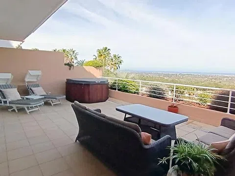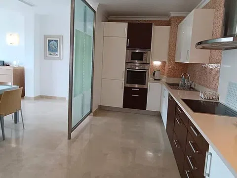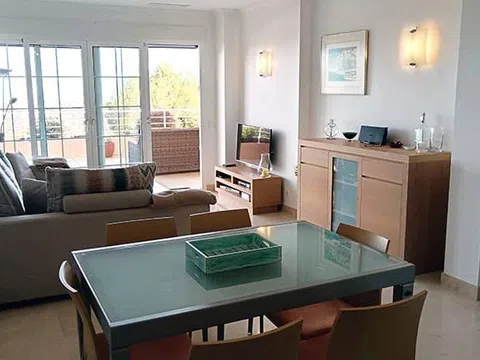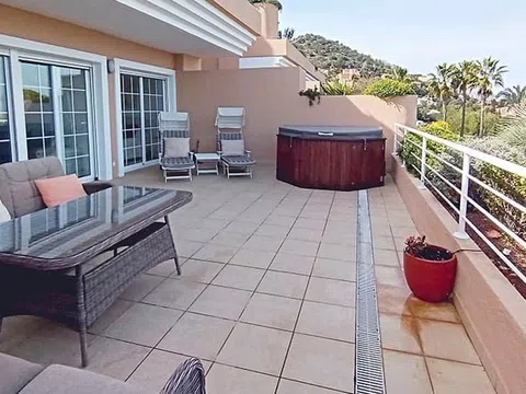 Apartamento en La Sella Residencial, Denia El apartamento se encuentra en el centro de la 1ª planta de la primera fase de Las Mimosas, construida en 2004 con acabados de alta calidad y un atractivo diseño atemporal. Una terraza de aproximadamente 60 m2 se extiende a lo largo de toda la fachada del apartamento y, además de una maravillosa vista panorámica, también ofrece un jacuzzi para disfrutar aún más relajado. El dormitorio principal, el segundo dormitorio y el salón-comedor están directamente conectados con ella. La elegante cocina totalmente equipada con lavadero adyacente se integra perfectamente en la zona de estar-comedor de planta abierta. Hay suelos de mármol en toda la propiedad y azulejos de mármol en el baño en suite con ducha a ras de suelo. Otro baño con ducha a ras de suelo se encuentra justo al lado del segundo dormitorio. El apartamento se vende completamente amueblado y equipado, listo para entrar a vivir. Al apartamento pertenece una plaza de aparcamiento en la planta baja del edificio equipado con ascensor. Las Mimosas es un complejo cerrado bien cuidado con exuberantes jardines y una encantadora piscina con amplias zonas para tomar el sol. Un lugar ideal para vivir todo/parte del año y para alquilar. Serviden, una agencia de alquiler turístico especializada en propiedades en La Sella tiene sus oficinas en el lugar. Ubicación Los apartamentos Las Mimosas están ubicados en el centro de Residencial La Sella y muy cerca de sus servicios y zona de ocio. Concretamente, cuenta con un mini mercado, bar/restaurante, farmacia, oficina de alquiler vacacional y mantenimiento, pistas de tenis y pádel. Junto a la entrada de Residencial La Sella, que también cuenta con servicio de seguridad 24/7, se encuentra el hotel boutique Fitness and Health Syncrosfera con sus innovadoras instalaciones que incluyen gimnasio, piscina cubierta/descubierta semiolímpica y un encantador restaurante de alta cocina. El campo de golf de 27 hoyos La Sella y el Hotel & Spa Denia Marriott de 5 estrellas están a solo 10 minutos en coche. Las localidades costeras de Denia y Jávea y sus playas se pueden llegar en unos 15 minutos en coche. Más detalles Suelo radiante eléctrico, aire acondicionado por conductos, doble acristalamiento, persianas eléctricas, TV SAT, jacuzzi, videoportero, totalmente amueblado. Piscina comunitaria de agua salada, Internet por fibra óptica.