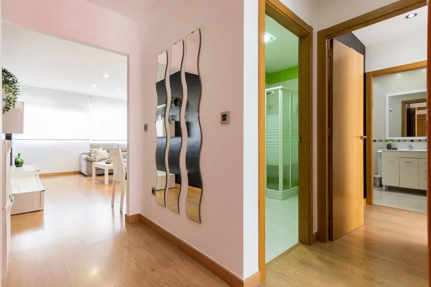 The apartment is in excellent condition, showcasing elegant flooring that brings warmth to each room, while smooth walls enhance the brightness and contemporary feel of the home. One of the standout benefits is the flat access to the street, free from architectural barriers, making it ideal for individuals with reduced mobility or those seeking easy accessibility.