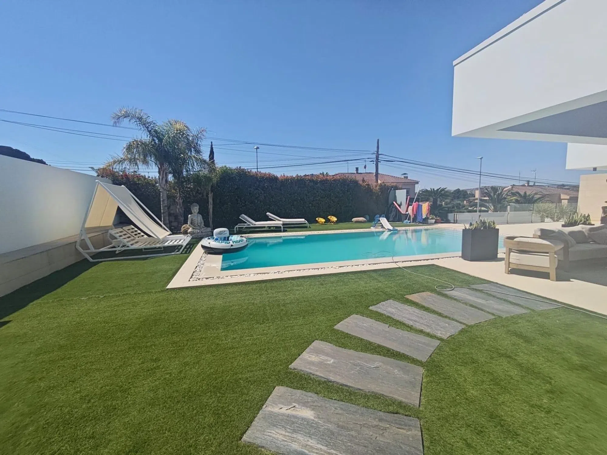 Chalet de lujo en Petrer, Alicante – 30 minutos de la playa Descubre este exclusivo chalet moderno en una de las mejores zonas de Petrer, Alicante. A tan solo 30 minutos de las hermosas playas de la Costa Blanca, esta propiedad ofrece un estilo de vida de lujo y comodidad. � Distribución y estancias 4 dormitorios: incluyendo una suite principal con baño en suite, ducha y bañera, vestidor para él y para ella, y tocador. 3 baños completos y 1 aseo para mayor comodidad. Cocina completamente equipada con isla central, acceso directo desde cualquier punto de la casa a la piscina. Salón comedor con chimenea con ventanales directos a la zona exterior. Salón de juegos para entretenimiento familiar. Patio y terraza para disfrutar del aire libre. Ascensor que conecta todas las plantas de la vivienda. � Exteriores y comodidades Piscina privada con césped artificial circundante. Zona de barbacoa para reuniones sociales. Semisótano con patio interior, cocina office abierta al salón y barra. Aire acondicionado y calefacción de aerotermia así como placas solares en toda la cubierta de la casa. Garaje amplio con capacidad para varios vehículos. � Ubicación Situado en una de las mejores zonas de Petrer, este chalet combina la tranquilidad del entorno con la proximidad a servicios y accesos principales. La cercanía a la playa permite disfrutar de lo mejor de la vida costera sin renunciar a la paz del campo.
