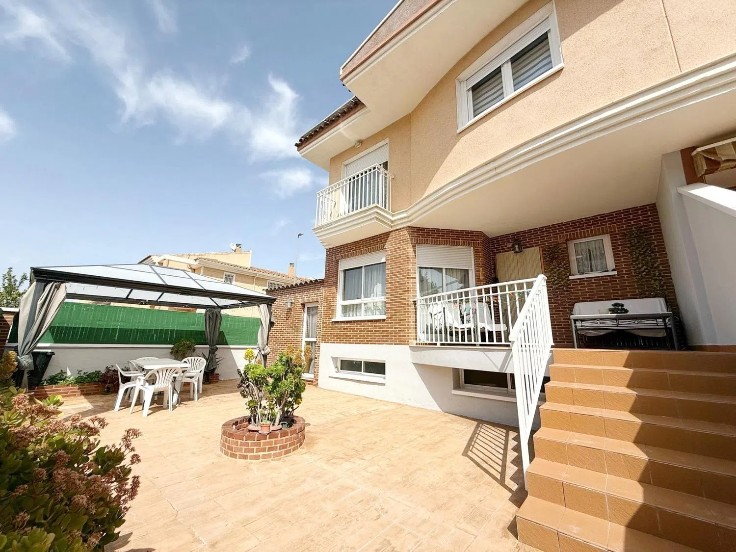 *Bienes & Raíces - Servicios Inmobiliarios* presenta este espectacular bungalow, ubicado en una de las zonas más exclusivas de Petrer, en el barrio de San Jerónimo, dentro de una calle privada que garantiza tranquilidad y privacidad. Destacar la maravillosa terraza de esta vivienda, diseñada para aprovechar al máximo los días soleados y crear un espacio perfecto para disfrutar en familia. Con una ubicación estratégica, permite que el sol ilumine el espacio durante la mayor parte del día, brindando una sensación de calidez y bienestar. Esta maravillosa vivienda, construida en 2002, combina la solidez de la construcción moderna con la elegancia atemporal. Cada rincón de la propiedad ha sido cuidadosamente diseñado, con un enfoque en la funcionalidad y el confort, utilizando materiales de la más alta calidad que aseguran una larga durabilidad. La vivienda se distribuye en 3 plantas: En la planta principal, se encuentra un espacioso y luminoso salón-comedor, diseñado para ofrecer un ambiente de confort y amplitud, cocina independiente y equipada que además dispone de una funcional galería y un baño completo. Desde esta planta se accede a una amplia terraza, un espacio ideal para disfrutar del sol y de momentos al aire libre. En la planta superior se encuentran los tres dormitorios, todos de gran tamaño. El dormitorio principal dispone de un balcón privado, lo que aporta un toque de exclusividad y confort. Esta planta también cuenta con un baño espacioso, que incluye un lavabo doble y bañera. En el sótano se ubica un amplio garaje, complementado con diversos espacios versátiles que pueden adaptarse a diversas necesidades, como trastero, sala de estudio u otras funcionalidades según los requerimientos del nuevo propietario. También incluye una estancia con acceso independiente desde la terraza, que dispone de agua, electricidad y aire acondicionado. Está diseñada para ser utilizada como oficina o como un espacio con mayor autonomía para quien lo requiera. Si este bungalow ya es una propiedad excepcional, a lo anteriormente descrito se añade el beneficio de contar con placas solares, lo que mejora aún más su eficiencia energética. Esto no solo reduce los costos de consumo eléctrico, sino que también favorece la sostenibilidad del hogar, contribuyendo a un entorno más ecológico. Contáctanos para obtener más información sin compromiso. ☎ � Av. Camilo José Cela, 6, Elda � *Esta propiedad se encuentra bajo mandato de exclusividad, por lo que solicitamos amablemente no molestar a los ocupantes de la vivienda, en caso de que los haya.