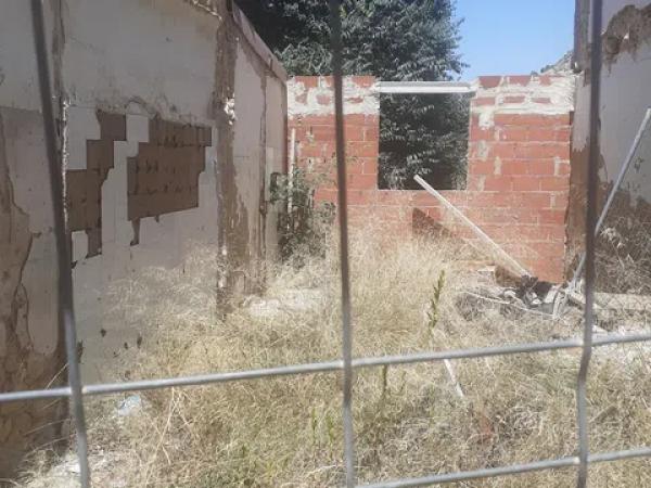 Terreno urbano en casco antiguo de petrer con Cimientos con las placas de anclaje para una estructura metálica con toma de tierra y tiene luz y agua y los planos visados para hacer una casa a 2 alturas.