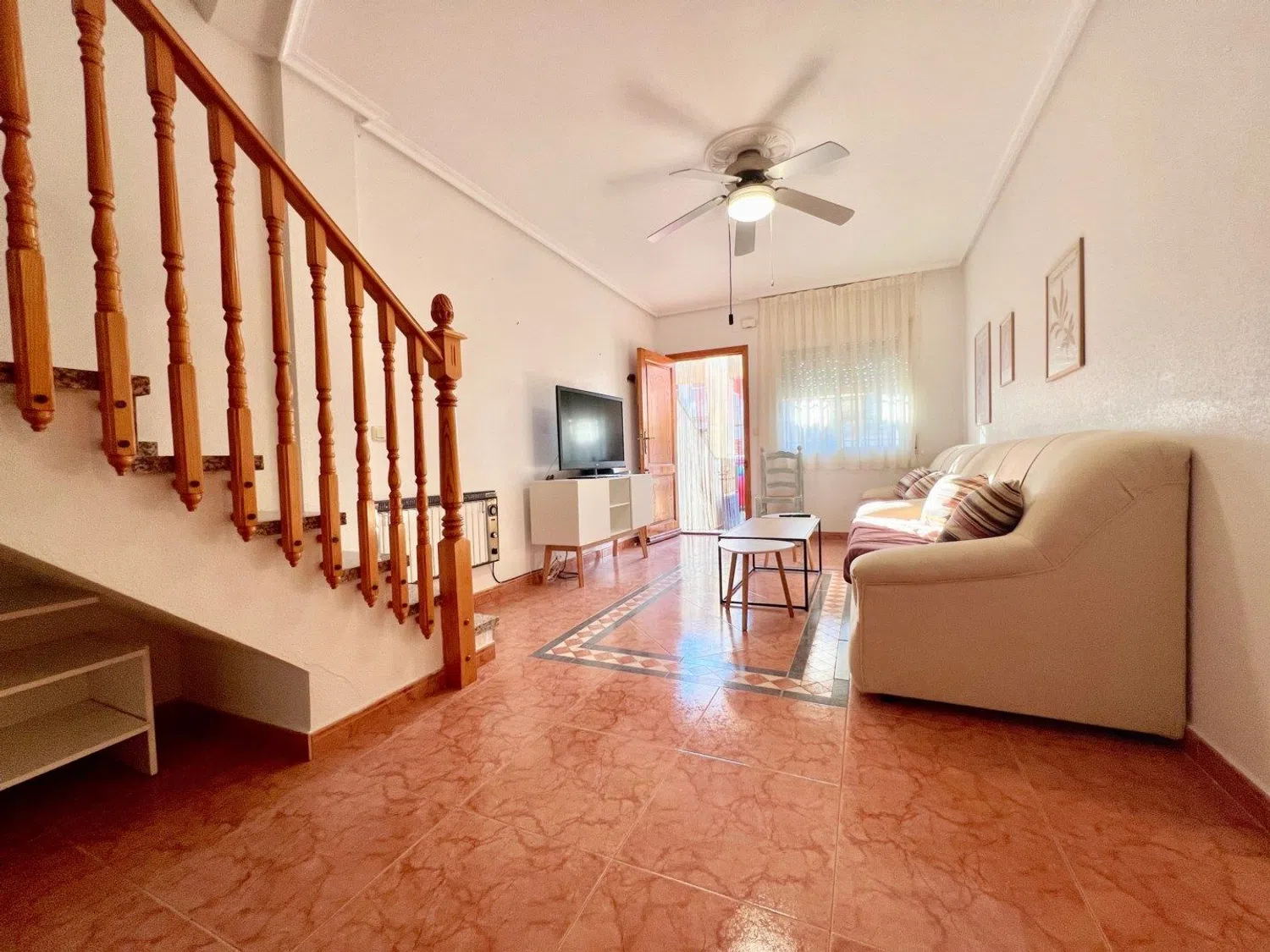 We are delighted to present this charming townhouse, conveniently located just 200 meters from a stunning Mediterranean beach. A cozy terrace welcomes you into the living area, which seamlessly flows towards the kitchen featuring a patio and a bathroom. Further along on the ground floor, you will find three bedrooms along with an additional bathroom. Ascending the stairs, you'll discover a spacious living room, a generous bedroom complete with its own bathroom, and a sunny west-facing terrace. This remarkable townhouse offers great potential for you to personalize the space to your taste, providing ample room for the entire family. Here, you are just a short walk from the beach, local restaurants, and the beauty of nature. Feel free to reach out to us for a visit!