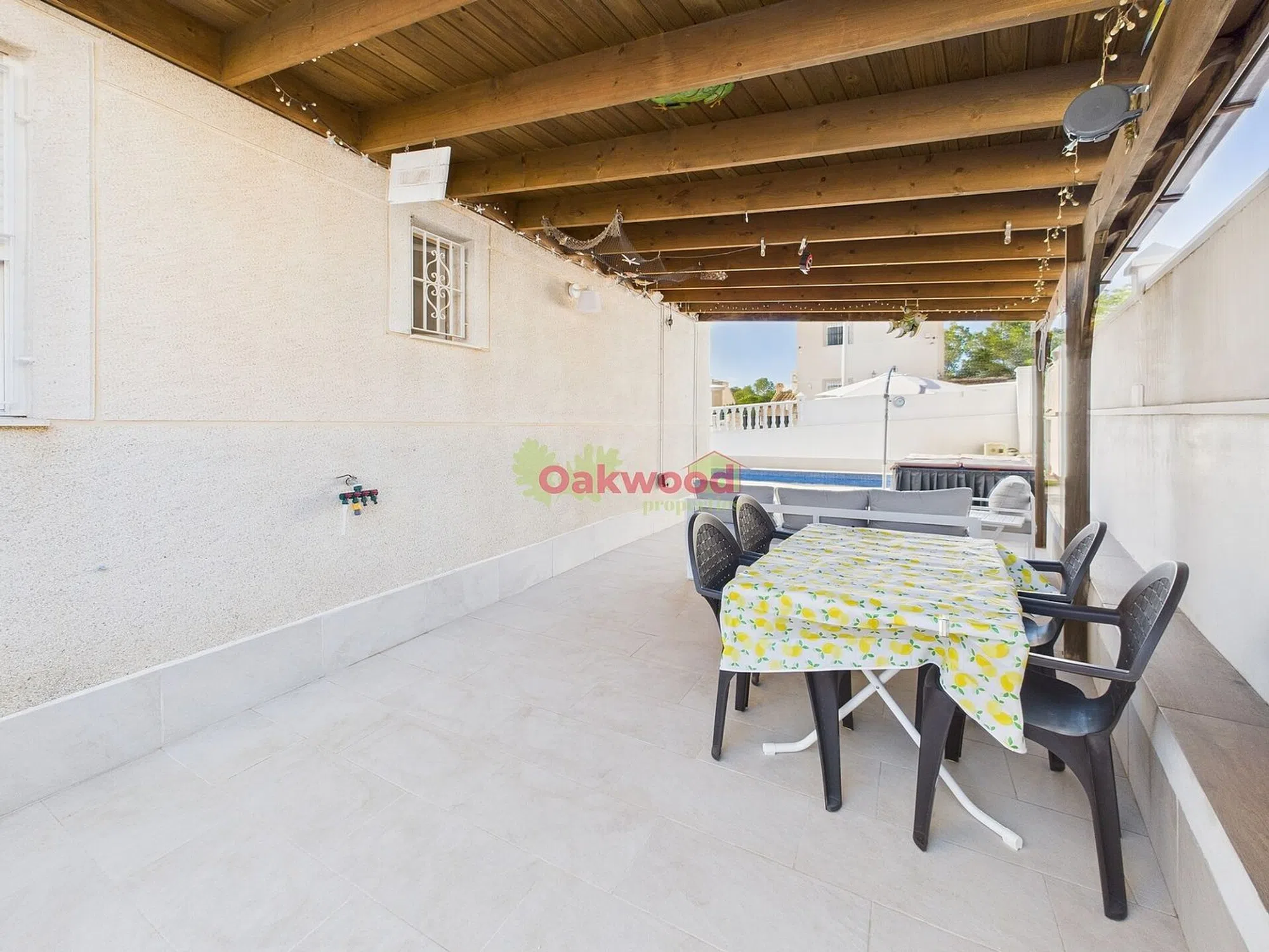Villa independiente de 3 dormitorios en Pinar de Campoverde Descubra esta encantadora villa independiente en la codiciada zona de Pinar de Campoverde, situada en una parcela privada que ofrece un equilibrio excepcional de sol, sombra y vida al aire libre. El amplio jardín rodea la vivienda, con una gran piscina privada climatizada de agua salada, varias zonas de estar perfectas para relajarse o recibir invitados, espacios cubiertos para refrescarse a la sombra, aparcamiento dentro de la parcela para dos vehículos y un práctico trastero. La terraza delantera ha sido acristalada con buen gusto, creando un luminoso y acogedor jardín de invierno, un lugar ideal para disfrutar del café por la mañana o relajarse durante la cena. En el interior, el salón-comedor ofrece un ambiente acogedor, completo con chimenea abierta. Una cocina independiente se encuentra junto al pasillo, junto a un baño familiar y dos dormitorios bien proporcionados, cada uno con armarios empotrados. Una escalera exterior conduce al estudio de invitados independiente, ideal para visitantes o familiares, que cuenta con un amplio dormitorio, cocina americana, gran baño tipo wet room con ducha doble, amplio espacio de almacenamiento y puertas dobles que dan acceso a un balcón privado. La vivienda dispone de aire acondicionado en todas las estancias, calefacción central y agua caliente por gasóleo, conexión de fibra óptica y está idealmente situada en una zona tranquila y apacible de Campoverde. Esta encantadora villa está lista para visitar y ha tenido un solo propietario desde nueva. ¡No pierda la oportunidad de hacerla suya!