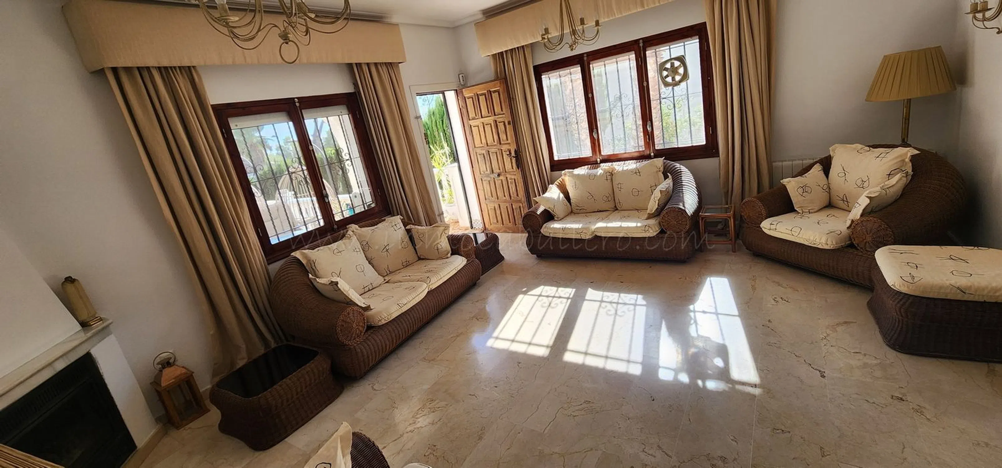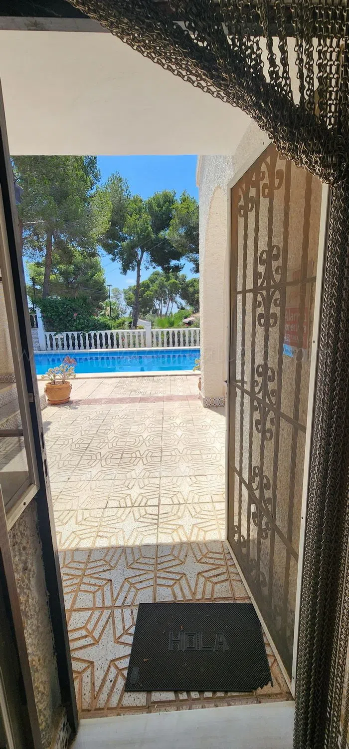 Encantadora vivienda de una planta con piscina privada y amplias zonas de terraza. Esta magnífica propiedad, distribuida en una sola planta para mayor comodidad, ofrece un espacio luminoso y funcional. Cuenta con un amplio salón con chimenea que, junto a la cocina, tiene acceso directo a una gran terraza cubierta, perfecta para el disfrute en cualquier época del año. La vivienda dispone de comedor, 4 dormitorios con armarios empotrados (uno de ellos actualmente habilitado como oficina) y 3 baños, dos de ellos en suite, garantizando privacidad y confort. Como complementos excepcionales, incluye una cocina de verano para reuniones al aire libre, lavadero, varios trasteros y sala de calderas. Comodidades destacadas: - Cocina de verano - Gran terraza cubierta - Piscina privada con amplia terraza. - Aparcamiento techado y espacio para varios coches. - Aire acondicionado. - Calefacción central de gasóleo. - Lavadero. 3 km de un campo de golf 12 kilómetros de la playa 50 minutos del aeropuerto de Alicante.