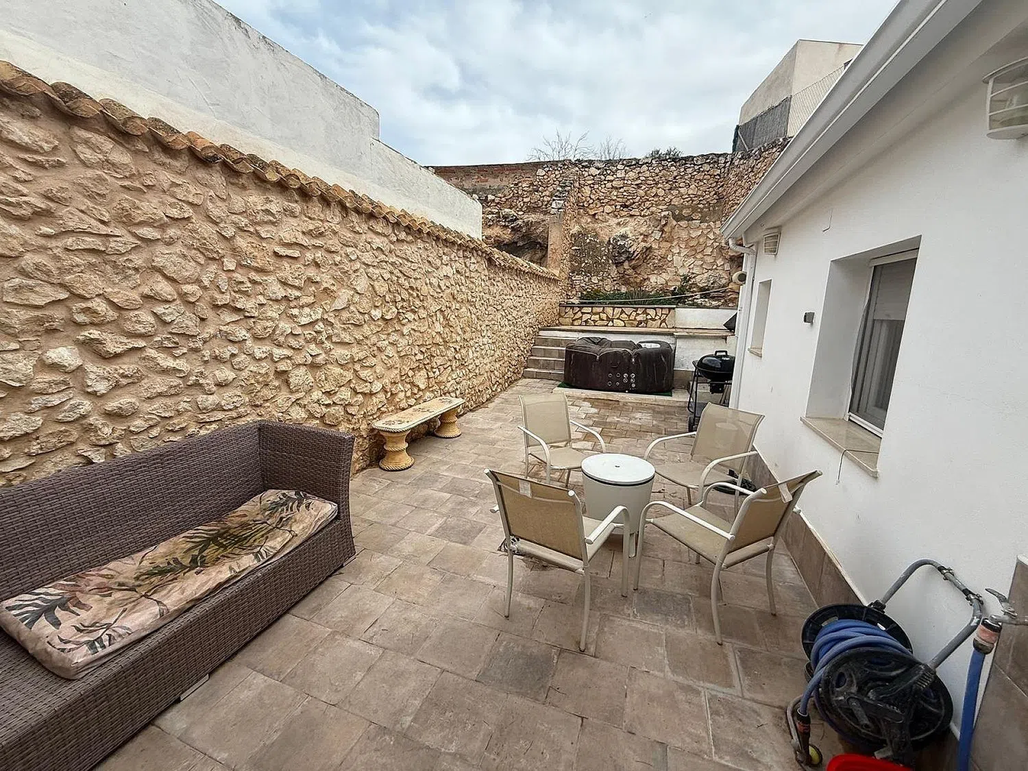 NO SE ALQUILA Preciosa casa adosada reformada de 4 dormitorios y 2 baños en Pinoso. Nos complace presentar esta encantadora casa adosada reformada en una zona tranquila de Pinoso, junto a un hermoso parque y a poca distancia a pie de todos los bares y restaurantes que ofrece Pinoso. Además, está cerca de todos los servicios necesarios. Completamente renovada, esta casa combina a la perfección el confort moderno con el encanto tradicional. Las características de la propiedad incluyen una espaciosa cocina a estrenar con un diseño elegante y funcional, suelos nuevos que le dan a la casa un aire fresco y moderno. Nuevas ventanas de doble acristalamiento para una mayor eficiencia energética y comodidad, una acogedora estufa de pellets en el salón, perfecta para noches cálidas y acogedoras. Dispone de 4 amplios dormitorios, todos recién reformados y listos para entrar a vivir. El espacio exterior cuenta con un encantador patio privado con jardín, un espacio ideal para comer al aire libre y relajarse. También incluye un jacuzzi para una relajación ilimitada. Hay mucho espacio para añadir una piscina pequeña y crear su propio oasis privado. Esta es una propiedad imprescindible para quienes buscan una casa bellamente renovada en una ubicación fantástica. No dude en contactarnos para concertar una visita a esta encantadora casa. Sobre Pinoso. Pinoso (El Pinós) es uno de los pueblos más ricos de España, con una mina de mármol, una próspera industria del calzado, yacimientos de sal y una floreciente industria vinícola y agrícola. El pueblo se encuentra en la campiña montañosa de la región vinícola de Alicante, a 45-50 minutos en coche del aeropuerto, la ciudad y las playas de Alicante, y cerca de la frontera con Murcia. Pinoso cuenta con todos los servicios que necesita: supermercados como Consum, Dia, Mas y Mas e Hiperber, una amplia gama de restaurantes, incluyendo restaurantes irlandeses e indios, y bares (para mayores de 50 años), un centro médico 24 horas, dentistas que hablan inglés, un veterinario, tiendas, bares, etc., y celebra un mercado semanal los sábados y un mercado interior abierto 6 días a la semana. Pinoso cuenta con tres escuelas primarias, un instituto y una escuela de música. También hay un nuevo centro cultural con biblioteca y clases de español para extranjeros. A lo largo del año, Pinoso celebra sus tradicionales fiestas españolas con desfiles y actuaciones musicales de renombre nacional, hogueras con un ambiente mágico y la gente sale a la calle. También se celebra un encierro anual (¡a los toros no se les hace daño!) que atrae a multitudes de toda la región para ver a los valientes participantes unirse a los toros en la plaza especial. La ciudad de Elda y Petrer está a 20 minutos en coche y cuenta con un gran hospital con médicos que hablan inglés, una gran variedad de bares y restaurantes, un centro comercial cubierto, un gran gimnasio internacional, Carrefour, Aldi, Lidl, un cine con películas en inglés semanalmente, bolera y locales de comida rápida.
