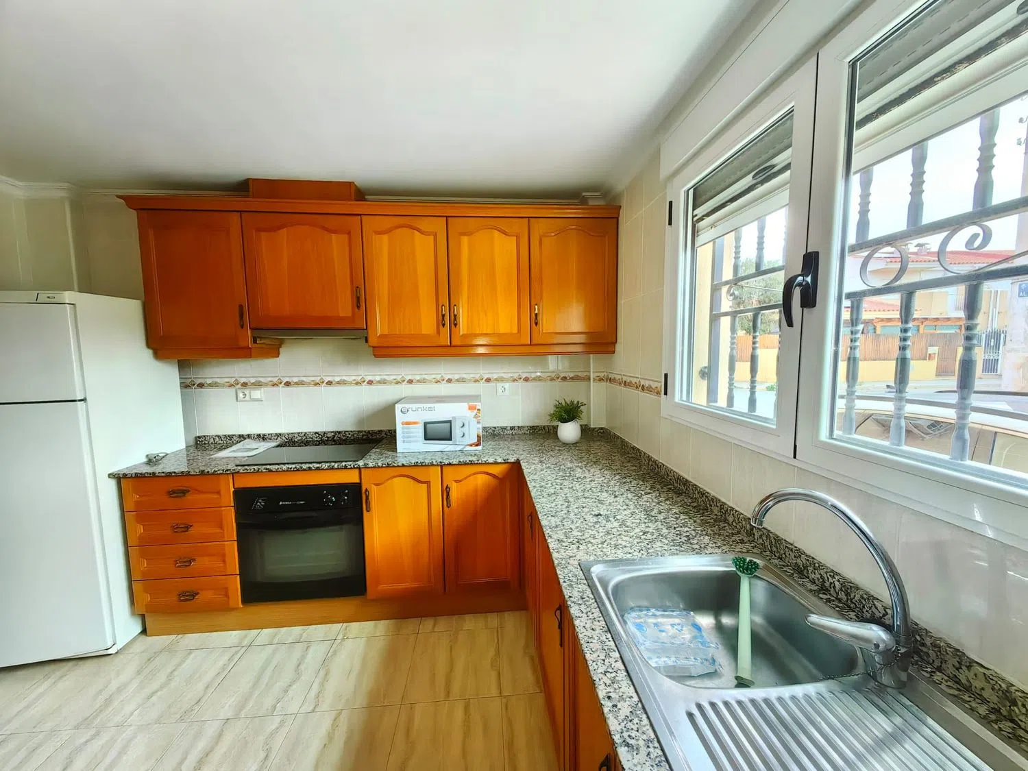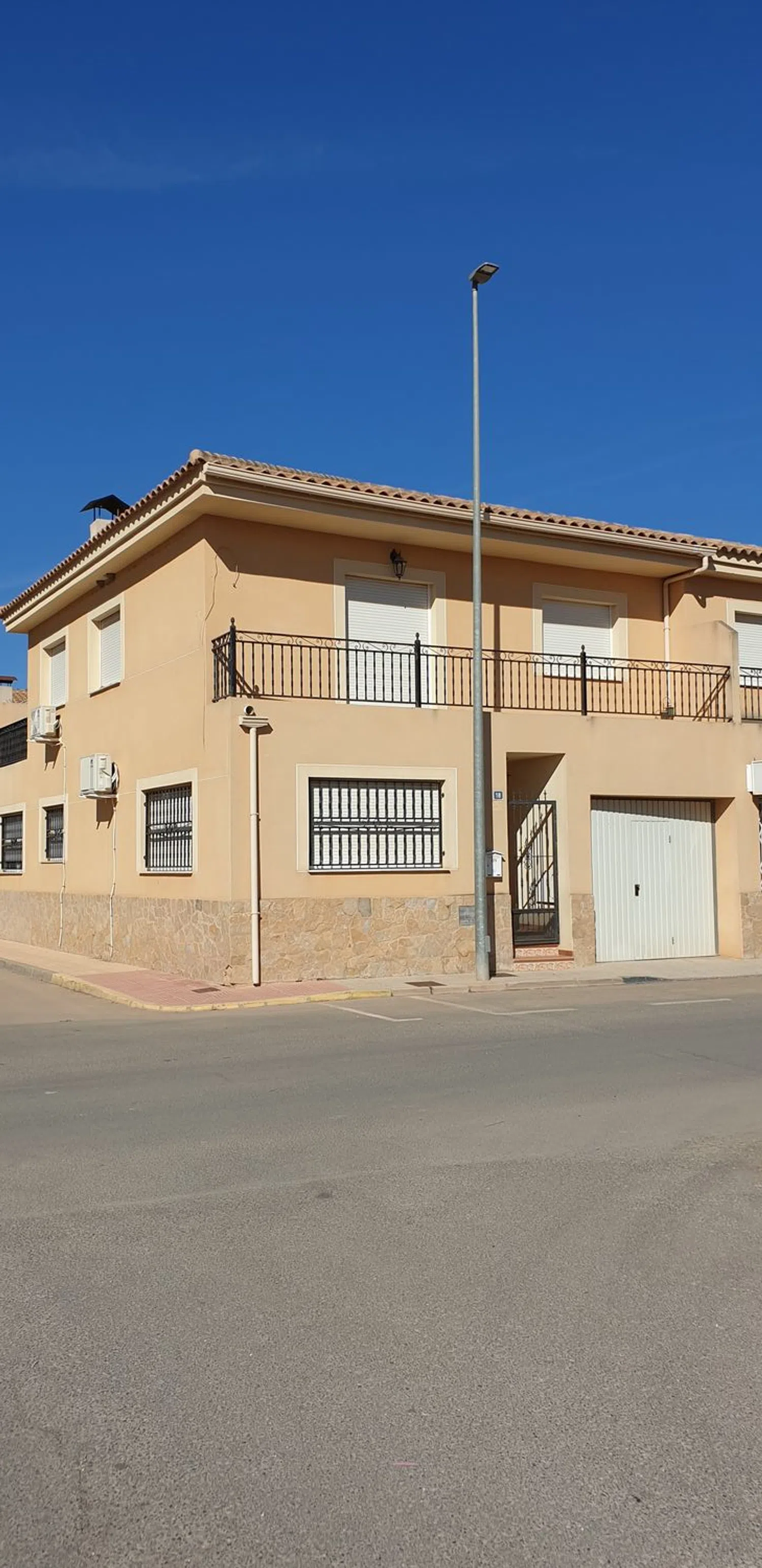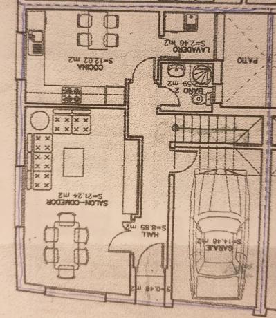 The home is a spacious duplex, featuring on the ground floor a living room, a washroom, a fully equipped kitchen, a utility area, an open patio, and a garage. The upper level comprises four bedrooms, a bathroom, and a balcony, perfect for enjoying pleasant evenings.