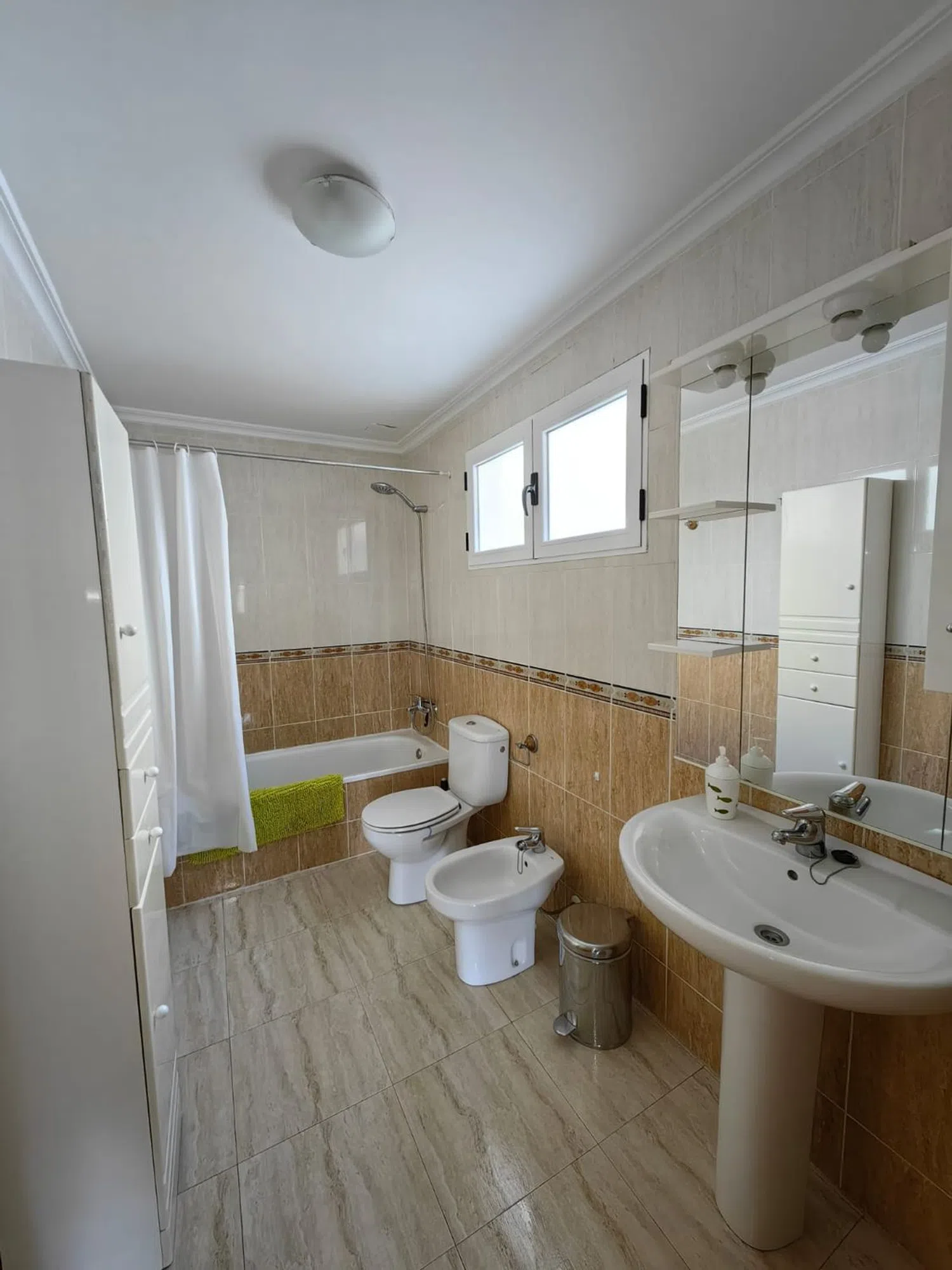 The property is equipped with modern heating and cooling systems, including two air conditioning units—one in the living room and one in the main bedroom, both approximately three to four years old. Additionally, there is a heat source in the bathroom for extra comfort. The kitchen boasts a brand-new induction cooktop, and an electric water heater that is just two years old complements the household amenities.