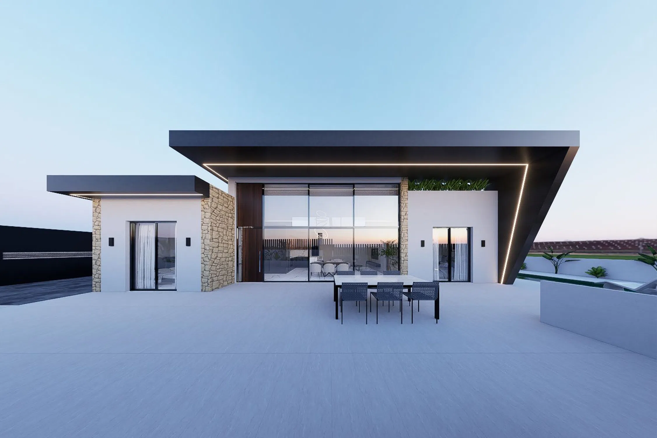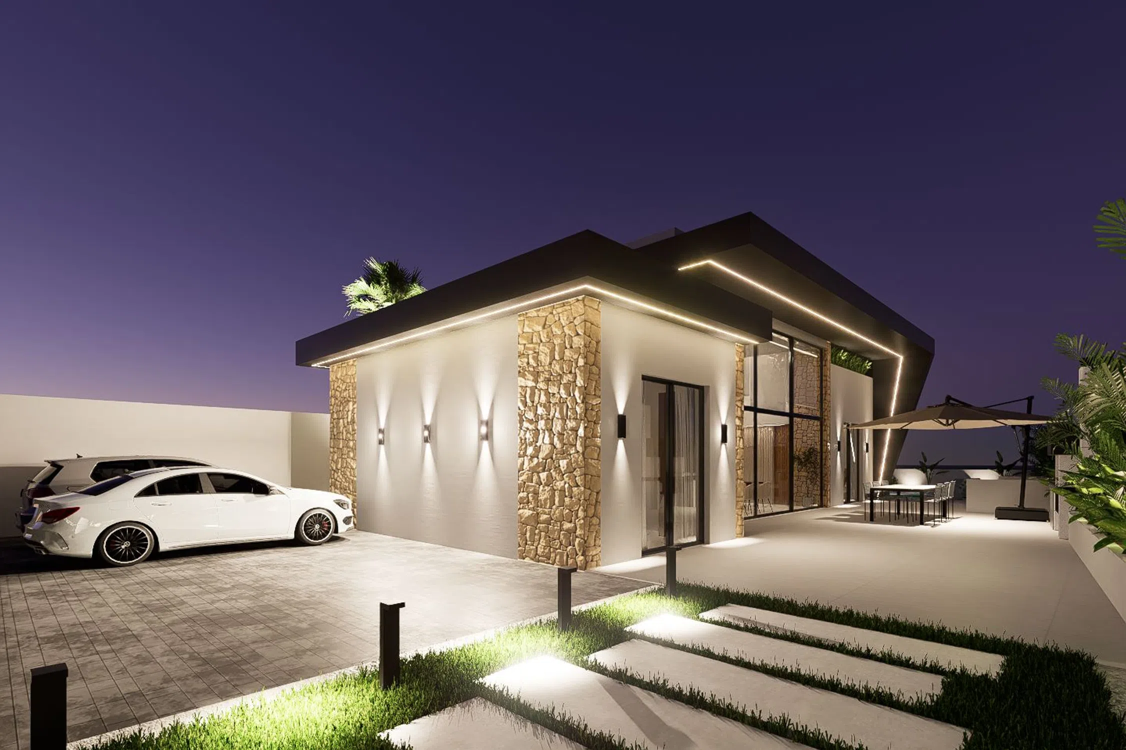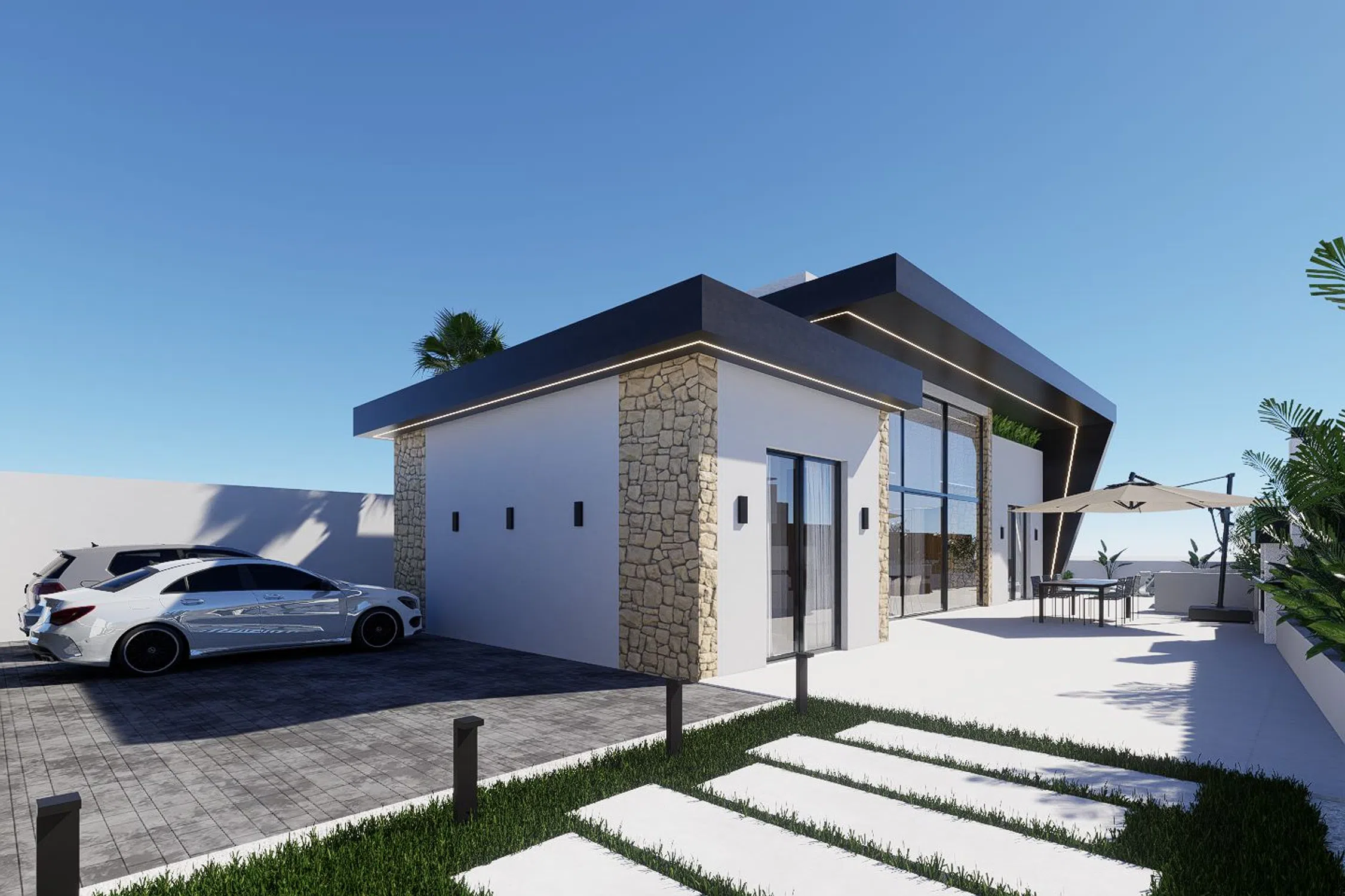 Vive la experiencia de estrenar tu propio hogar en una de las zonas residenciales más nobles y tranquilas, rodeada de servicios y a pocos minutos de todo. Sobre una parcela privada de 400 m², se levanta esta elegante vivienda unifamiliar de 103 m² construidos en una sola planta, diseñada para ofrecer máximo confort, luminosidad y estilo. Su arquitectura contemporánea, con techos altos de 3 a 4,5 metros y grandes ventanales, inunda cada estancia de luz natural, creando espacios amplios, frescos y acogedores. Disfruta de: - Parcela de 400 m² con jardín y total privacidad - 103 m² en una sola planta, sin escaleras ni barreras - Diseño moderno y materiales de primera calidad - Espacios luminosos y techos de gran altura - Piscina privada - Terraza y solárium perfectos para relajarse o recibir invitados Una casa pensada para quienes buscan calidad de vida, independencia y elegancia.
