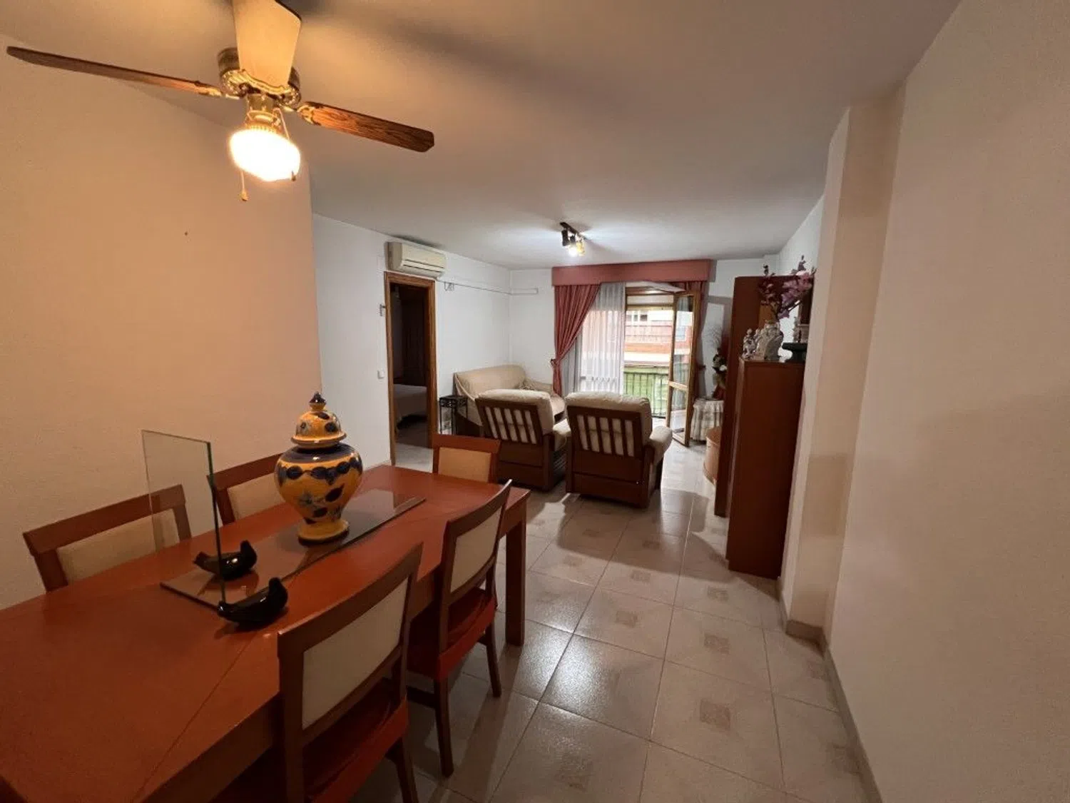 The living room offers access to a charming terrace, complemented by air conditioning for added comfort. The independent kitchen comes fully equipped and furnished, providing a convenient space for culinary endeavors.