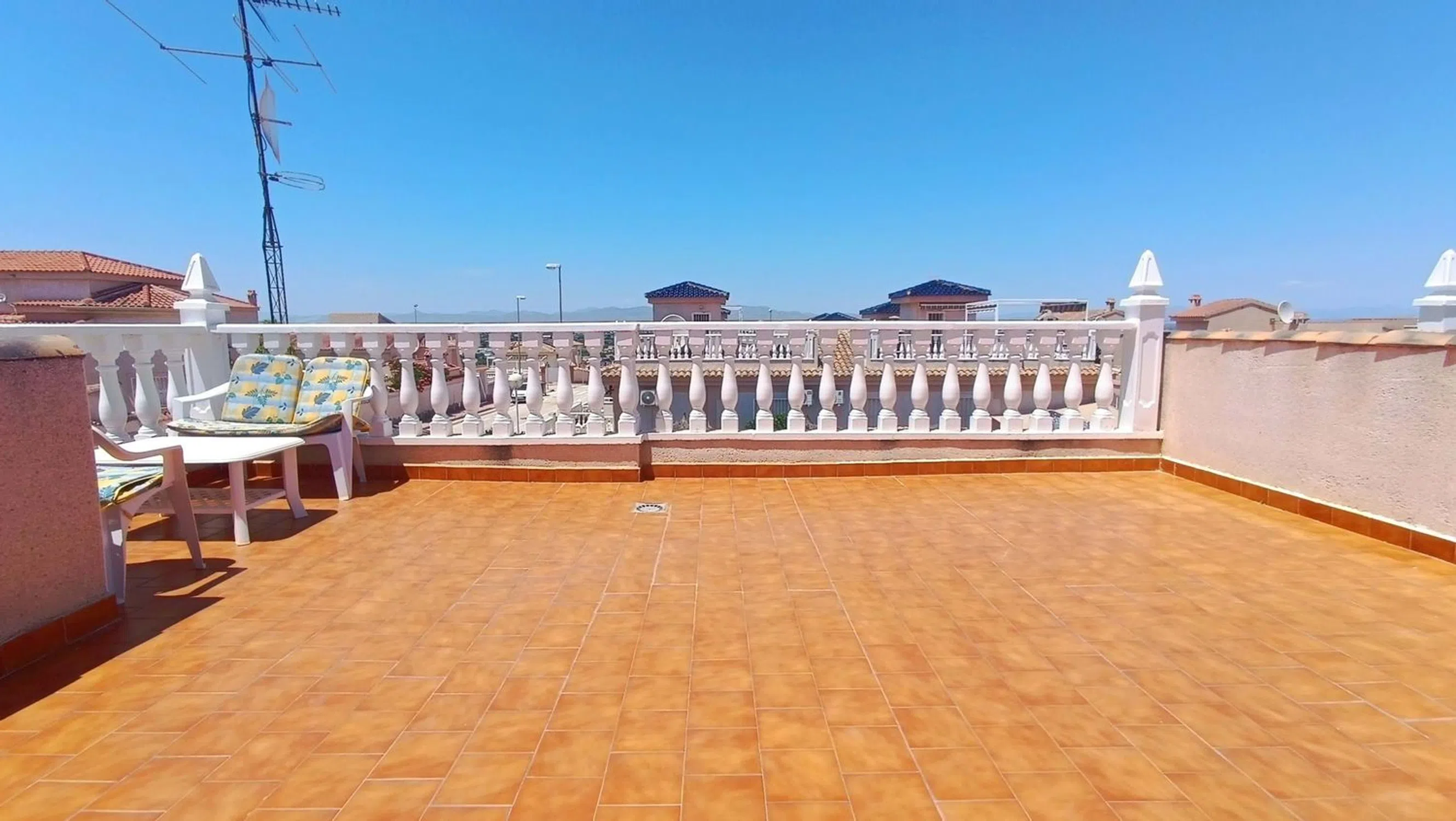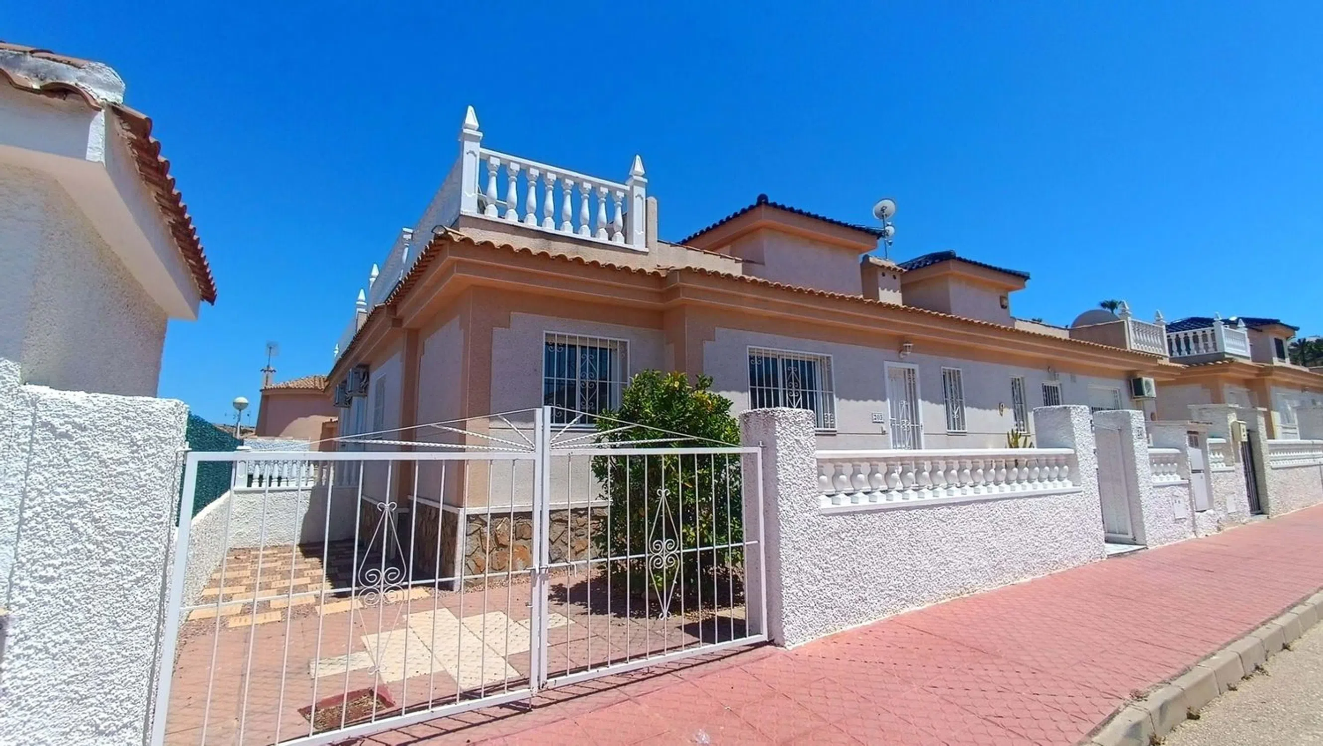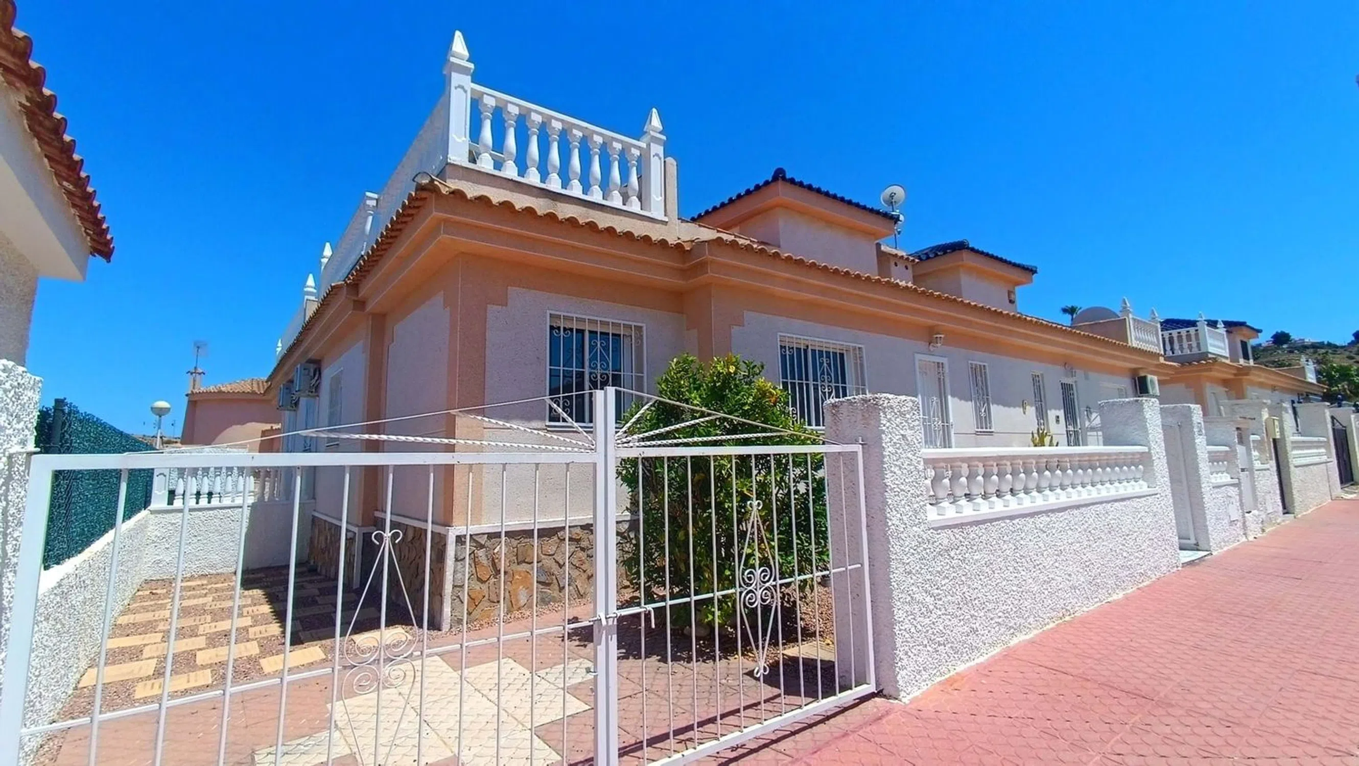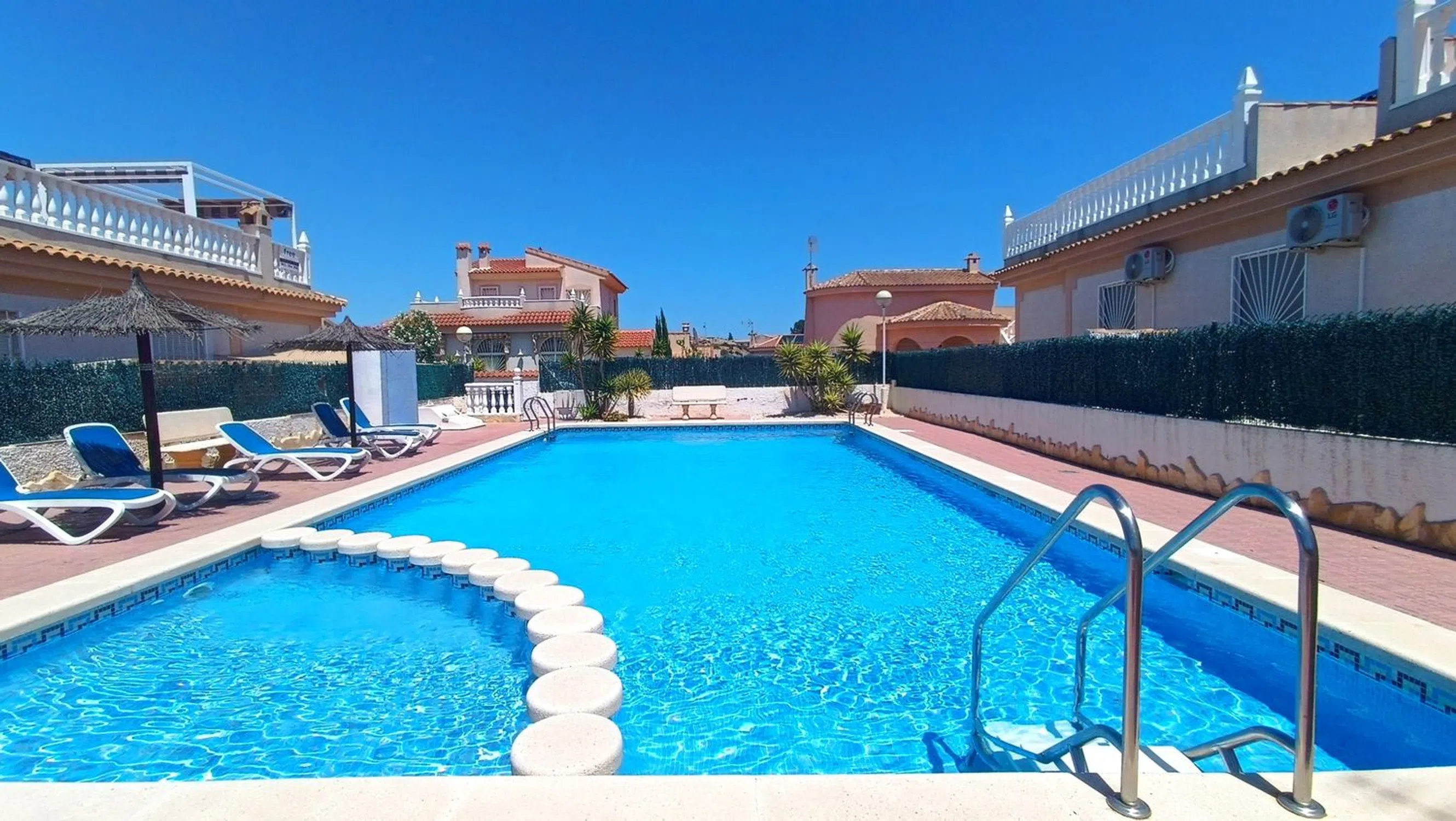 ¡Nos complace presentar este Inmaculado Bungalow de 2 Dormitorios Blue Top con Solárium Privado y Acceso Directo a la Piscina en Benimar II! Ubicado en la muy solicitada zona de Benimar II, este bungalow de estilo "Blue Top" con orientación oeste, bellamente presentado, ofrece la combinación perfecta de confort, privacidad y conveniencia, a solo unos pasos de la piscina comunitaria y a un corto paseo de los servicios locales. La propiedad cuenta con una amplia zona exterior con aparcamiento fuera de la carretera y un espacio soleado para sentarse, ideal para disfrutar del sol de la tarde. En el interior, le da la bienvenida una luminosa y espaciosa sala de estar, comedor y cocina de planta abierta, con un acabado de alto nivel. Hay dos habitaciones dobles, ambas con armarios empotrados, y un moderno baño familiar. Desde el salón, las puertas del patio se abren a un patio interior privado, que incluye la caldera y la lavadora. Las escaleras desde el patio conducen a un generoso solárium privado con impresionantes vistas de los alrededores y la zona de la piscina de al lado, así como a un práctico trastero. La piscina comunitaria, bien mantenida, está justo al lado de la propiedad y cuenta con un amplio espacio para tomar el sol y relajarse. La propiedad se vende completamente amueblada, esta es una fantástica oportunidad para poseer una casa de bajo mantenimiento en una de las ubicaciones más deseables de la zona, ideal para vacaciones o para vivir a tiempo completo. 5 Real Estate es la agencia inmobiliaria internacional de tarifa fija y servicio completo de más rápido crecimiento en España, con numerosas oficinas en el norte y el sur de la Costa Blanca, así como en la región de Murcia. Estamos comprometidos a brindar un servicio transparente y de primera clase a todos nuestros clientes, ya sean compradores o vendedores. Desde el momento en que se ponga en contacto con nosotros por primera vez, se dará cuenta de la diferencia que brindamos y promovemos como estándar. Puede estar seguro de que está tratando con profesionales eficientes y confiables con muchos años de experiencia en el sector inmobiliario español. En 5 Real Estate solo vendemos propiedades que están directamente listadas con nosotros, lo que significa que conocemos personalmente a cada uno de los vendedores, sus hogares y las áreas en las que se encuentran. Dada nuestra extensa cartera de propiedades listadas directamente, estamos seguros de que podemos encontrar la propiedad adecuada para satisfacer sus necesidades. Así que, haga una consulta hoy mismo y descubra por qué somos tan diferentes y por qué nos estamos convirtiendo en el agente preferido tanto para compradores como para vendedores.