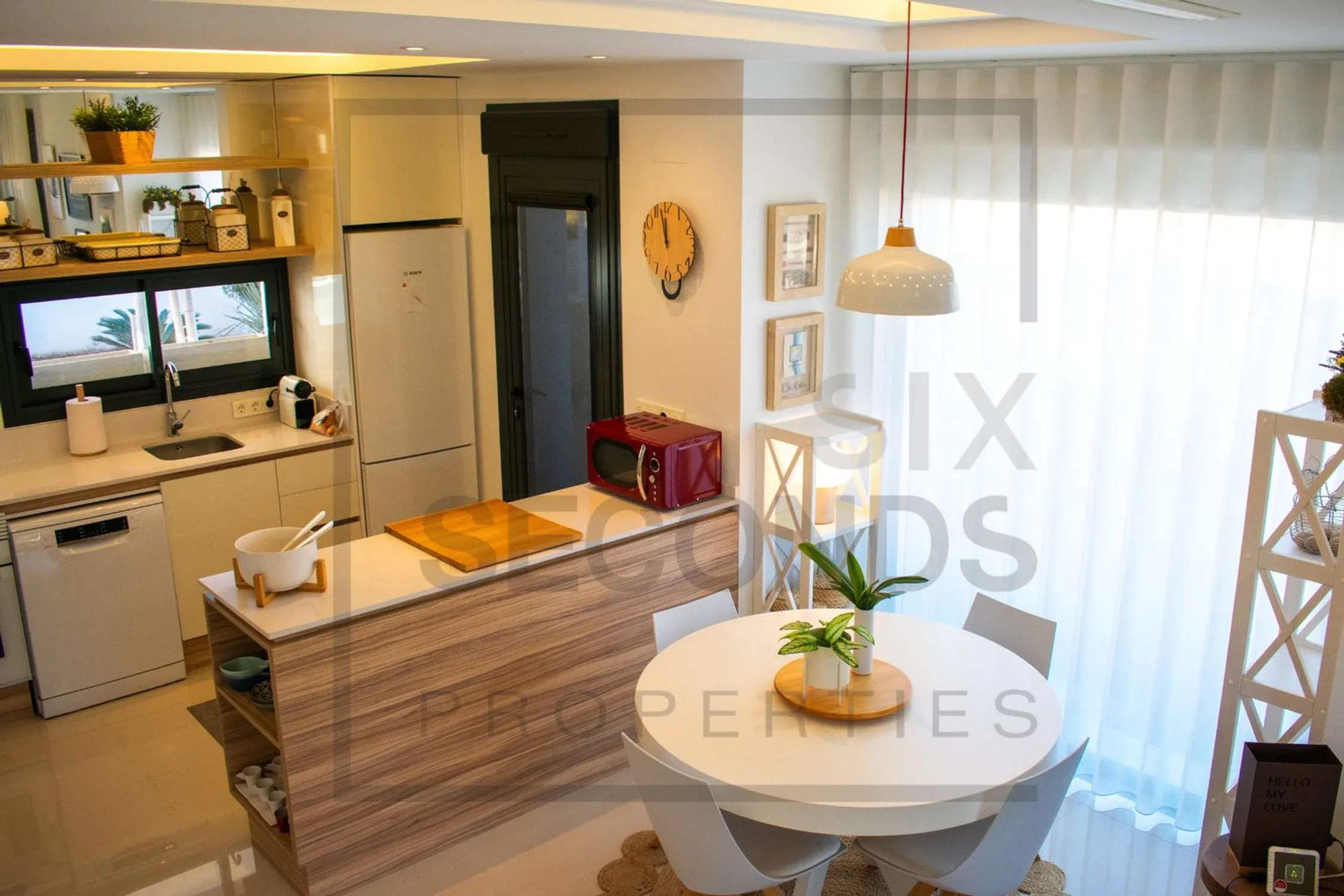 Este chalet adosado, distribuido en dos plantas, te sumerge en una experiencia única desde el primer paso. En la planta baja, un salón meticulosamente amueblado con muebles de alta calidad y televisión incorporada te da la bienvenida a un espacio de refinada comodidad. La cocina de estilo americano, con una moderna barra, se convierte en el epicentro de la vida social, mientras que un aseo añade comodidad adicional. La planta superior alberga dos habitaciones, cada una con armarios empotrados, brindando un generoso espacio de almacenamiento. Una de las habitaciones se abre a una terraza privada, creando un rincón sereno para disfrutar de las vistas panorámicas. El baño, con suelos radiantes, eleva la experiencia de confort, mientras que las escaleras conducen a un solárium privado de 30 metros cuadrados. Este espacio cuenta con un jacuzzi privado y ofrece vistas impresionantes a la pintoresca laguna de La Mata. Esta propiedad se ofrece completamente amueblada con mobiliario de alta gama, y televisiones incluidas. La integración de tecnologías modernas como aerotermia, climatización central frío-calor, preinstalación de alarma de seguridad, iluminación técnica y amplificación de señal wifi, asegura una experiencia residencial sin igual. Además, cuenta con una piscina comunitaria de gran tamaño rodeada de exuberantes zonas ajardinadas, la que tienta a disfrutar de ella gran parte del año. Clima: El clima en la Costa Blanca, a menudo considerado como el mejor de Europa, hace posible un estilo de vida muy sociable y saludable, al aire libre, marcado por instalaciones deportivas y de ocio, con ciudades turísticas, excitantes y cosmopolitas, que destacan por la prestación de servicios máxima categoría, algunos de ellos exclusivos, considerados de auténtico lujo. Todos ellos destinados a un cliente exigente, que busca calidad y cercanía. La Costa Blanca cuenta con más de 300 días de sol al año. Un paraíso con excelentes conexiones a toda Europa. El Aeropuerto de Alicante-Elche cuenta con unas modernas instalaciones y con un fácil y cómodo acceso desde cualquier punto de la provincia. Entorno: La Costa Blanca sigue atrayendo a personas de toda Europa, y de otros lugares del mundo, porque ofrece una calidad de vida única en un hermoso entorno a orillas del mar Mediterráneo, rodeado de montañas y de una exuberante vegetación. Además de los campos de golf y los puertos deportivos que podrás disfrutar por toda la costa, la zona también ofrece la posibilidad de esquiar en la cercana Sierra Nevada, Javalambre o Valdelinares, unos paraísos para amantes de los deportes de invierno, con hermosos paisajes naturales. La Costa Blanca ofrece un estilo de vida singularmente rico, donde las mejores playas y calas del Mediterráneo se combinan con un interior repleto de montañas y pueblos que esconden cultura y monumentos históricos únicos en el mundo. IMPORTANTE! Recuerda que nuestros servicios NO incrementan NUNCA el precio final de la vivienda a nuestros clientes. Nuestra experiencia en el sector nos convertirá en tu aliado, un asesor de confianza que te ayudará a elegir la casa de tus sueños en la mejor zona, informarte sobre el precio de mercado de los inmuebles en los que estás interesado, las calidades empleadas...todo la información imprescindible y objetiva para que tu experiencia sea totalmente satisfactoria. Nuestra agencia pertenece a un grupo de empresas consolidadas y especializadas todas ellas en el sector del hogar; arquitectura, interiorismo, mobiliario, asesoramiento en la compra venta de bienes raíces etc... Estos recursos propios n.
