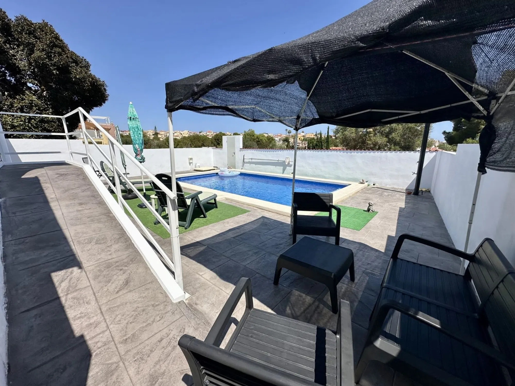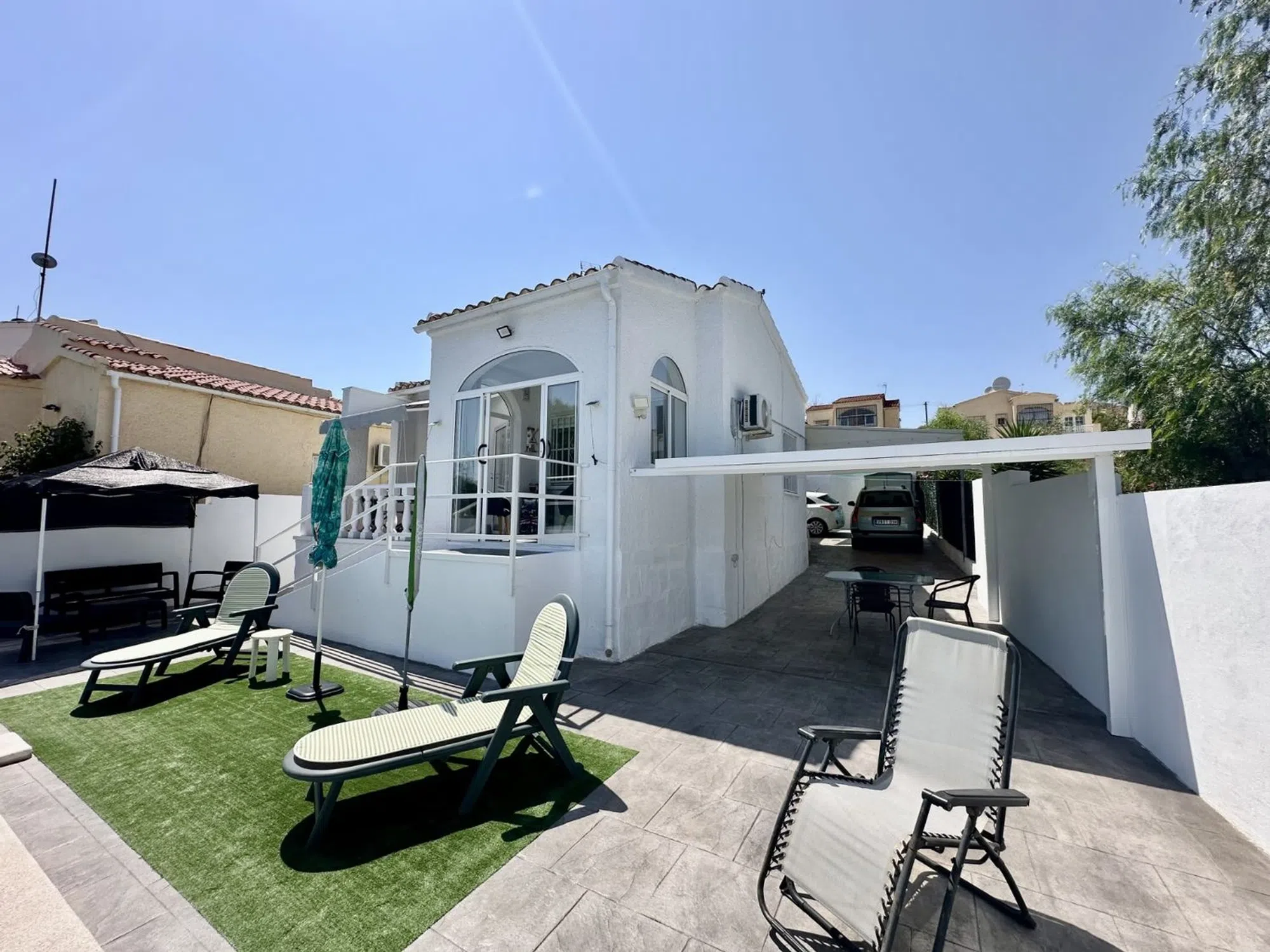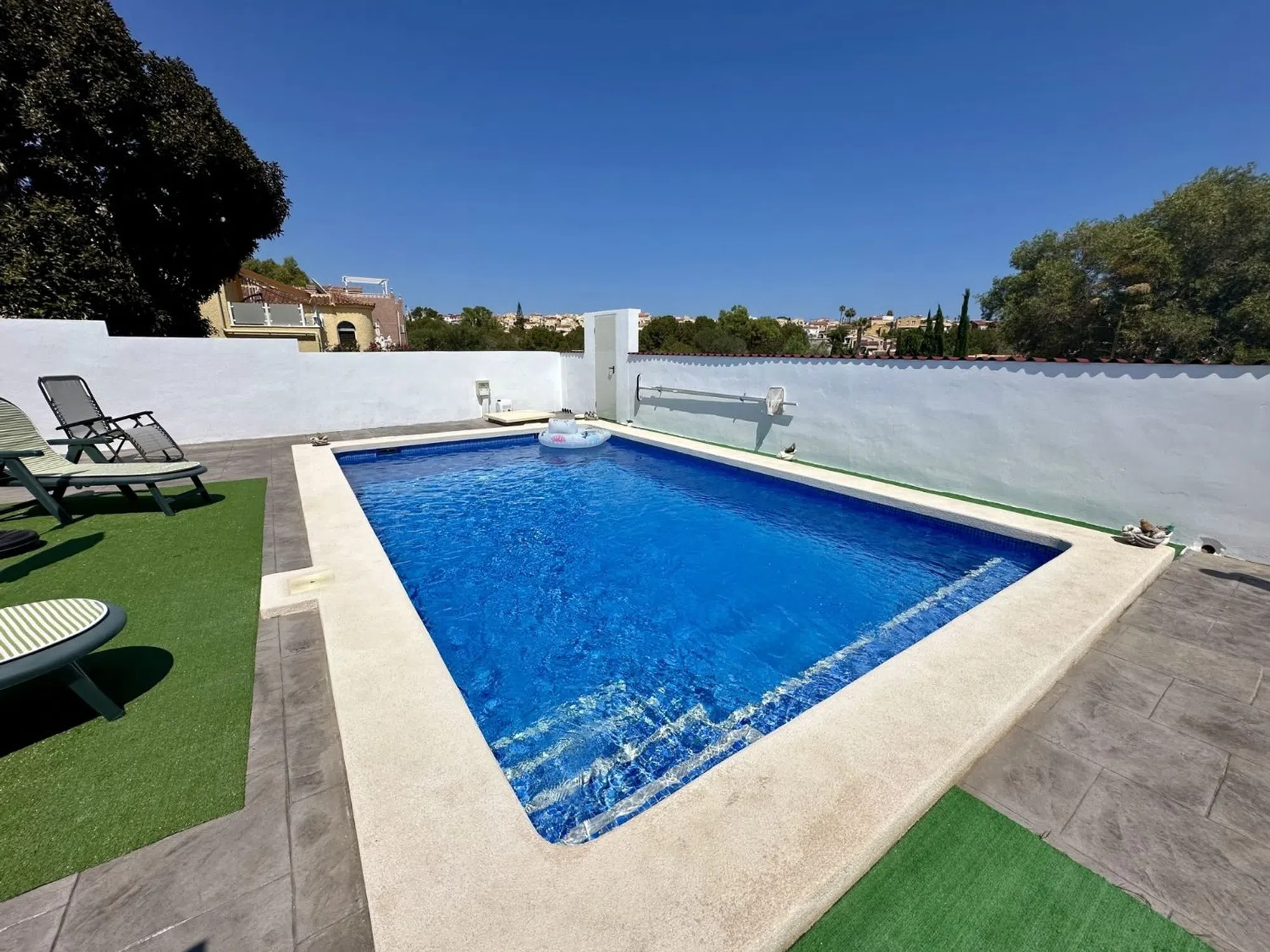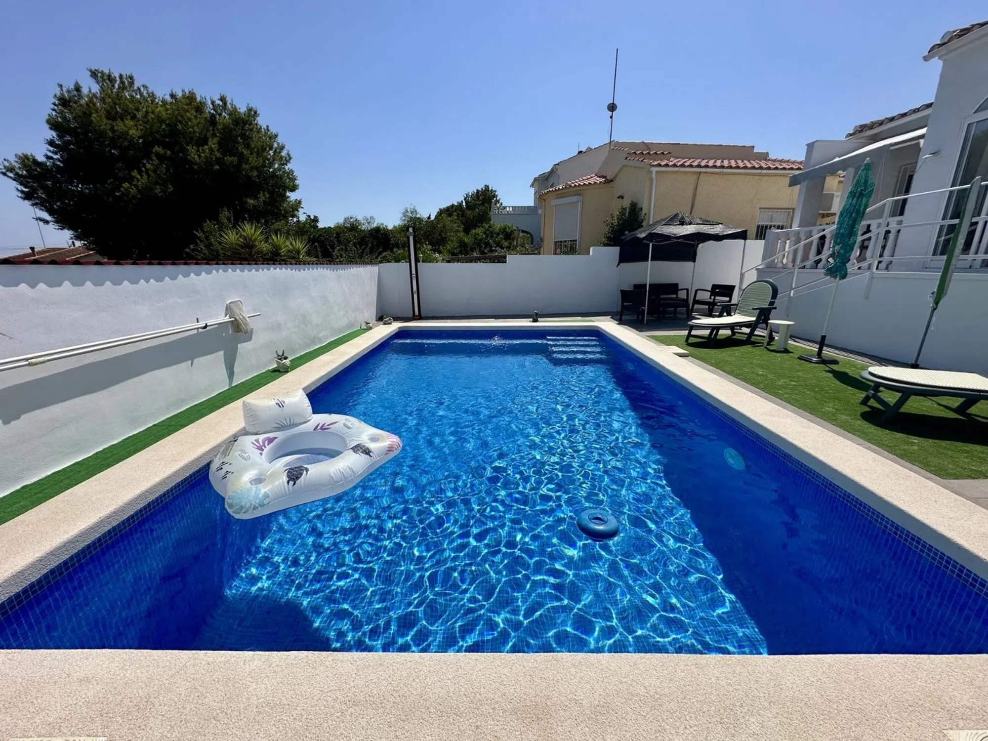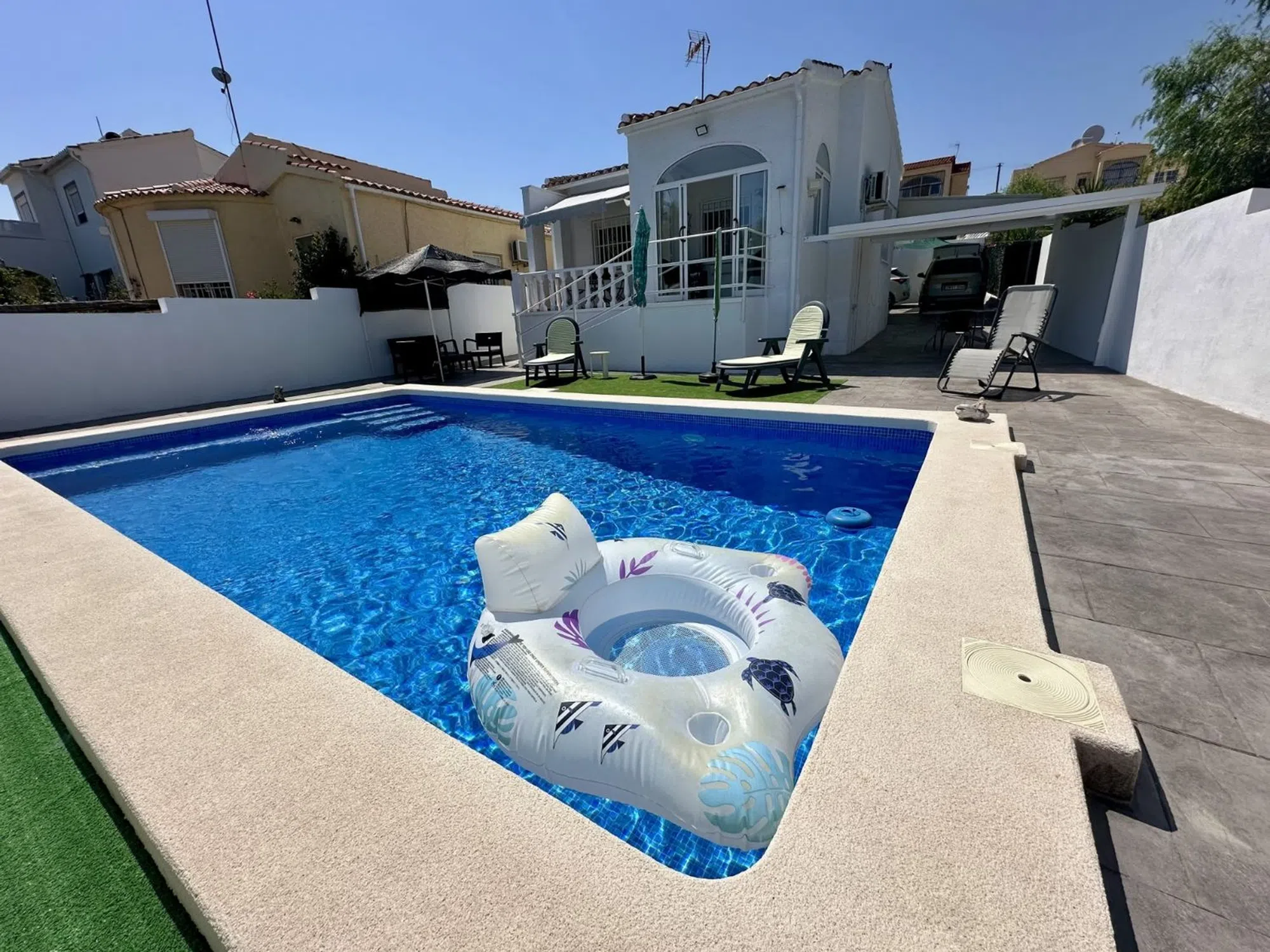 ENCANTADORA CASA INDEPENDIENTE CON PISCINA PRIVADA EN LA MARINA URB Te presentamos esta acogedora propiedad ubicada en la codiciada urbanización La Marina. La vivienda se asienta sobre una generosa parcela de 305 m², con una superficie construida de 60 m², perfectamente distribuida. Dispone de dos habitaciones amplias y un baño completo, ideal tanto para residencia habitual como para vacaciones. La casa ha sido reformada con mucho gusto, utilizando materiales de alta calidad, lo que se aprecia en cada detalle. La distribución interior optimiza el espacio, creando un ambiente cómodo y funcional. El exterior también ha sido totalmente renovado, incluyendo un acabado de hormigón impreso en toda la parcela, que aporta un estilo moderno y de fácil mantenimiento. Además, cuenta con una magnífica piscina privada de 7x4 metros, construida recientemente, ideal para disfrutar del clima mediterráneo durante todo el año. La propiedad se encuentra en una zona tranquila pero cerca de todos los servicios y comodidades que ofrece la urbanización La Marina: supermercados, restaurantes, centros médicos y transporte público. Una excelente oportunidad para quien busca una vivienda lista para entrar a vivir, en una ubicación inmejorable.