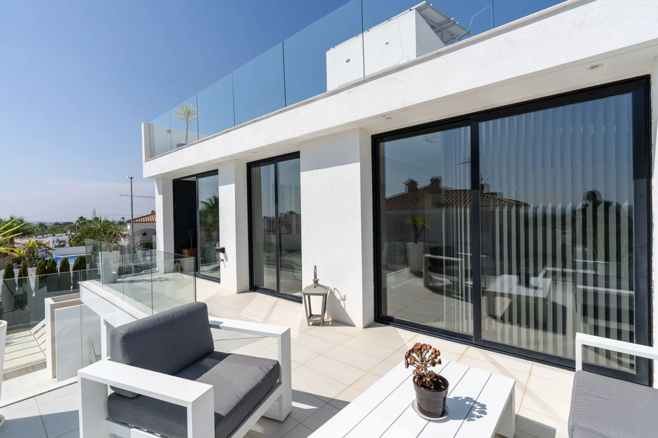 Estamos orgullosos de presentar esta lujosa villa de 7 dormitorios con piscina privada, terraza en la azotea y vistas panorámicas!Descubra la casa de sus sueños en la prestigiosa urbanización de La Marina. Ubicada en una generosa parcela de 500 m², esta excepcional villa cuenta con 7 amplios dormitorios, 4 baños y una serie de características de lujo diseñadas para una vida moderna y confortable.Al entrar, le da la bienvenida un elegante vestíbulo que conduce al corazón de la casa: una luminosa cocina abierta, comedor y sala de estar. El espacio está lleno de luz natural gracias a las puertas del patio, que se abren directamente a la piscina privada y a la acogedora zona de estar exterior, perfecta para el entretenimiento o el relax. En la planta baja también hay un cómodo cuarto de baño. En la segunda planta, la villa cuenta con tres dormitorios, incluido el principal, con baño en suite para mayor privacidad. Los otros dos dormitorios tienen un baño compartido. Todos los dormitorios tienen acceso directo a una amplia terraza, que ofrece mucho espacio para disfrutar del aire fresco y el sol. La escalera interior conduce a una impresionante azotea con vistas panorámicas de los alrededores, un lugar ideal para relajarse, celebrar reuniones o simplemente disfrutar del hermoso paisaje. El sótano, totalmente amueblado, ofrece una gran sala de estar adicional, junto con cuatro dormitorios más, un baño compartido y un lavadero/trastero. Este espacio es perfecto para los huéspedes o la familia extendida, proporcionando comodidad y privacidad. Se ha instalado un sistema inteligente centralizado de aire acondicionado y calefacción por suelo radiante en toda la casa. Esto añade un confort adicional y permite personalizar la temperatura de cada habitación según las necesidades. La zona exterior es un verdadero oasis con una piscina privada, una cocina exterior independiente con mesa de comedor y un montón de espacio para comer al aire libre y de entretenimiento. El paisaje circundante se suma a la sensación de tranquilidad y belleza. Con un garaje privado en el sótano, amplias terrazas y lujosos espacios interiores y exteriores, esta villa combina elegancia y comodidad en una propiedad impresionante. Perfecto para familias o para aquellos que buscan un estilo de vida premium en la Costa Blanca. ¡No se pierda esta oportunidad única! La propiedad está idealmente situada en la Urbanización La Marina, a sólo 30 minutos del aeropuerto de Alicante en coche y a 10 minutos de la playa más cercana. El campo de golf más cercano está a sólo 14 minutos en coche y el popular La Zenia Boulevard está a sólo 28 minutos. La tienda de comestibles más cercana se encuentra a 5 minutos. Póngase en contacto con nosotros hoy mismo para obtener más información y concertar una visita.