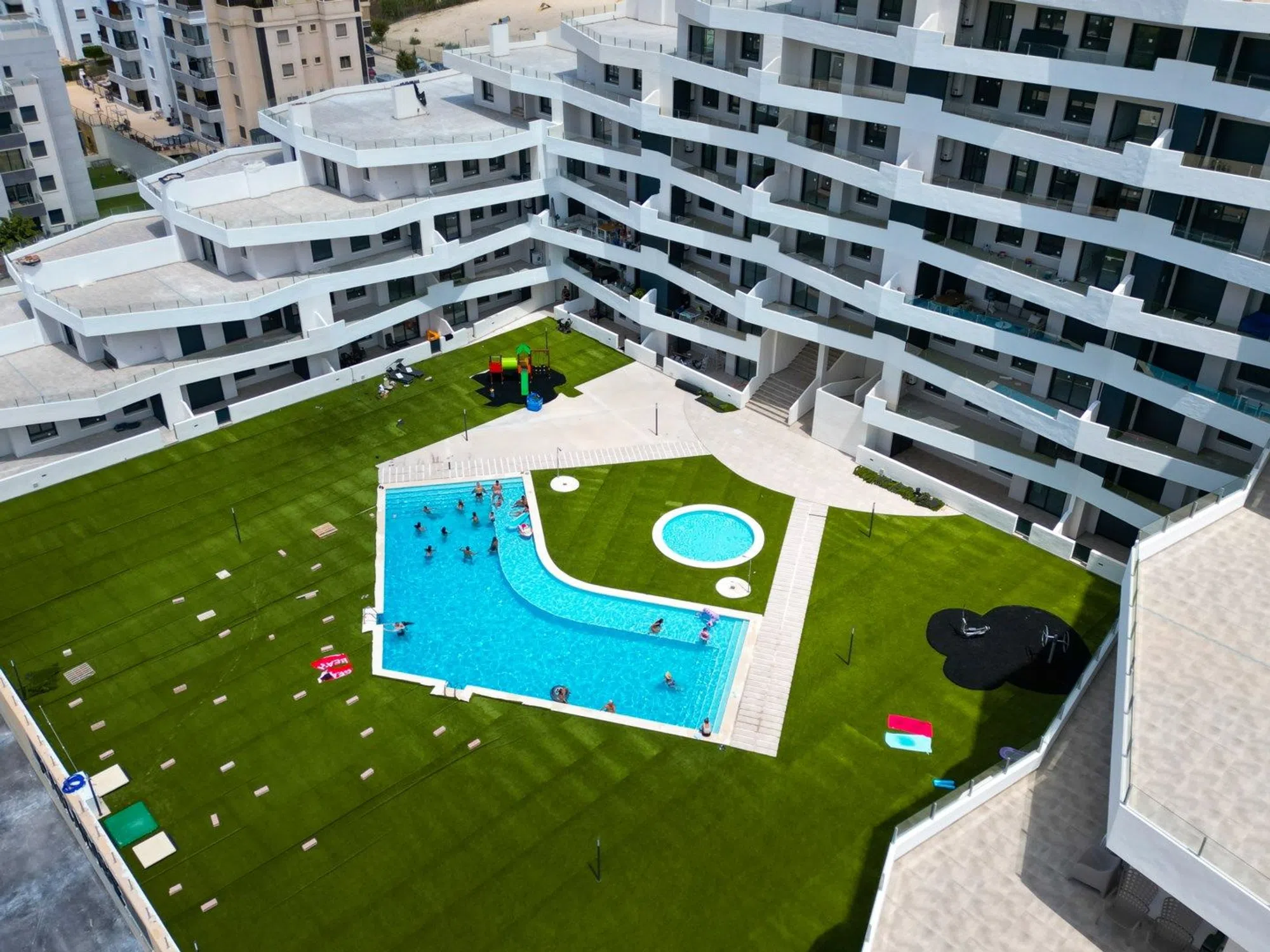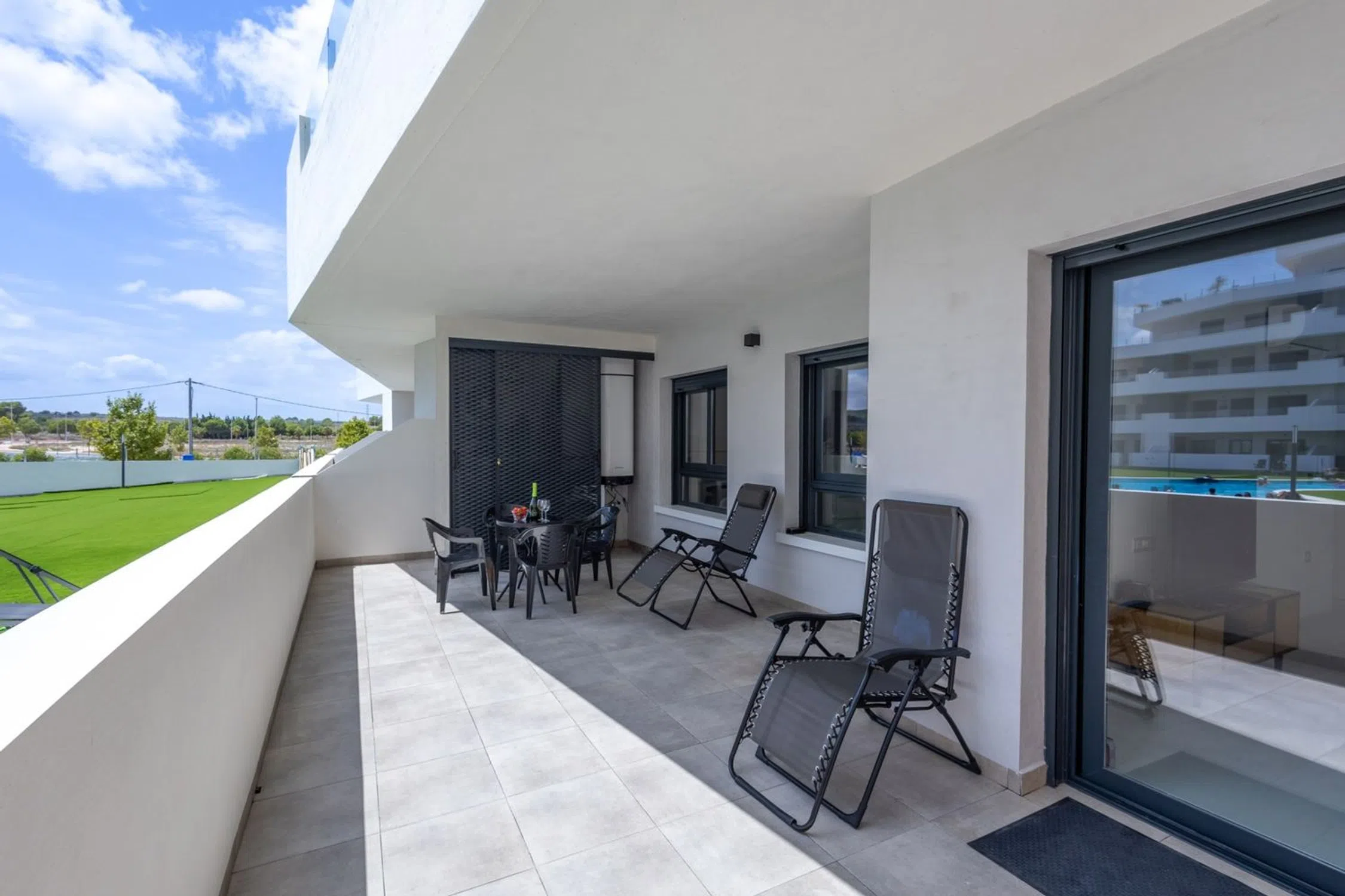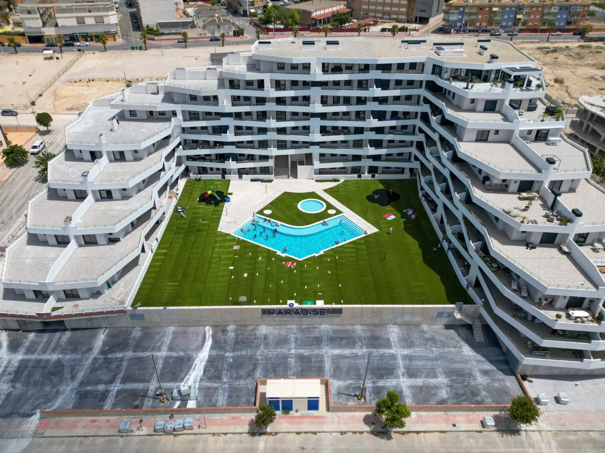 ¡Nos complace presentar este hermoso apartamento en el lujoso complejo residencial Paradise Resort! El apartamento se encuentra en la planta baja y ofrece dos dormitorios con armarios empotrados, dos baños (uno de ellos en suite) y un diseño abierto entre la moderna cocina y el salón. Desde las puertas correderas del salón se accede directamente a la amplia terraza con vistas a la piscina comunitaria, un lugar perfecto para disfrutar de los días soleados y las cálidas tardes. ¡Hay mucho espacio para toda la familia! Esta propiedad es una excelente opción para quienes buscan un hogar funcional con un alto estándar en el corazón de la Costa Blanca. Este lujoso complejo ofrece hermosos jardines comunitarios con una refrescante piscina, piscina infantil y un parque infantil para los más pequeños. Aquí vivirá en una zona tranquila cerca del centro de San Miguel de Salinas, con todos los servicios que pueda necesitar, como restaurantes, bares, cafeterías y supermercados. A poca distancia en coche se encuentran las fantásticas playas de arena de Orihuela Costa, varios campos de golf de alta gama y La Zenia Boulevard, uno de los centros comerciales más grandes de la zona con sus 150 tiendas. También vivirá cerca de los dos aeropuertos de la región, Alicante y Murcia. ¿Quieres ver más de esta increíble casa? ¡Mira el video a continuación! ¡Le invitamos a contactarnos en Notar para una visita!
