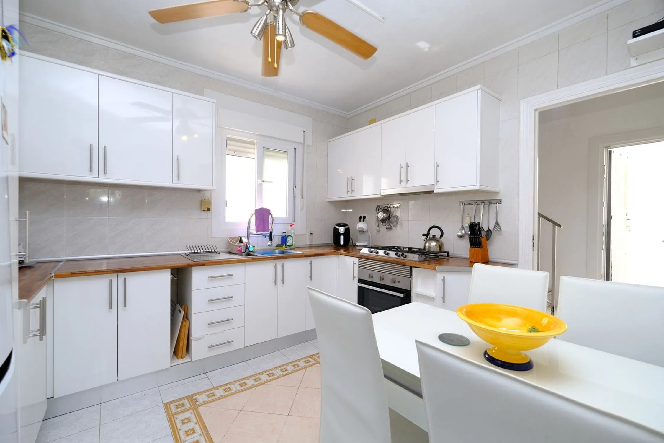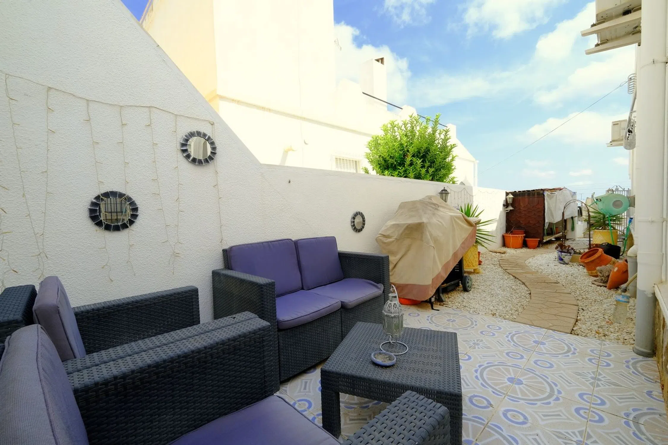 Situado en la encantadora ciudad de San Miguel, este espacioso chalet de 3 dormitorios y 2 baños ofrece una vida cómoda en una comunidad vibrante con una maravillosa mezcla de residentes españoles y europeos. La ciudad ofrece una gran cantidad de servicios, mientras que las hermosas playas y excelentes campos de golf están a sólo un corto trayecto en coche. La villa cuenta con un luminoso invernadero acristalado que se abre a una gran terraza, perfecta para relajarse o entretenerse. En el interior, encontrará un acogedor salón, una cocina independiente equipada con lavadero contiguo, dos amplios dormitorios dobles y un baño familiar. En la parte trasera, hay una gran sala de almacenamiento, ideal para su uso como un estudio o sala de artesanía, junto con dos terrazas adicionales. Arriba, una escalera interior conduce al dormitorio principal, con su propia zona de cocina, baño y una amplia terraza con fantásticas vistas panorámicas de los lagos salados y el mar lejano. Otras características incluyen un trastero en la planta baja, una cochera para aparcar cómodamente, aire acondicionado con bomba de calor, ventiladores de techo y una acogedora estufa de leña. Esta villa se vende parcialmente amueblada. Por qué nos encanta: Esta villa es espaciosa en todas partes y goza de una excelente ubicación, cerca del corazón de San Miguel y sólo un corto trayecto en coche de impresionantes playas y campos de golf. ¡La visita es muy recomendable!