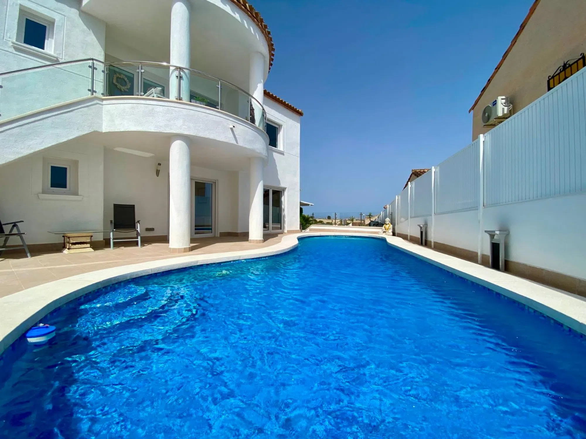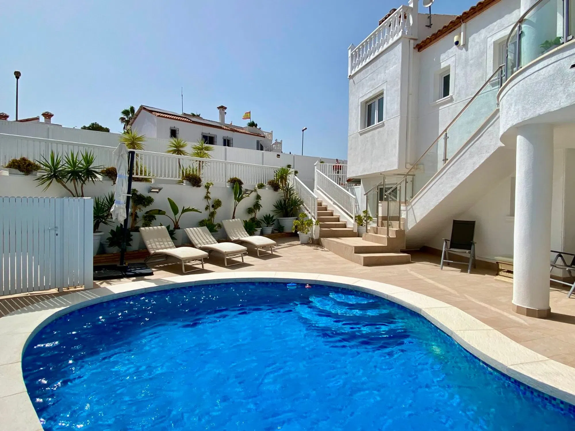 Impresionante villa renovada con vistas a la montaña en San Miguel – Lakeview Mansions Descubra esta hermosa villa renovada de 3 dormitorios y 3 baños, ubicada en la tranquila y privada urbanización de Lakeview Mansions en San Miguel. Con impresionantes vistas a la montaña y orientación sureste, esta casa ofrece la combinación perfecta de comodidad, privacidad y encanto mediterráneo. Situada en una parcela de 450m² con 241m² de espacio habitable, la villa cuenta con un amplio y luminoso salón, una cocina independiente con generoso espacio de almacenamiento y un solárium privado para disfrutar del aire libre y del paisaje panorámico. Características principales: 3 dormitorios, 3 baños + aseo de invitados Totalmente reformado y en excelentes condiciones. Unidades de aire acondicionado equipadas, además de A/C independiente en el dormitorio principal. Piscina privada, jacuzzi y jardín paisajístico. Cocina al aire libre perfecta para el entretenimiento. Estacionamiento privado con portón eléctrico Construido en 2003 con una construcción de calidad y una distribución bien pensada. Situado en una urbanización tranquila y segura con impresionantes vistas. Perfecta como residencia de tiempo completo o casa de vacaciones, esta villa ofrece comodidad y estilo excepcionales en una de las comunidades más deseadas de San Miguel. ¿Qué esperas? ¡Contáctanos hoy para programar tu visita y hacer tuya la casa de tus sueños!