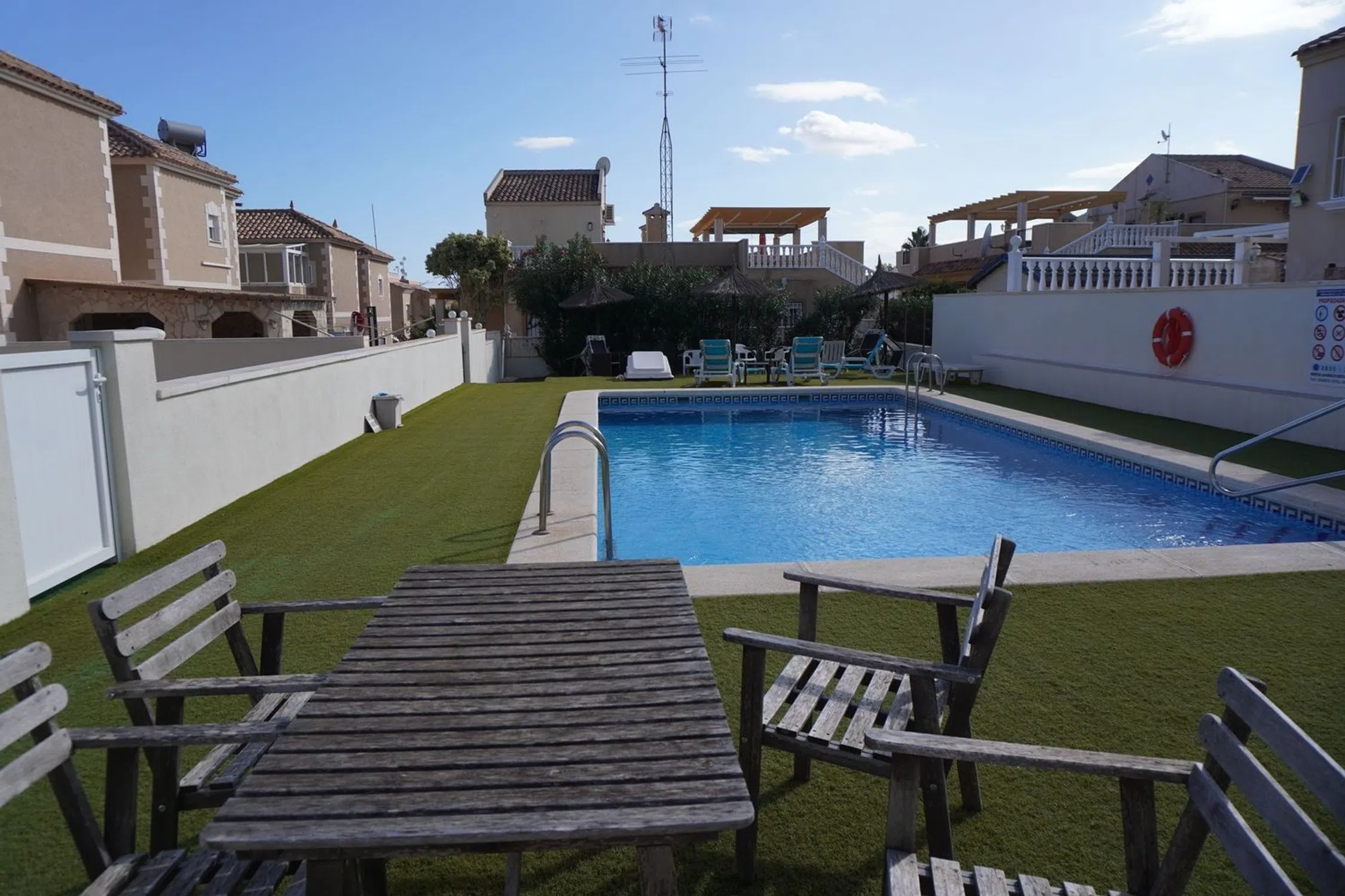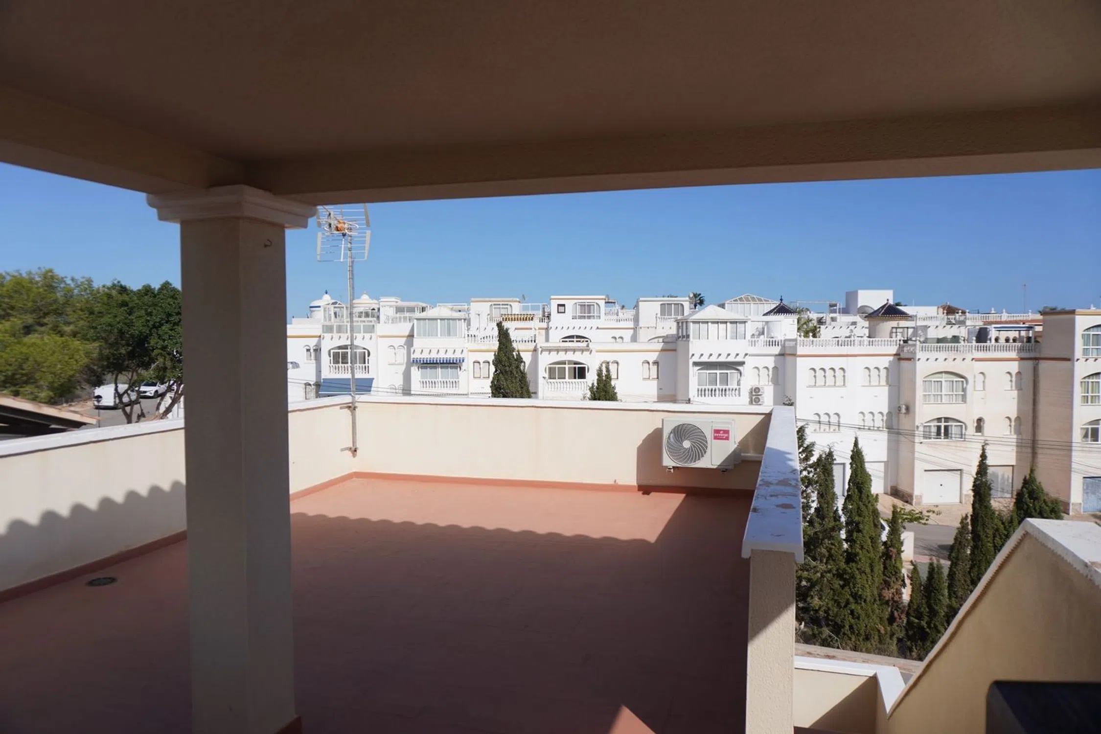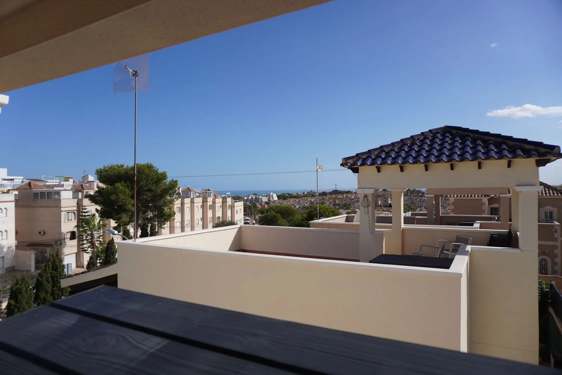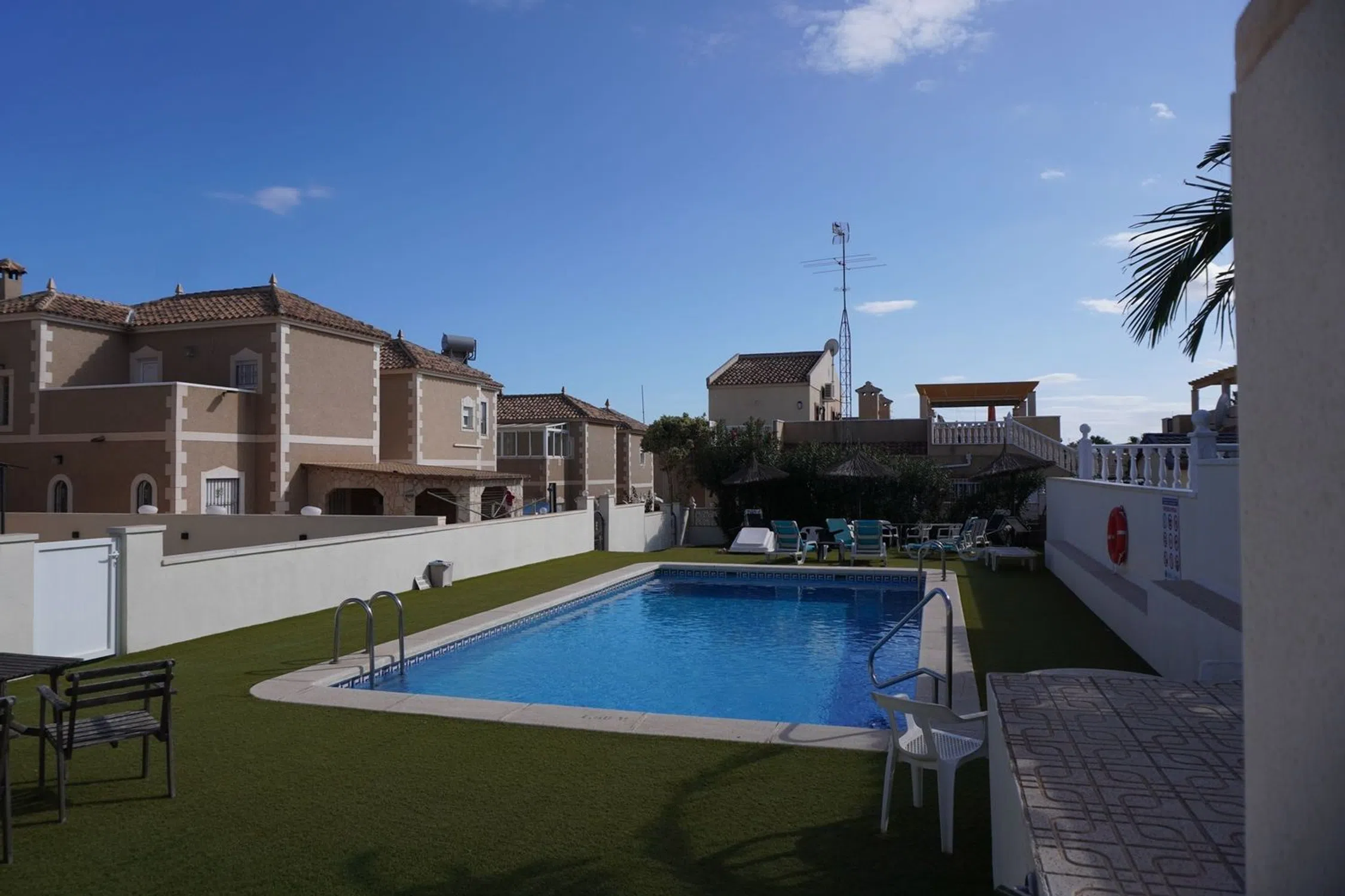 Hermoso chalet con vistas al mar y a las lagunas saladas. En un entorno tranquilo a 5 minutos del colegio privado, cerca del supermercado y servicios. A 7 minutos de la playa de Campoamor. Se acceptan ofertas. Descripción general Espaciosa y cuidada casa unifamiliar, ubicada en una zona tranquila, prestigiosa y rodeada de vegetación. La ubicación ofrece un fácil acceso a áreas recreativas, servicios y tiendas, lo que la convierte en un lugar ideal tanto para vivir como para descansar. Entrada a la casa La entrada a la casa conduce a través de un amplio patio que rodea todo el edificio. La parte frontal de la propiedad es una zona espaciosa, ideal para relajarse, reunirse con amigos y disfrutar de comidas al aire libre. El terreno que rodea la casa es lo suficientemente grande como para albergar sin problemas un coche, bicicletas, plantas en macetas y otros elementos de equipamiento exterior, proporcionando al mismo tiempo un espacio perfecto para el ocio y el descanso. La casa está separada de la calle por un sólido muro de estilo español, que proporciona a los residentes un alto nivel de privacidad y sensación de seguridad. Descripción interior La casa se caracteriza por sus espacios amplios, luminosos y un diseño funcional. Planta baja: •Salón: Espacioso, cómodo, con salida directa a la terraza. Un lugar ideal para relajarse y reunirse con familiares y amigos. •Cocina: Moderna, equipada con muebles de alta calidad y electrodomésticos, con acceso a una despensa anexa. •Dormitorio: Uno de los dormitorios en la planta baja ofrece un espacio confortable para descansar. •Baño: Totalmente equipado, con cabina de ducha. •Galería: Espacio adicional que aporta funcionalidad a la vivienda. Primera planta: •Dormitorios: Dos dormitorios amplios. El dormitorio principal dispone de una gran terraza privada. •Baño: Equipado con bañera y todas las comodidades necesarias. La casa está terminada con atención a los detalles, y las grandes ventanas permiten una excelente entrada de luz natural durante todo el día, creando un ambiente cálido y acogedor. Terrazas y vistas La propiedad cuenta con una gran terraza y un solárium, desde donde se pueden contemplar vistas panorámicas de las lagunas, el mar y la vegetación circundante. Es un lugar perfecto para relajarse, disfrutar de comidas al aire libre y pasar tiempo con la familia y amigos. Exteriores La comunidad ofrece una amplia piscina rodeada de zonas ajardinadas bien cuidadas. También hay tumbonas, zonas de descanso y un área de relax cubierta. Cerca se encuentran instalaciones deportivas y un parque, ideal para familias con niños. Comodidades: •Plaza de aparcamiento privado y espacio de almacenamiento adicional. •Valla de seguridad y acceso a la propiedad mediante una sólida puerta de entrada. •Aire acondicionado en las principales estancias, proporcionando confort térmico durante todo el año. Ubicación La casa se encuentra en una zona tranquila con fácil acceso a tiendas locales, restaurantes, colegios y otros servicios. •Distancia a grandes ciudades: •Alicante: aprox. 50 km (unos 40 minutos en coche) •Murcia: aprox. 40 km (unos 35 minutos en coche) •Distancia a aeropuertos: •Aeropuerto de Alicante-Elche (ALC): aprox. 45 km •Aeropuerto de Murcia (RMU): aprox. 50 km La proximidad a la naturaleza, una buena infraestructura y un acceso rápido a aeropuertos y grandes ciudades hacen de esta propiedad un lugar ideal tanto para trabajadores remotos como para quienes buscan un refugio tranquilo para descansar.