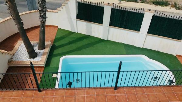 Vendemos una casa independiente con piscina privada de 6x3m, terraza de 80m2, un sótano de 25m2, sauna, recién reformada, en una zona tranquila, cerca a los campos de golf, centros comerciales. Con tres palmeras grandes para enamorarse.