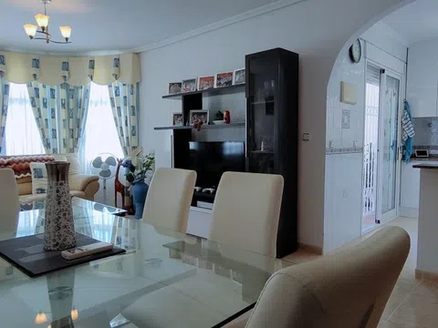 Impresionante Villa Independiente en El Galán, Villamartín – Orihuela Costa. Esta hermosa villa independiente en la codiciada urbanización de El Galán – Villamartín ofrece la combinación perfecta de privacidad, comodidad y encanto mediterráneo. Ubicada en el corazón de la Costa Blanca Sur, esta propiedad es una oportunidad excepcional, ¡con un precio atractivo en medio del aumento de los valores inmobiliarios en la zona! PUNTOS DESTACADOS DE LA PROPIEDAD: • Jardín delantero soleado y zona de relax con vegetación exótica y aparcamiento privado. • Zona de piscina aislada en la parte trasera, que ofrece total privacidad. • 3 amplios dormitorios dobles con armarios empotrados. • 2 baños modernos, cuidadosamente diseñados para mayor comodidad. • Cocina americana recién instalada, ideal para los amantes de la cocina. • Amplias zonas de estar y comedor, perfectas para el entretenimiento o el tiempo en familia. • Dos impresionantes balcones con vistas panorámicas al mar, que capturan la belleza de la costa. • Generosa parcela de 210 m² con aproximadamente 130 m² de superficie habitable. • Se vende tal cual se ve en las fotos, completamente amueblada con aire acondicionado en todas las habitaciones. UBICACIÓN PRIVILEGIADA: • A 3 minutos a pie de bares, restaurantes y un supermercado abierto las 24 horas. • Cerca de la Plaza Villamartín, un animado centro con restaurantes, tiendas y entretenimiento. • 3 campos de golf de renombre a solo 5 a 10 minutos. • A solo 6 km de las playas doradas de Orihuela Costa. • Colegios de primer nivel cercanos, incluyendo dos colegios públicos y un colegio internacional (a menos de 10 minutos). • A 5 km de Zenia Boulevard, el centro comercial más grande de la región. UNA OPORTUNIDAD DE INVERSIÓN IMPERDIBLE: Con el aumento constante de los valores de las propiedades en esta próspera zona, esta villa representa una oportunidad única para adquirir una casa de ensueño a un precio inmejorable. Ya sea que busque una residencia permanente, una escapada de vacaciones o una inversión inteligente, ¡esta casa es una visita obligada!