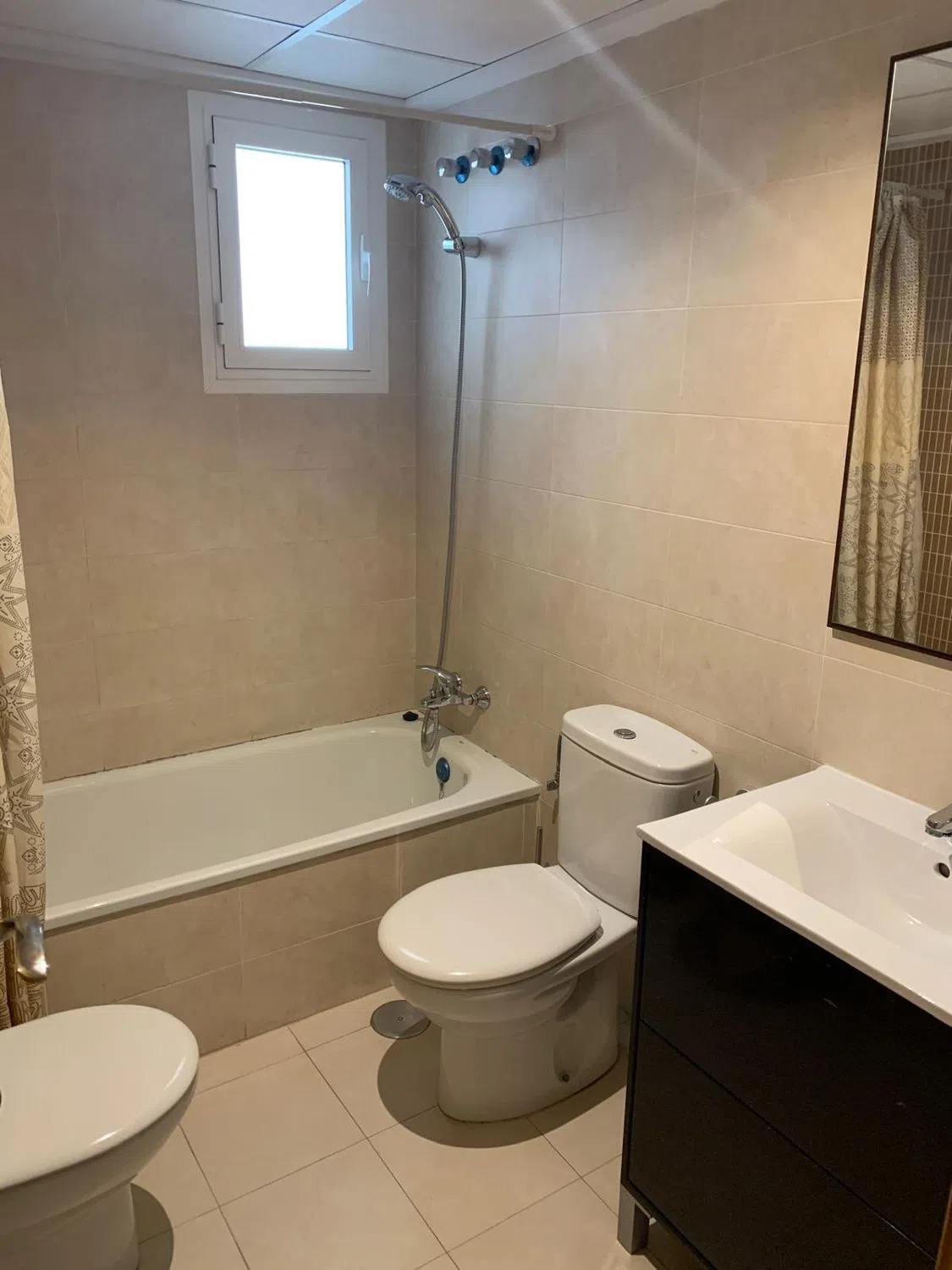 Piso situado en una de las mejores zonas de San Vicente del Raspeig, cerca del centro, de la Universidad y con comercios de todo tipo en los alrededores. La urbanización es muy tranquila y el piso tiene el salón y dos de las habitaciones exteriores con unas vistas espectaculares ya que enfrente sólo hay adosados de dos alturas que no tapan la visibilidad. El piso está listo para entrar a vivir. Cuenta con aire acondicionado por conductos y una potente máquina instalada en el falso techo del aseo. Ambos aseos cuentan con inodoro, lavabo, bidé y bañera. Cuenta con una galería acristalada para la lavadora y un armario de útiles de limpieza, encontrándose ahí también el termo eléctrico. El salón es amplio y cuenta con una puerta corredera de doble hoja que da a la terraza. El piso es bastante fresco al haber corriente si se abre la terraza y la galería que está al otro lado de la casa. Las zonas comunes del edificio cuentan con parque infantil, bancos con sombra y piscina comunitaria. El edificio cuenta con osmosis para el agua, por lo que el agua del grifo es de buena calidad, además de la ducha y lavadoras. Se deja amueblado tal y como se ve en las fotos, con termo y lavadora recién cambiados hace unos meses. ¡Para cualquier duda contacta conmigo!