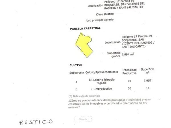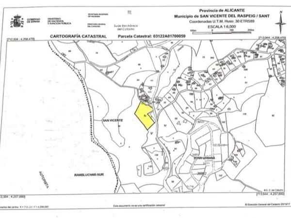 Te presentamos parcela con suelo rústico en San Vicente del Raspeig. Clase Rústico. Uso principal Agrario. Superficie gráfica 7.994m2. Superficie improductiva 37m2. Cerca zona urbana. Ideal para casitas madera o similar. Huertos de cultivo o animales. ¡NO DUDES EN VISITARLO PRONTO!