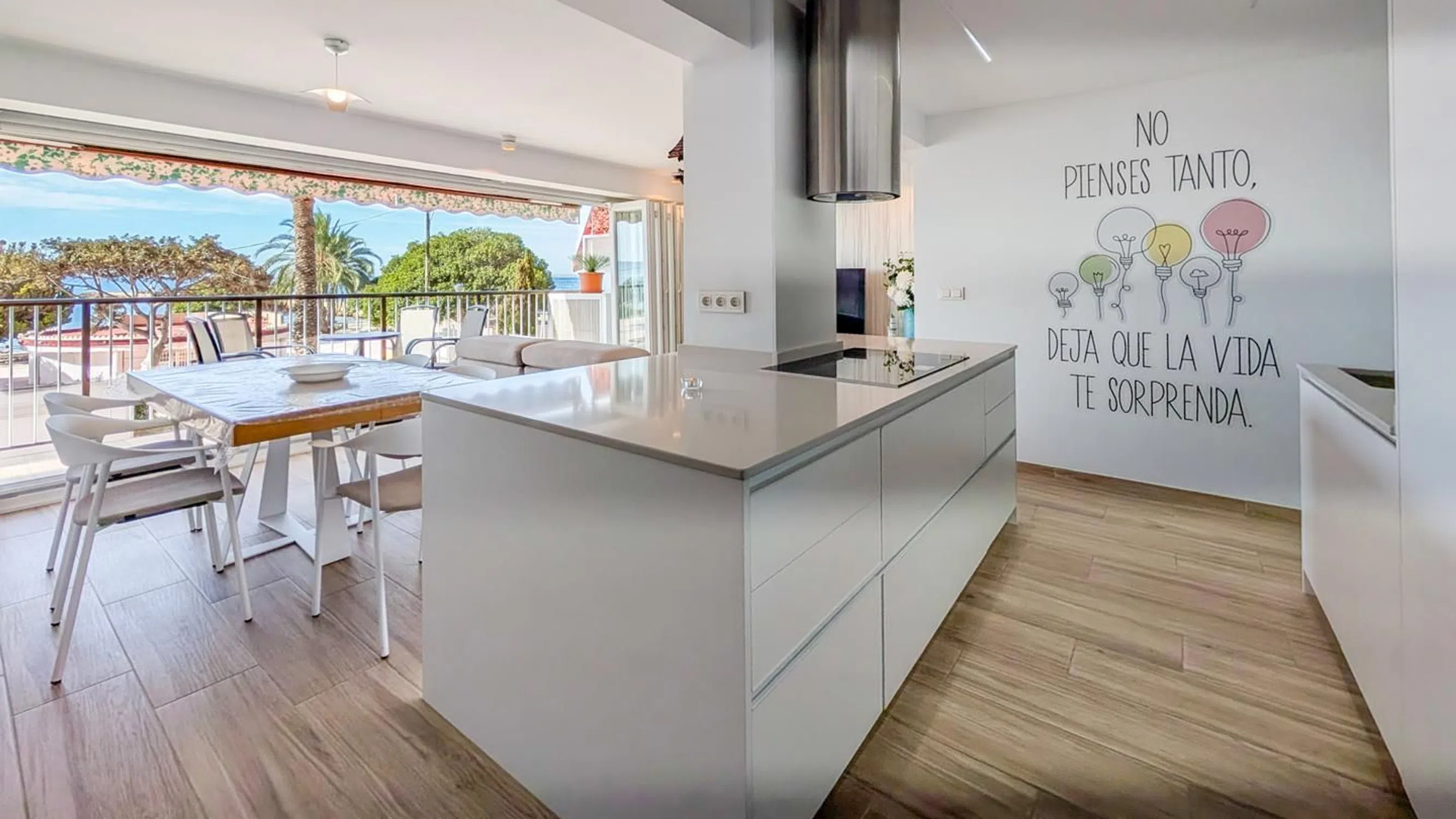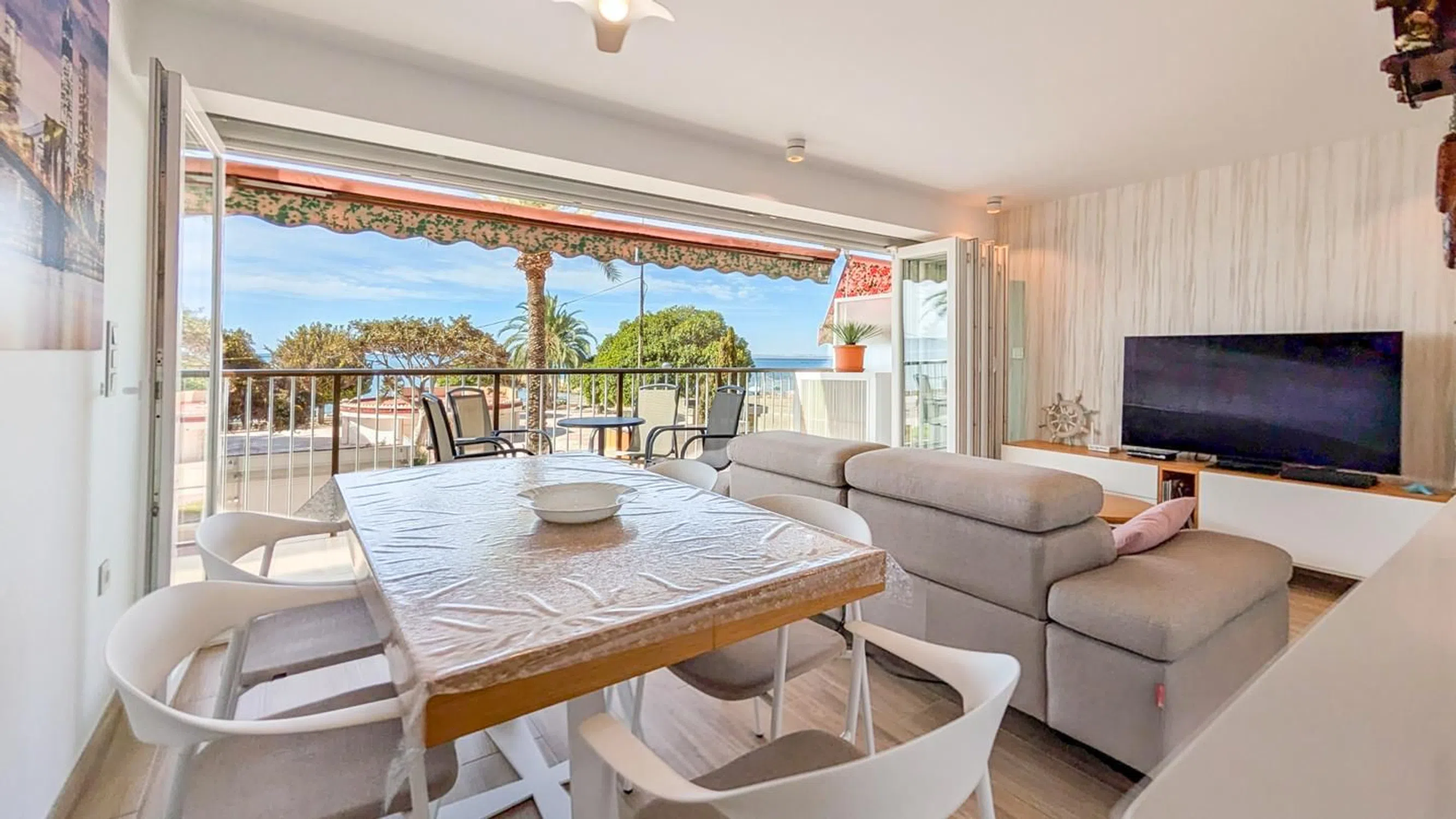 Apartamento con una fantástica terraza con vistas idílicas al Mar y la isla de Tabarca, perfecto para disfrutar del clima del Mediterráneo. Piso totalmente reformado, con magnifica terraza, de 3 habitaciones, 2 baños, a un paso de la playa de Santa Pola. Es una vivienda reformada con estilo y materiales en primeras calidades, cuidando cada detalle que la hacen única y especial. Diseño moderno de concepto abierto que le aporta una mayor sensación de amplitud y confort. Terraza. La mejor estancia de la vivienda, con vistas maravillosas al mar y acceso directo al salón comedor, es perfecta para desconectar y tomar el sol, con un buen libro o una velada con familiares y amigos. Salon - comedor. Amplio, moderno y confortable, con un toque especial con mobiliario de primeras calidades, el área del comedor y salón unido a la perfección en un solo ambiente, con la cocina y la terraza Cocina. Al estilo americano, moderna, espaciosa y práctica, totalmente equipada y amueblada, campana extractora. Todo se fusiona perfectamente con el salón comedor, con galería independiente para la colada. Dormitorios. El dormitorio principal con vistas al mar, baño completo en suite, todos los dormitorios son muy espaciosos con armarios empotrados y espacio para el almacenaje. Baños. La vivienda posee dos bonitos y modernos, totalmente equipados con accesorios de primeras de calidades. Grifería de calidad y plató de ducha. El edificio se encuentra en muy buen estado, posee acceso para minusválidos y ascensor. La zona Está Ubicado en una de las zonas mas exclusivas de Santa Pola, y privilegiada por su cercanía a la playa a menos de 5 min andando, además está perfectamente acondicionado para el ocio y el tiempo libre con un paseo para andar, correr patinar, la zona cuenta con todos los servicios a tu disposición, bares, restaurantes, supermercados, tiendas de paso de moda y complementos. Es importante mencionar que las Playa de Santa Pola es considerada una de las mejores playas de la costa blanca, gracias a la calidad de sus aguas limpias y cristalinas, que mantienen una temperatura ideal promedio durante todo el año, además de una fina arena dorada. Es Magnífica para disfrutar los más de 300 días de sol que te ofrece el mediterráneo.