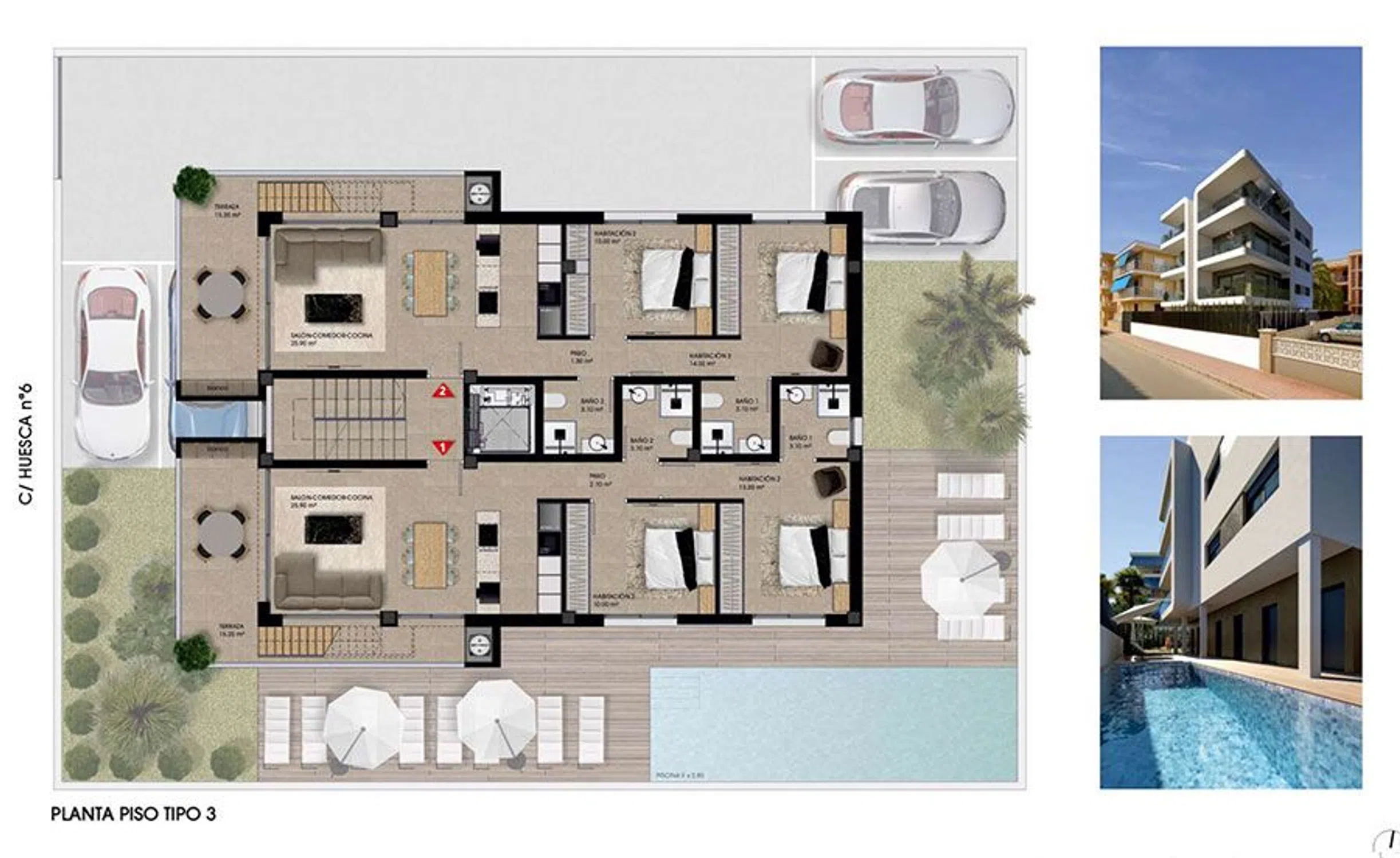 Viviendas con terraza, parking, trastero, piscina y preciosas vistas al mar, a un paso de la playa, en Gran Playa - Santa Pola (Alicante). Áticos y viviendas de lujo de 2 dormitorios, con terraza, piscina comunitaria, parking y trastero en la zona de Gran playa de Santa Pola. El Residencial Huesca es una promoción de obra nueva con preciosas vistas al mar, ubicada a un paso de la playa, en Santa Pola. El edificio se va a construir con excelentes calidades y materiales de lujo, enfocados a optimizar el aislamiento y la sostenibilidad. Se trata, por lo tanto, de un edificio moderno, pensado para disfrutar de una calidad de vida excelente. Todas las viviendas incluyen un trastero de buen tamaño, plaza de parking y materiales de alta calidad en su construcción. También es posible personalizar la vivienda, con la instalación de domótica, armarios de suelo a techo, ampliación de la encimera de la cocina, etc.
