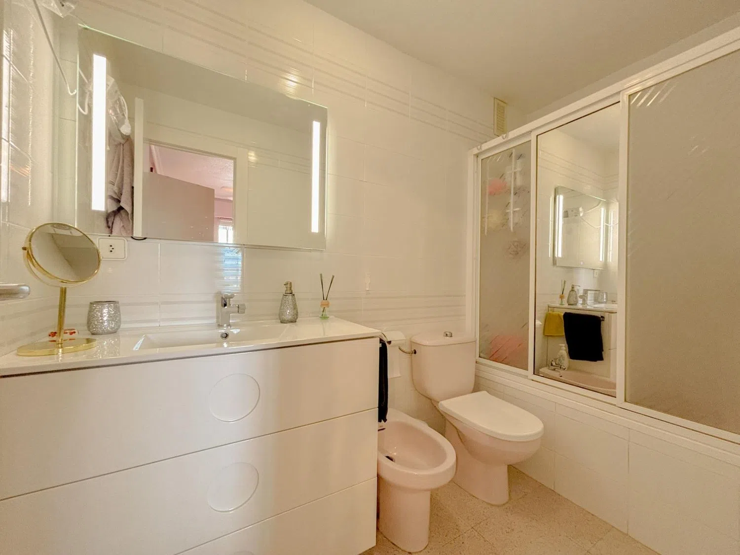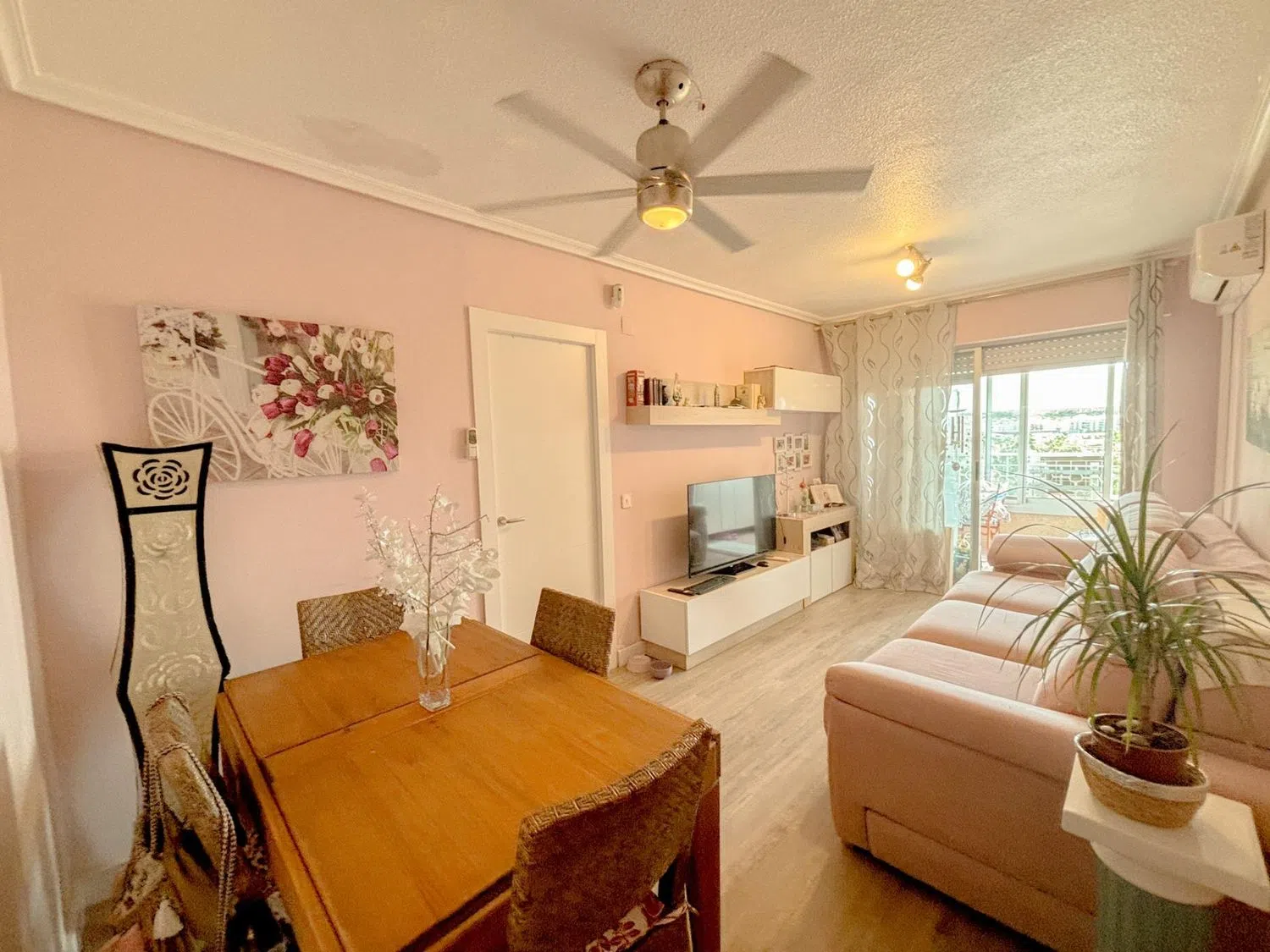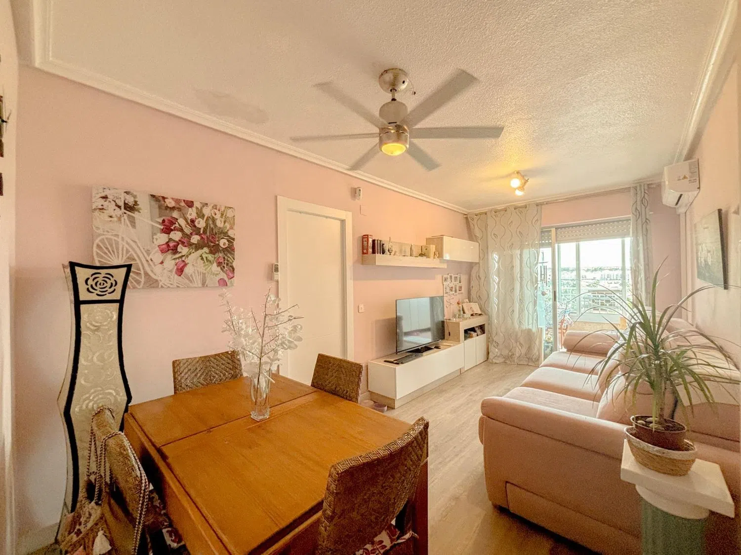 The expansive glazed terrace is an inviting spot to unwind and enjoy natural light all year round. The building is equipped with an elevator, and the apartment includes air conditioning, ensuring your comfort no matter the season. It's sold fully furnished and with appliances, making it move-in ready or perfect for immediate rental.