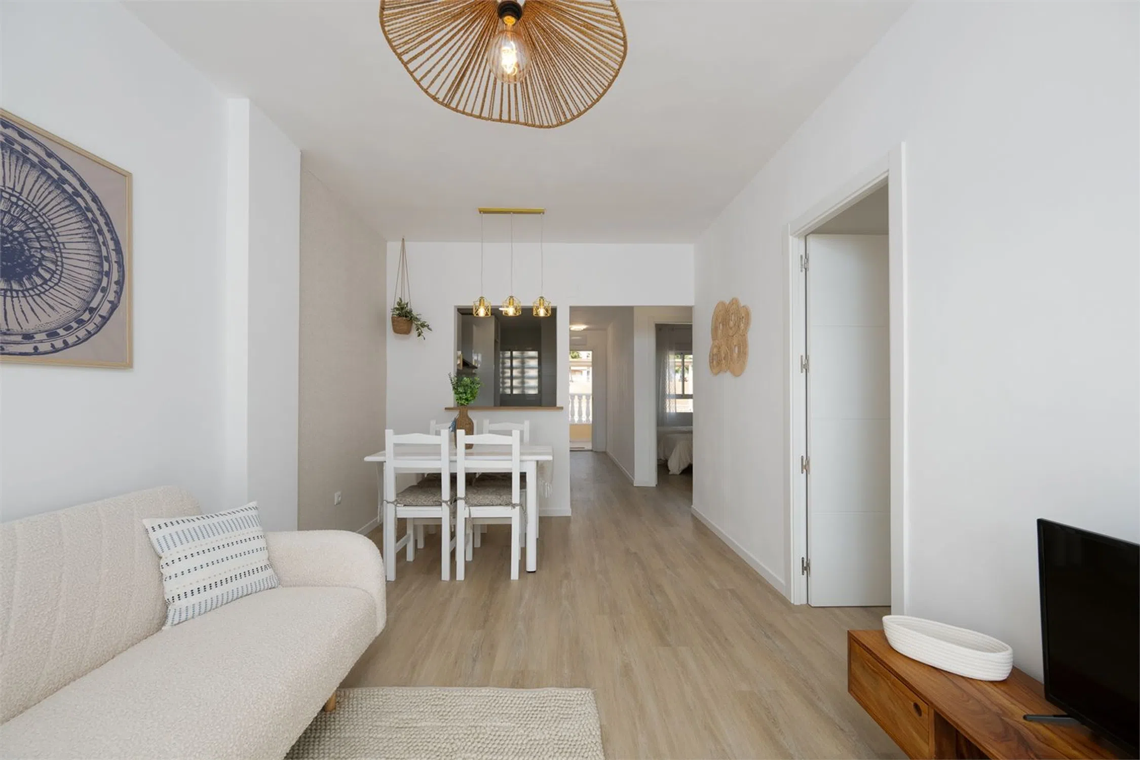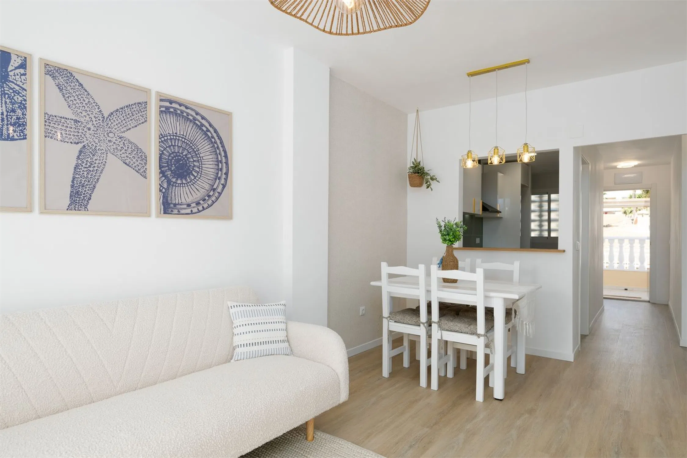 Piso de diseño a pasos de la playa Descubre esta preciosa vivienda totalmente reformada con un diseño de inspiración escandinava, donde la luz natural y la funcionalidad se combinan para crear un ambiente acogedor y moderno. Dispone de dos dormitorios, un baño elegante y contemporáneo, y una amplia zona de estar que se abre a un gran balcón soleado, perfecto para disfrutar del clima mediterráneo durante todo el año. La reforma integral ha cuidado cada detalle: materiales de calidad, líneas limpias, tonos neutros y cálidos, y una distribución optimizada para el confort diario. El estilo nórdico aporta una sensación de calma y armonía en cada rincón de la vivienda. Ubicada en una zona tranquila y a tan solo 450 metros de la Gran playa de Santa Pola, esta propiedad es ideal tanto como residencia habitual como para disfrutar de unas vacaciones junto al mar. PLANTA PRINCIPAL Al entrar, accedes a un recibidor que conecta con la cocina, el salón, el baño y uno de los dormitorios. Cocina La cocina cuenta con muebles altos y bajos, así como una encimera de piedra. Está delimitada por una barra que también es funcional y puede utilizarse como espacio de trabajo adicional o como zona de comedor. Está equipada con fregadero, campana extractora, horno y lavadora. Baño Baño moderno y totalmente alicatado, con ducha, lavabo y WC. Salón Un salón luminoso con espacio para una mesa de comedor y una zona de estar. Grandes puertas acristaladas dan acceso a un encantador y soleado balcón de unos 10 m². Dormitorio 1 Dormitorio acogedor con espacio para dos camas individuales o una cama doble y una cómoda. También hay espacio para un armario. Ventana orientada a la calle. Dormitorio 2 Otro dormitorio acogedor con espacio para dos camas individuales o una cama doble y una cómoda. También dispone de espacio para un armario. Ventana orientada a la urbanización. Balcón Amplio balcón orientado al este, con sol de mañana y espacio para un conjunto de sofás o una mesa grande para varias personas.