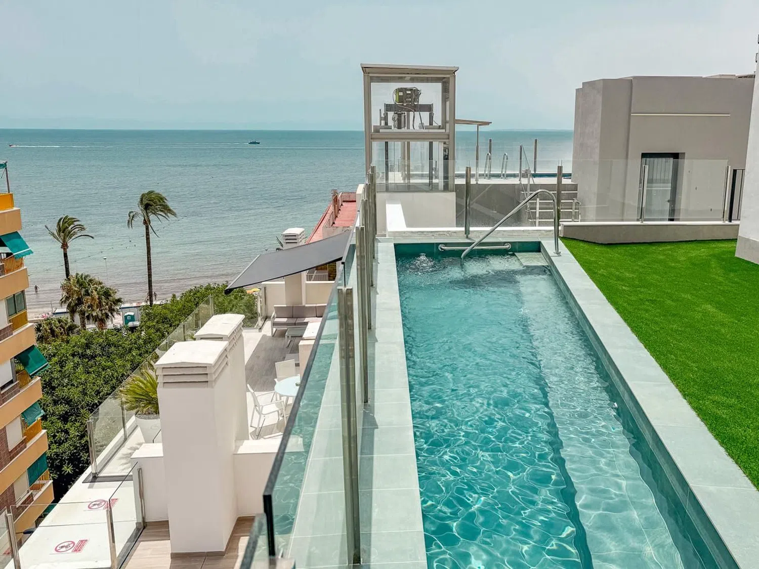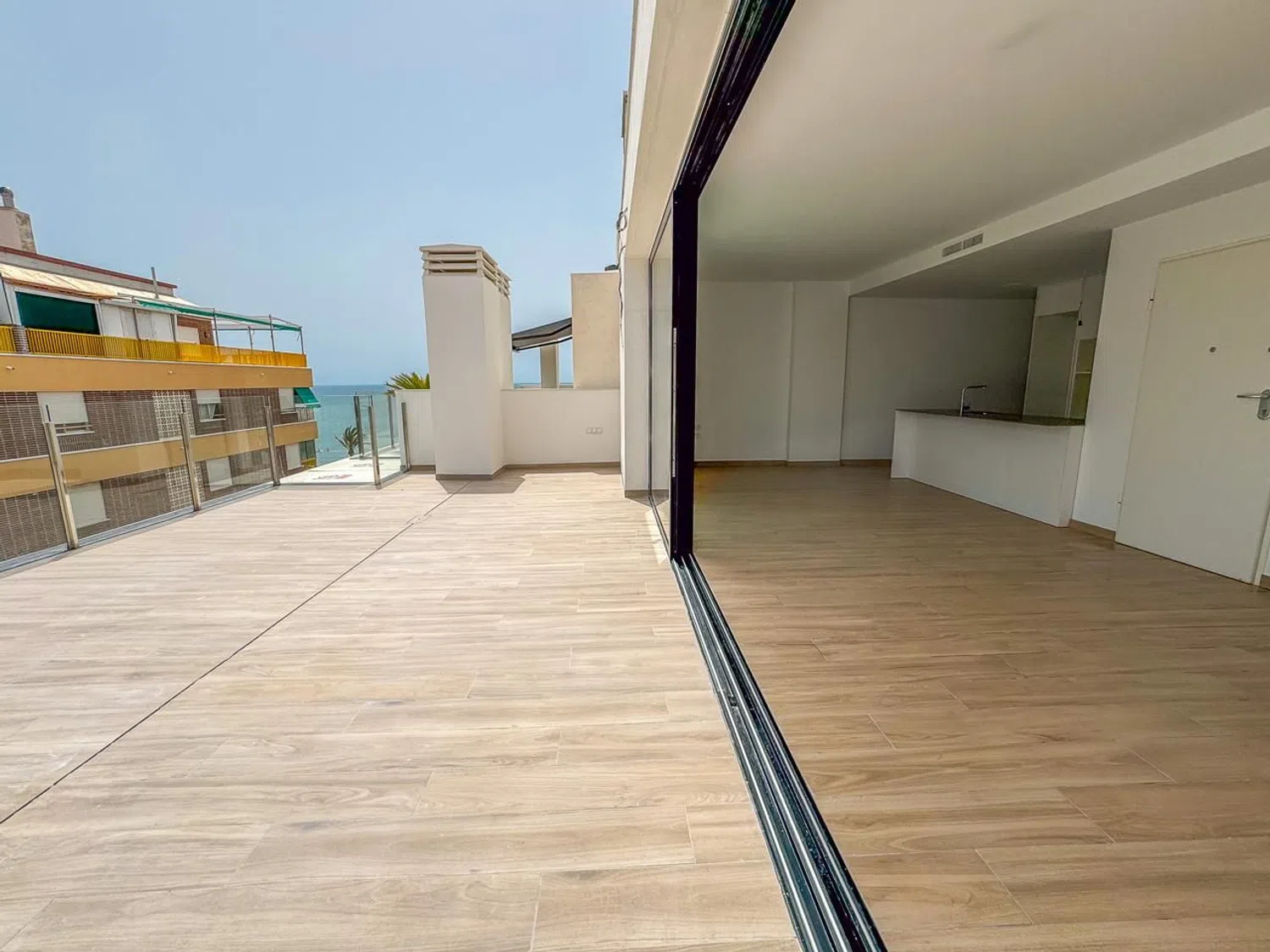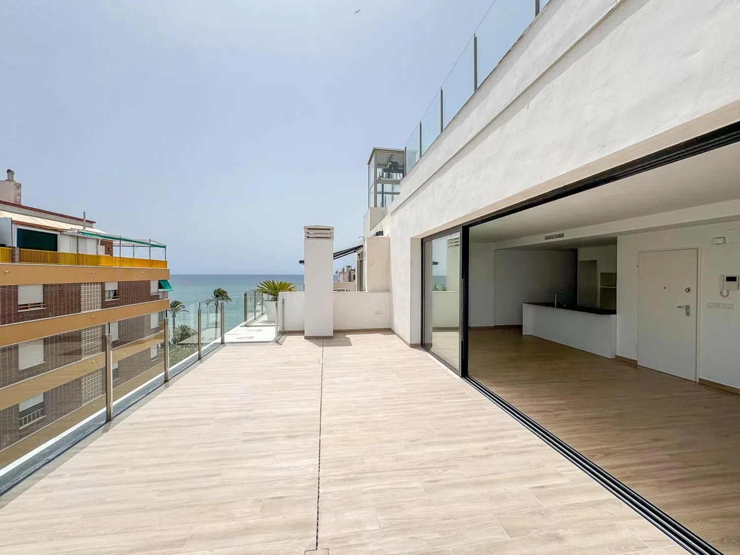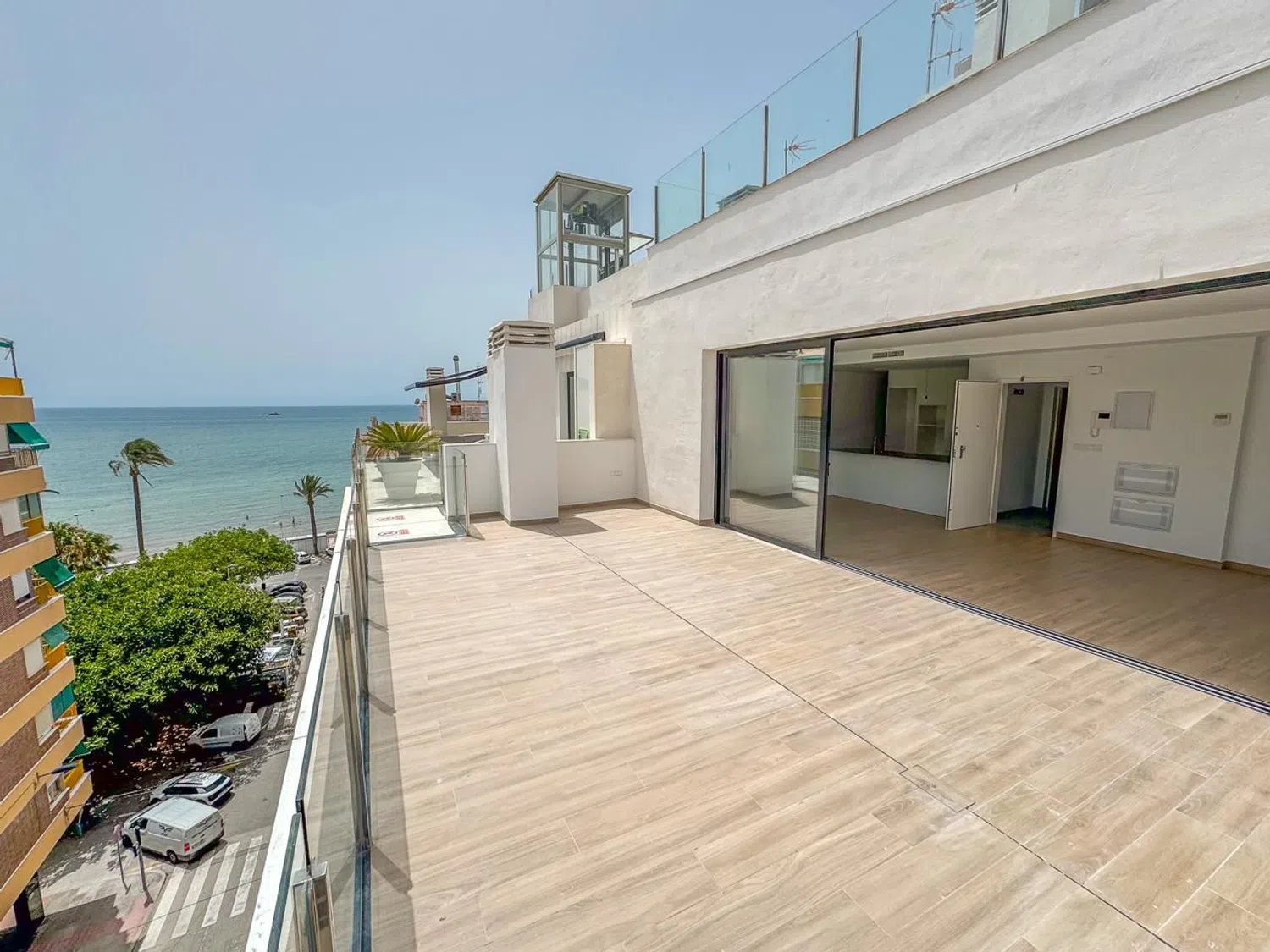 Experience breathtaking coastal living in this magnificent new penthouse with stunning sea views, a spacious terrace, a storage room, and a private parking space, all conveniently located just steps from the beach. This exceptional property features four bedrooms and four bathrooms, making it ideal for families or those who enjoy entertaining guests. Scheduled for completion in the summer of 2024, the penthouse is situated on the fifth floor, highlighting an expansive terrace that provides panoramic views of the Mediterranean Sea, perfect for relaxation and leisure in a unique climate.