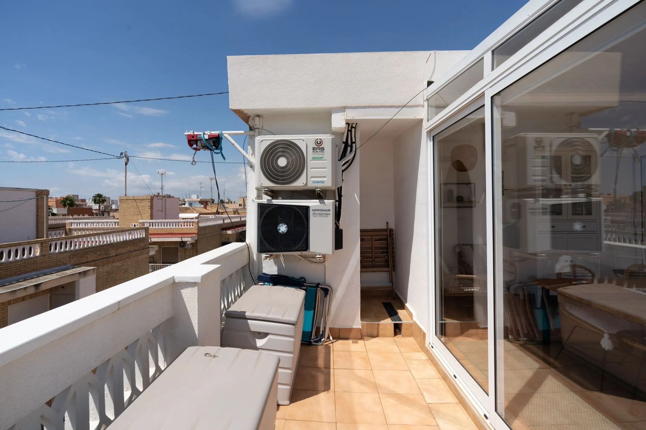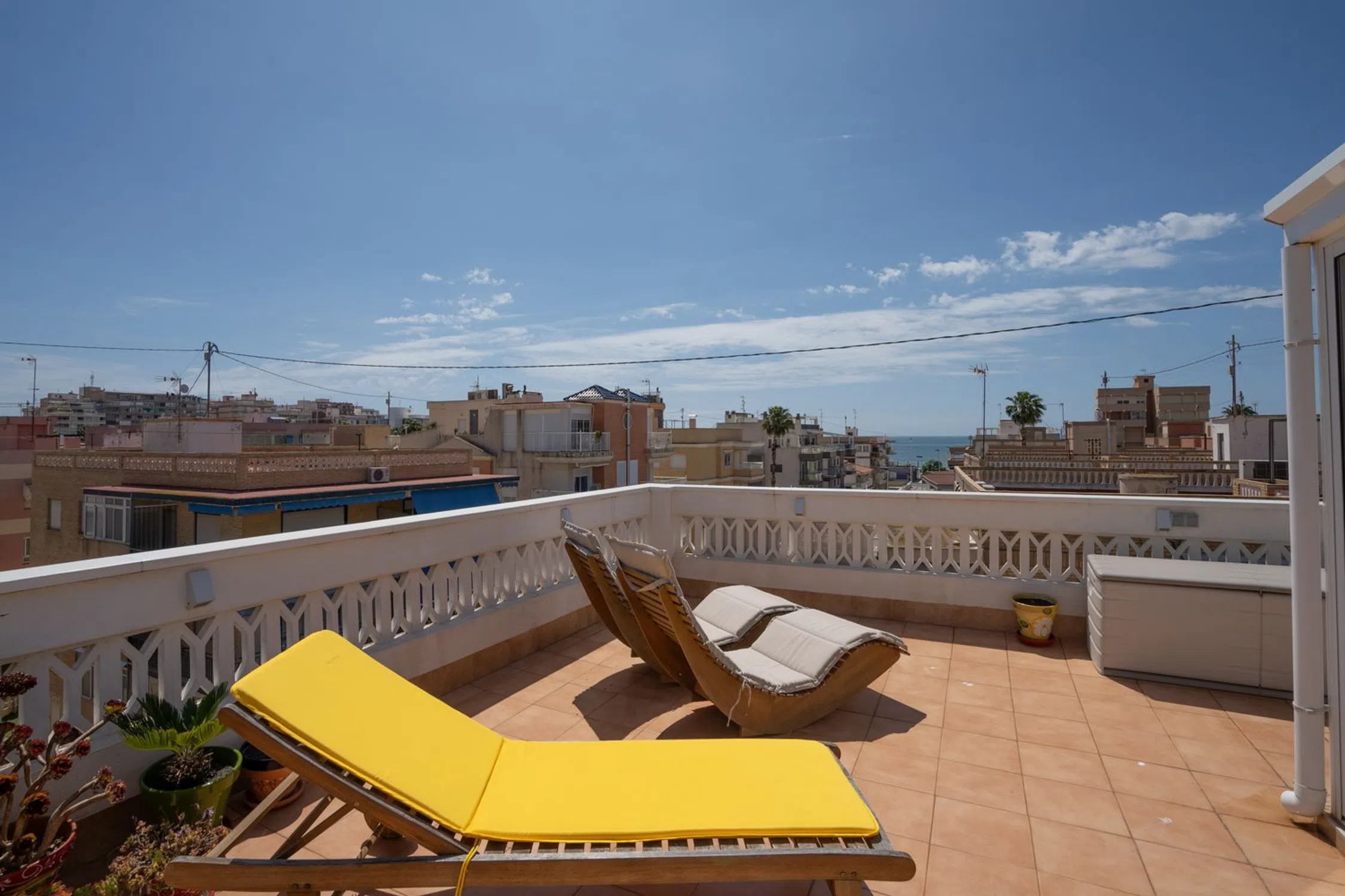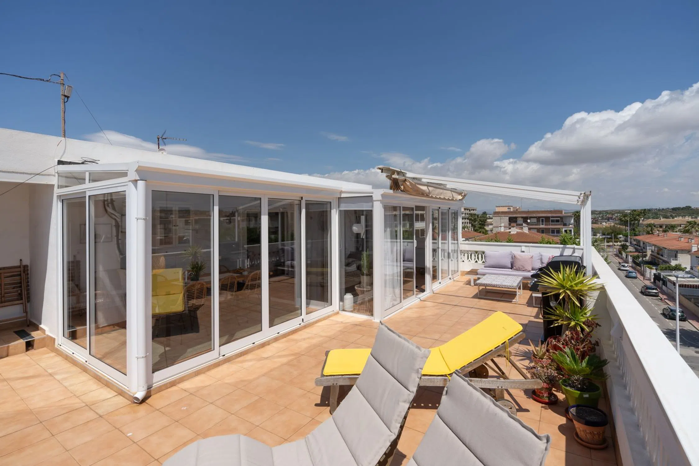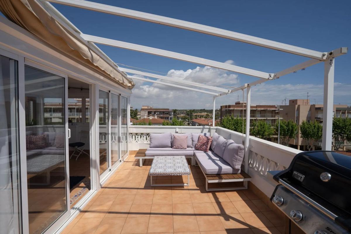 Bienvenido a este ático único y cuidadosamente reformado que ofrece un estilo de vida moderno fresco y cómodo con ese toque especial. La vivienda cuenta con dos dormitorios un baño elegante y una cocina y salón en concepto abierto con acceso directo a la amplia terraza. La mitad de la terraza está acristalada y convertida en un salón adicional y un generoso comedor perfecto para cenas durante todo el año. La parte abierta de la terraza ofrece mucho espacio para una zona de estar barbacoa solárium y además incluye un patio con lavandería trastero y ducha exterior. Se incluyen dos plazas de aparcamiento privadas dentro de la comunidad lo que hace la vida diaria aún más cómoda. La propiedad está situada en la popular zona de Gran Playa en Santa Pola a solo unos minutos a pie de la hermosa y amplia playa de arena con sus aguas tranquilas y familiares. Cerca encontrarás acogedores cafés restaurantes supermercados y todos los servicios necesarios. El animado paseo marítimo ofrece mercadillos heladerías y actividades para toda la familia. Al mismo tiempo vivirás en una zona tranquila con auténtico encanto español ideal tanto como residencia permanente como para vacaciones. Esta es una oportunidad única de adquirir un ático que combina confort moderno con una fantástica vida al aire libre bajo el sol a solo unos pasos del Mediterráneo. Bienvenido a casa.