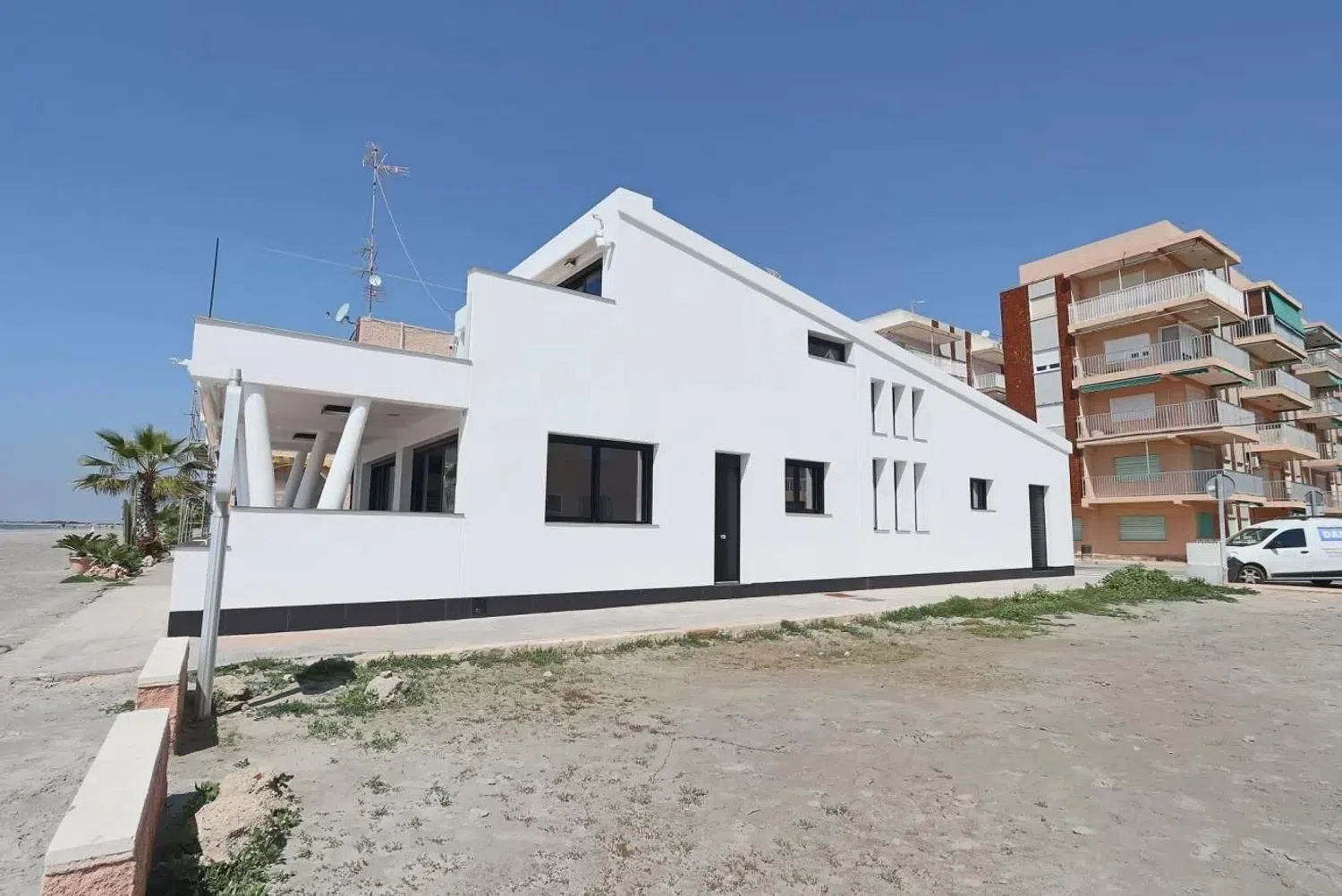 This stunning villa, situated on the frontline of a picturesque beach, is an architectural gem built to the highest standards. The property offers a unique seaside experience, where the sandy shore feels like your own private garden. The ground floor boasts a generous 30-square-meter terrace, perfect for enjoying al fresco dining and relaxing moments with the soothing sounds of the sea in the background.