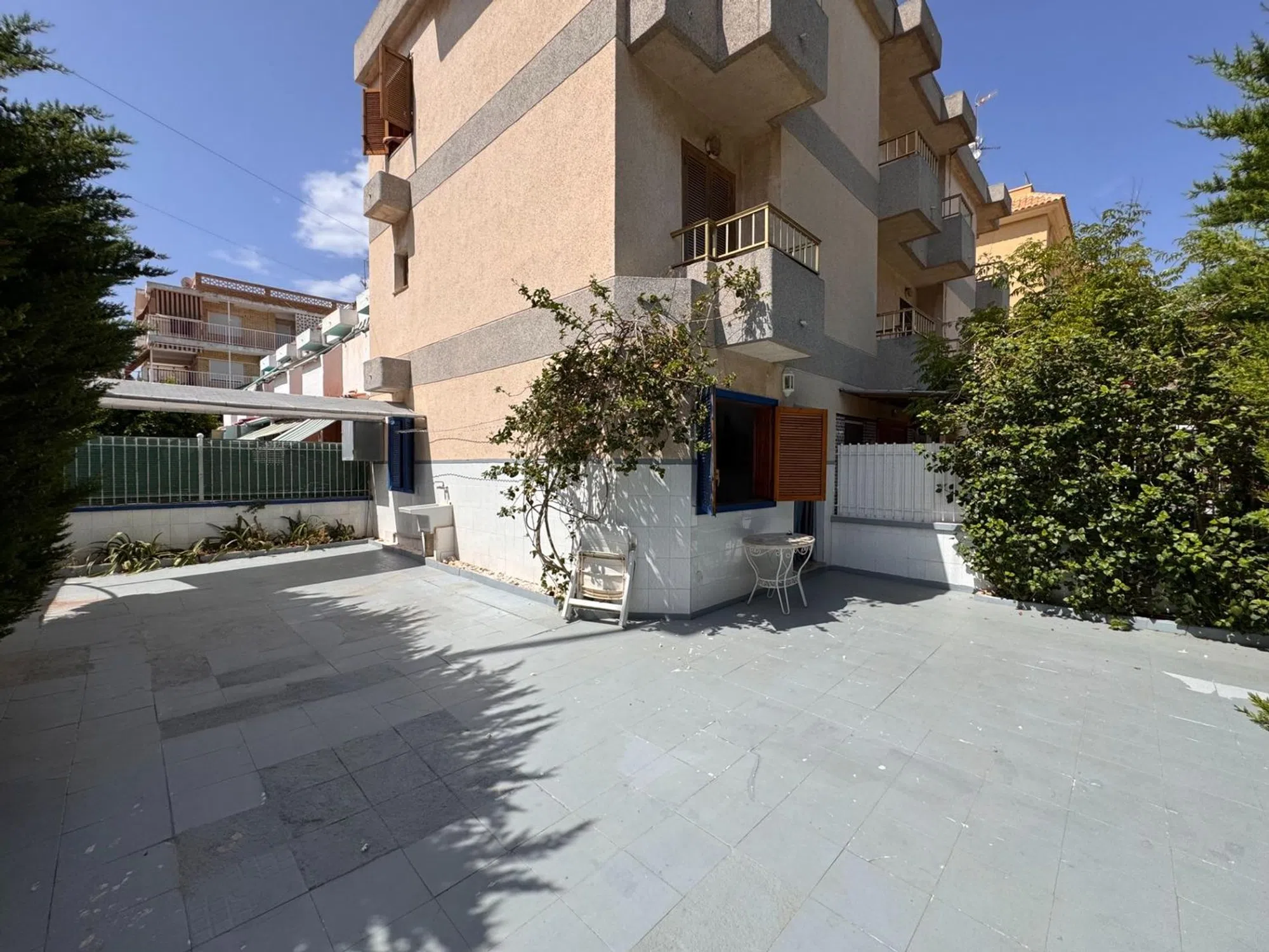 En la planta baja, te recibe una extensa terraza con más de 25 metros cuadrados donde podrás disfrutar del maravilloso clima de Santa Pola, con ducha exterior y electricidad. Accediendo a la vivienda encontramos un luminoso salón-comedor, la cocina independiente completamente equipada y un aseo.