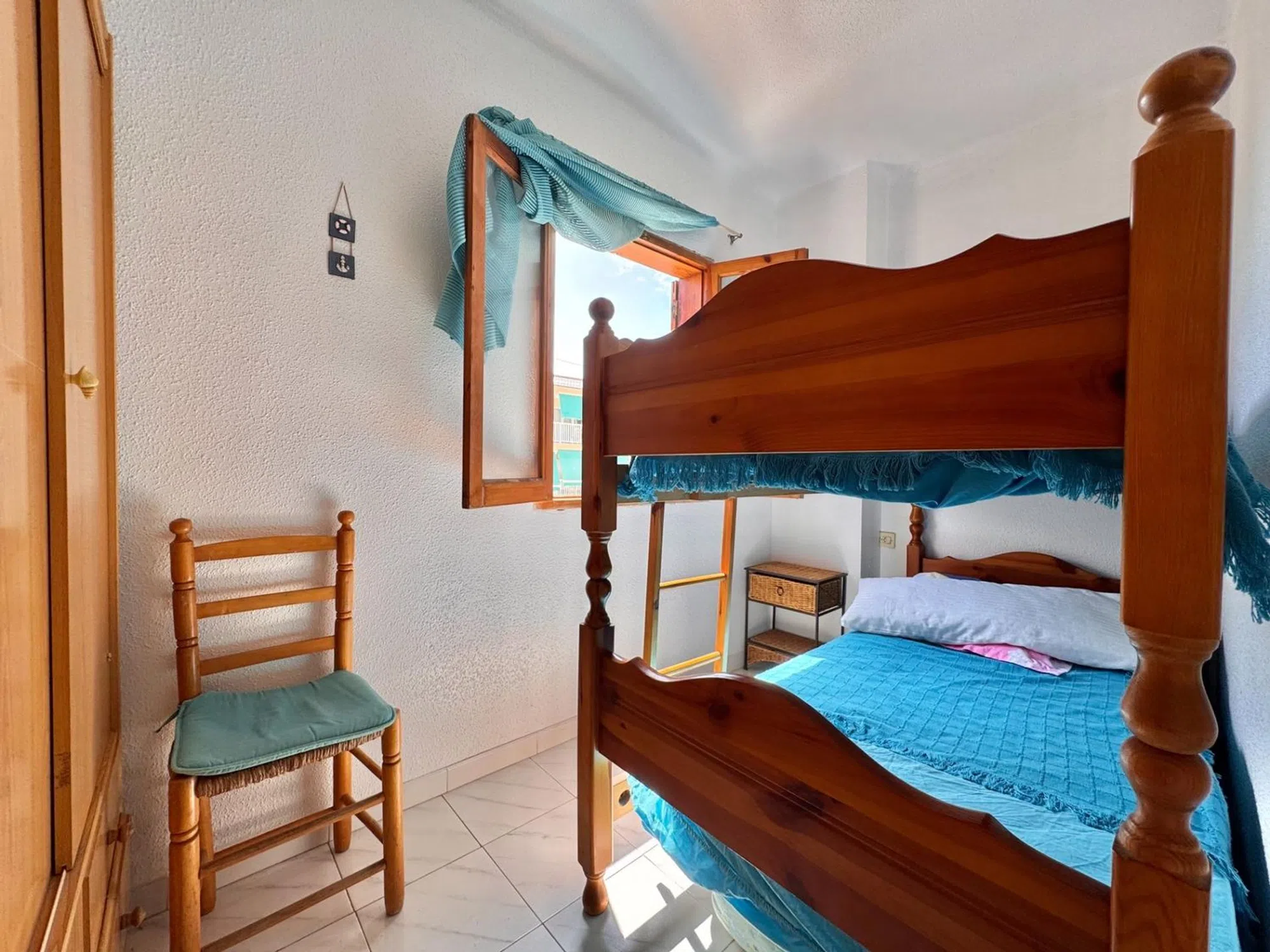 La primera planta presenta la zona de noche, con un baño completo con bañera y un dormitorio doble con armario empotrado y balcón. En la segunda planta un dormitorio amplio con armario empotrado con acceso a un balcón y un dormitorio simple.