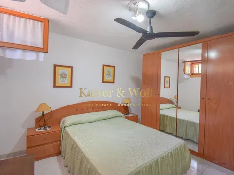 Bungalow con garaje en Avenida Salamanca, Santa Pola Descubre este encantador bungalow en Santa Pola, una joya que combina comodidad y estilo en una ubicación privilegiada. Con una superficie de 125 m², esta propiedad cuenta con 3 amplios dormitorios y 1 baño completo y 1 aseo, perfectos para disfrutar de la vida en familia o recibir a tus amigos. Construido en 1995, este bungalow ha sido cuidadosamente mantenido y ofrece todas las comodidades que necesitas. Disfruta de un garaje con puerta automática, ideal para proteger tu vehículo y facilitar el acceso. El aire acondicionado te garantiza un ambiente fresco durante los cálidos días de verano. La cocina, completamente amueblada y equipada, es un espacio perfecto para dar rienda suelta a tu creatividad culinaria. Además, cuenta con armarios empotrados que optimizan el espacio y ofrecen un almacenamiento práctico. Relájate en el patio interior o en la terraza, donde podrás disfrutar de momentos de tranquilidad al aire libre. Este bungalow está amueblado, listo para que te mudes y empieces a disfrutar de tu nuevo hogar desde el primer día. No pierdas la oportunidad de vivir en esta maravillosa propiedad en Santa Pola, donde la calidad de vida y la cercanía a la playa se unen para ofrecerte un estilo de vida inigualable. ¡Contáctanos para más información y ven a visitarlo!