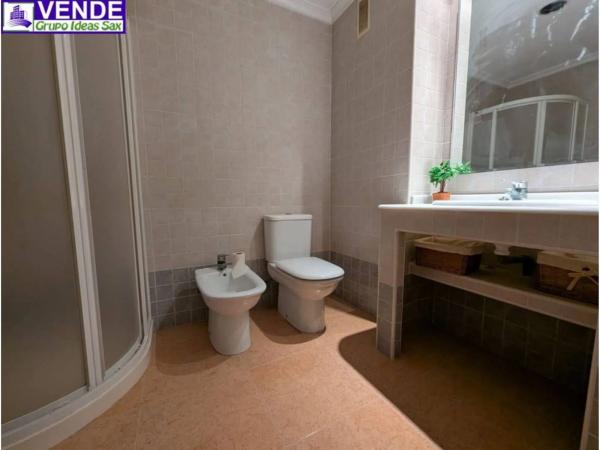 EDIFICIO DE TRES PLANTAS EN VENTA EN SAX ZONA CENTRO. La propiedad se compone de un local comercial planta baja totalmente diáfano con una superficie útil de 101 m2 con aseo. En la primera encontramos un piso reformado con una superficie construida de 130 m2 compuesto con de un amplio salón con salida a un balcón, cocina con despensa, galería, patio, 3 habitaciones, un aseo y un baño y en la segunda planta tenemos otro piso igual que el de la primera planta pero necesita algo de reforma. Además, el edificio tiene una terraza comunitario con trasteros.