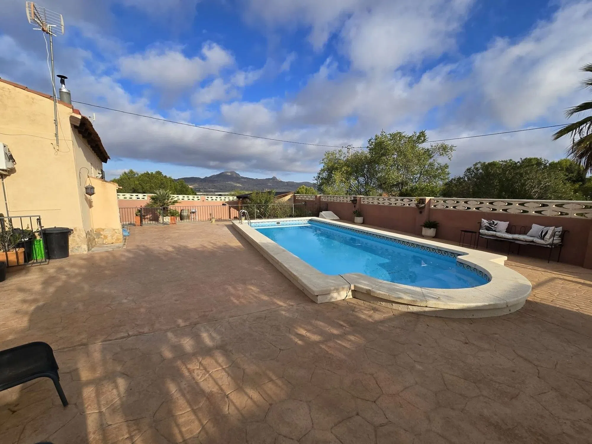 **En venta – Preciosa casa de 3 dormitorios con anexo independiente para invitados de 2 dormitorios e impresionantes vistas a las montañas de Sax** Nos complace presentar esta encantadora propiedad con impresionantes vistas al valle y al histórico castillo de Sax. Esta singular casa ofrece una casa principal de 3 dormitorios y un anexo independiente para invitados de 2 dormitorios, ideal para familias numerosas, invitados o niños mayores que buscan su propio espacio. Al entrar, le da la bienvenida una espaciosa cochera a la derecha. A la izquierda, la casa principal cuenta con una amplia terraza cubierta, ideal para relajarse y disfrutar de las vistas. En el interior, encontrará un salón, comedor y cocina de planta abierta con un ambiente luminoso y espacioso, complementado por una estufa de pellets que proporciona un calor acogedor en los meses más fríos. La casa principal consta de tres dormitorios y un baño familiar. El dormitorio principal y el baño se encuentran a la izquierda del salón, mientras que dos dormitorios adicionales se encuentran a la derecha. También hay una práctica alcoba que se ha convertido ingeniosamente en un pequeño despacho. En el exterior, la propiedad cuenta con una piscina de 10x4 metros, situada entre la casa principal y el alojamiento de invitados. El anexo para invitados ofrece su propio y espacioso salón y cocina de planta abierta, además de dos dormitorios dobles, cada uno con baño en suite. También hay una encantadora zona de estar al aire libre, ideal para que los huéspedes disfruten de la tranquilidad del entorno. El terreno se extiende aún más e incluye una combinación de árboles maduros, útiles dependencias de almacenamiento y un gallinero, ofreciendo un toque de vida rural con la comodidad de las comodidades modernas. Nota: Se accede a la propiedad a través de un camino de grava de 500 metros, que podría no ser apto para vehículos grandes como autocaravanas. Esta es una fantástica oportunidad para adquirir una casa versátil y bien mantenida en una hermosa ubicación, a un corto trayecto en coche de los servicios de Sax. Ideal para familias, alquileres vacacionales o quienes buscan un estilo de vida tranquilo con espacio para recibir visitas.