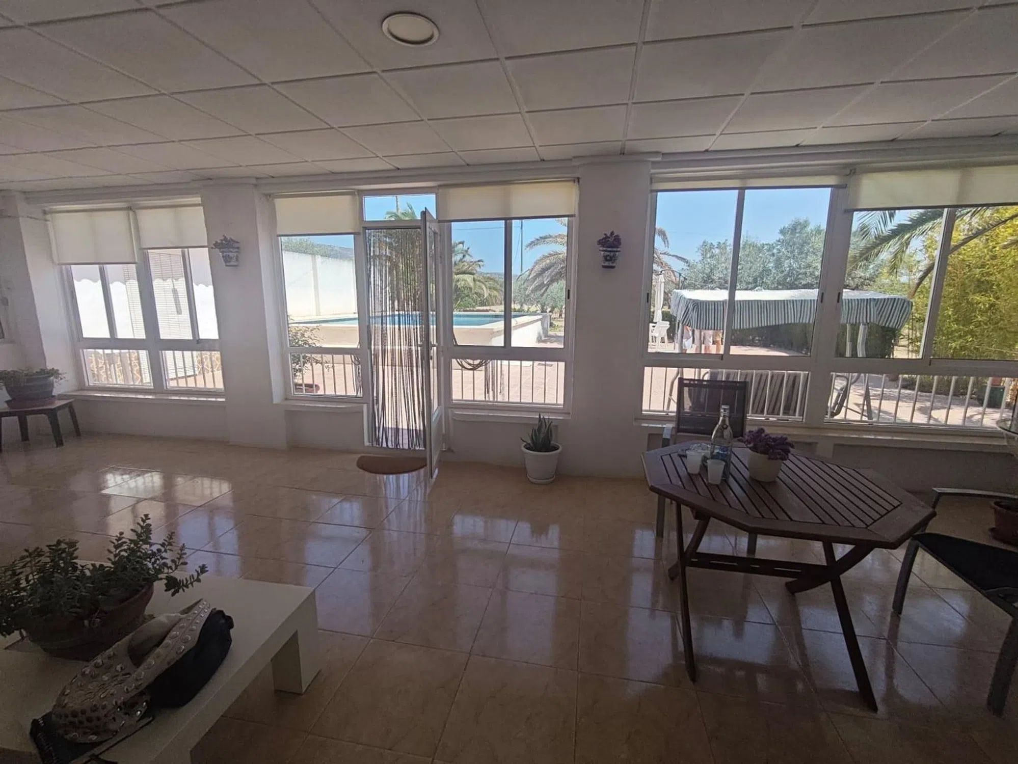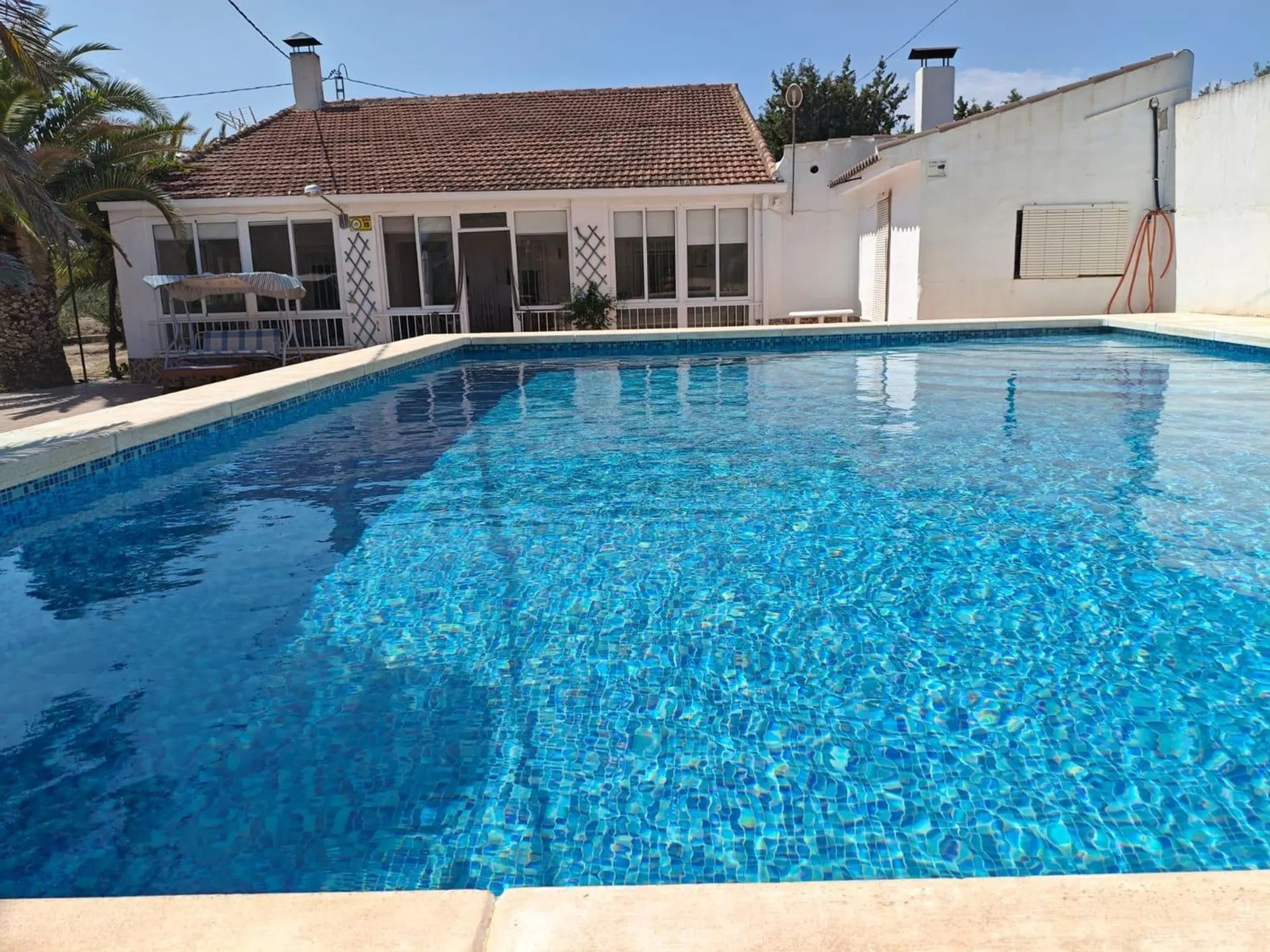 Descubre este encantador chalet ubicado en el término municipal de Sax, ideal para disfrutar del campo y la tranquilidad. Con una superficie construida de 134 m² sobre un terreno vallado de aproximadamente 8.000 m² �, esta propiedad cuenta con tres cómodas habitaciones dobles �️ y dos baños completos � (uno exterior destinado al servicio de la piscina). La cocina está completamente equipada �️ y se complementa con un acogedor comedor donde podrás relajarte junto a la estufa de leña � o disfrutar del aire fresco bajo el ventilador en techo �. Dispone de Despensa y Lavanderia. La marquesina acristalada ofrece unas vistas espectaculares hacia la piscina privada �♂️ y jardín, creando un ambiente perfecto para compartir momentos inolvidables �. Además, encontrarás una casita destinada a herramientas � que facilita el cuidado del extenso arbolado compuesto por olivos, palmeras e higueras ��. Este es sin duda un lugar excepcional donde combinar confort moderno con belleza natural; ¡no pierdas esta oportunidad única! ✨.