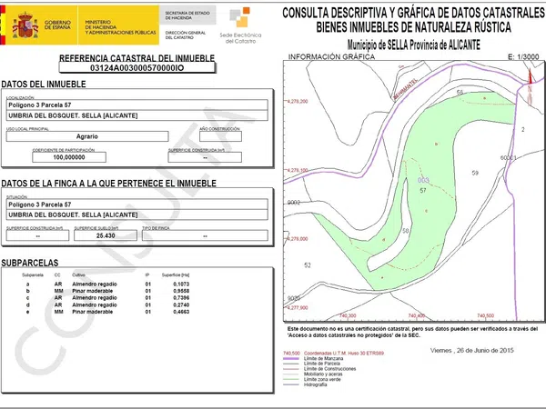 Terreno de 25430 metros cuadrados con acceso de vehículos hasta la parcela. Cerca de zona de escalada y a 5 minutos de en coche de Sella.